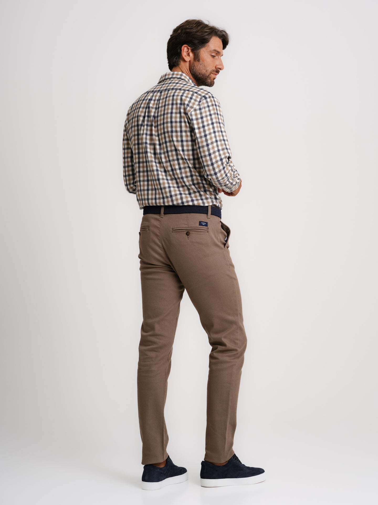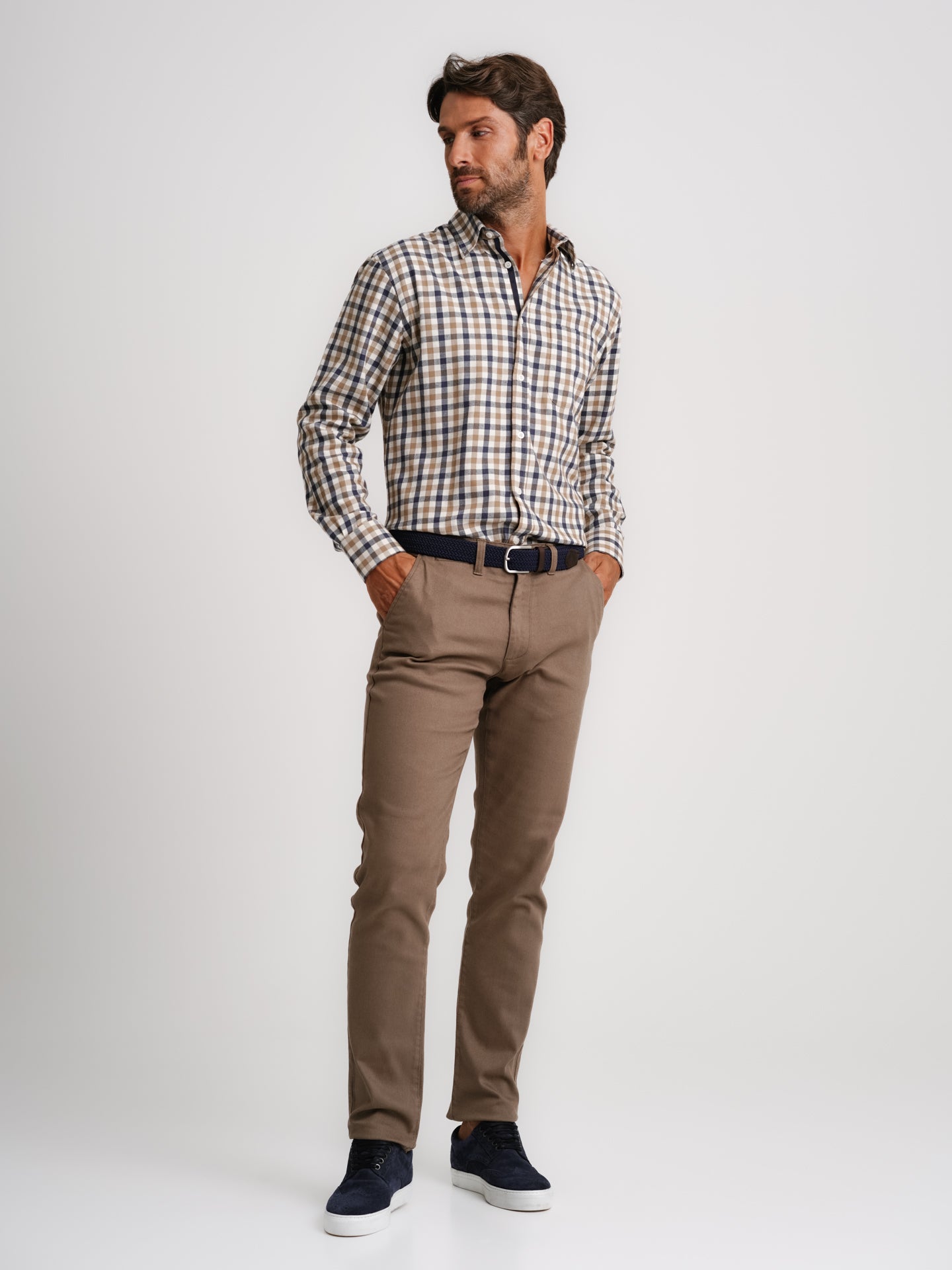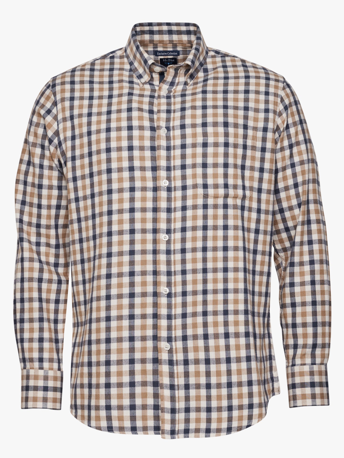 Camisa Regular Fit Flanela Bege Algodão Quadrados