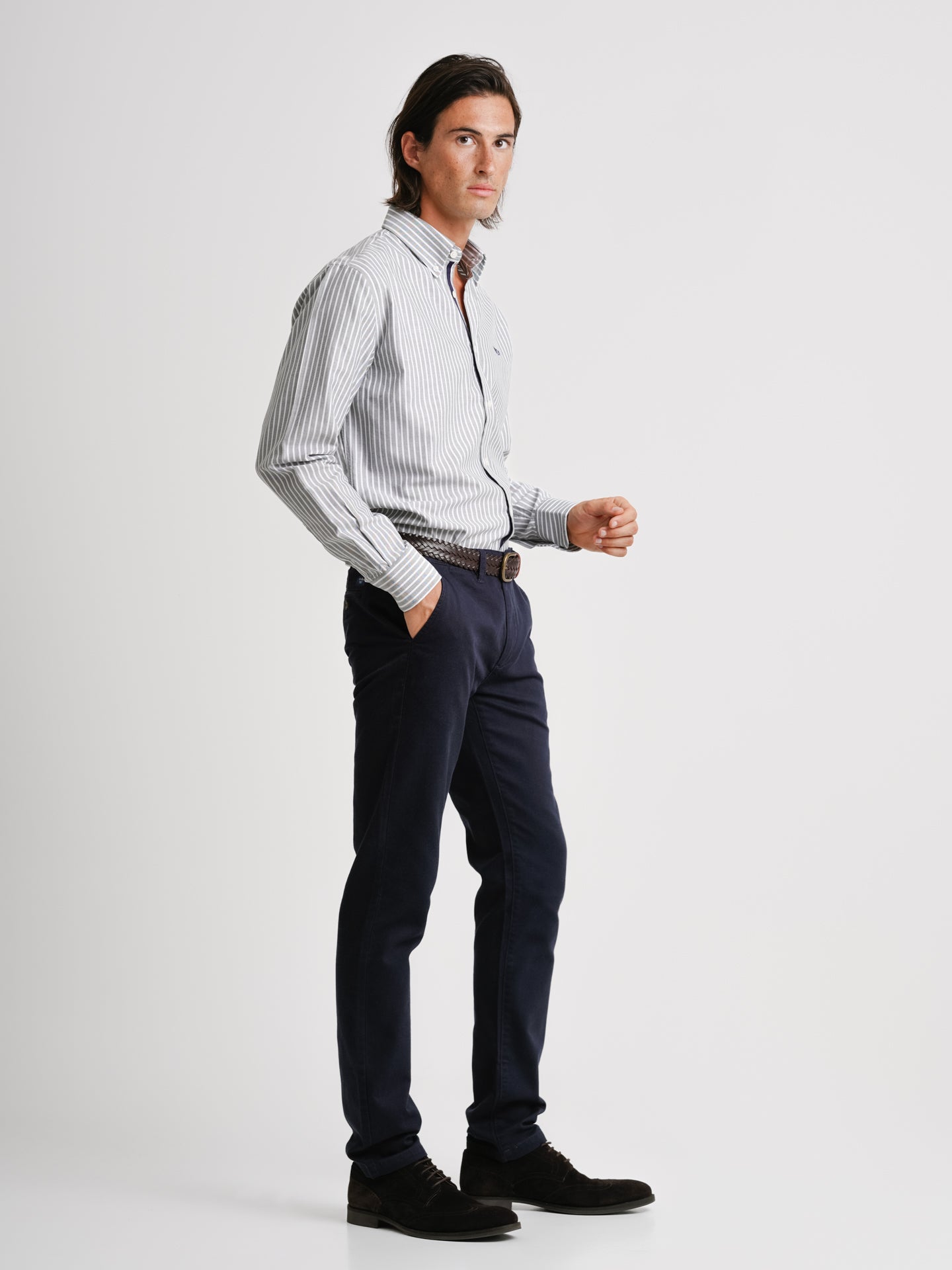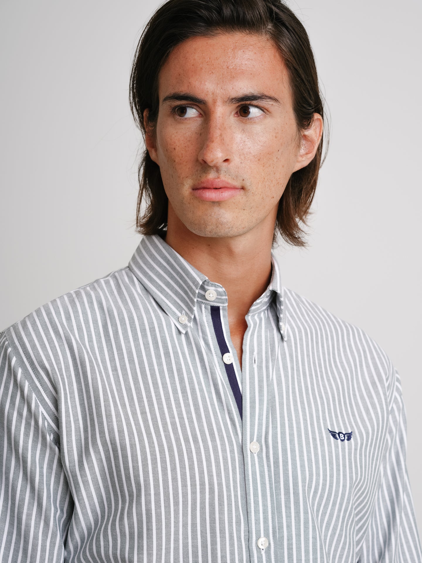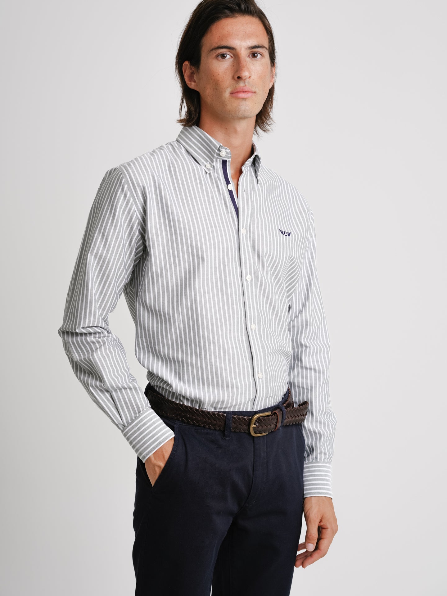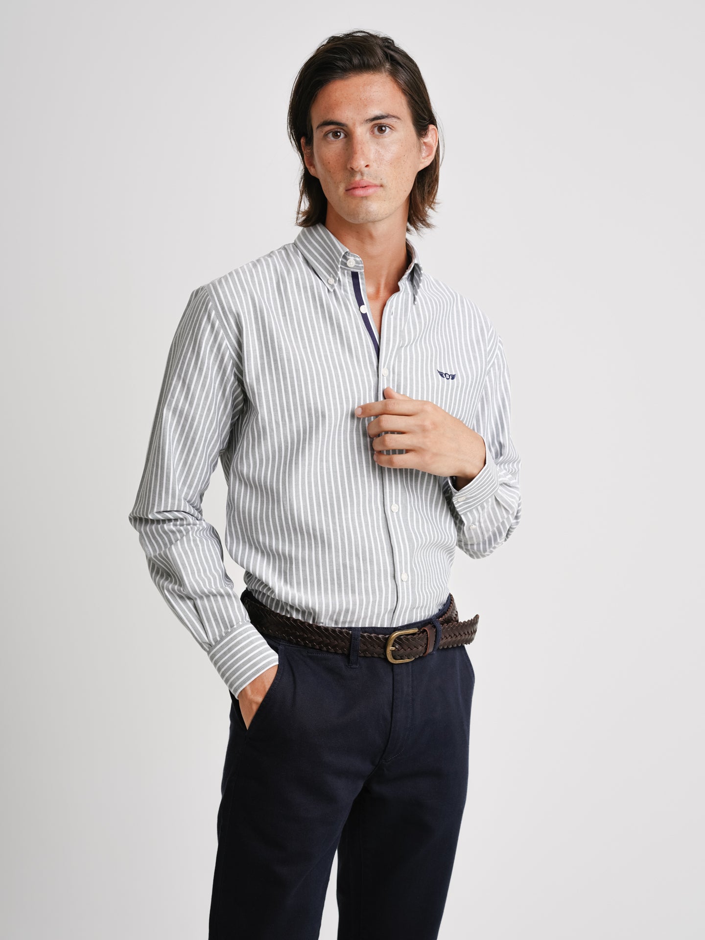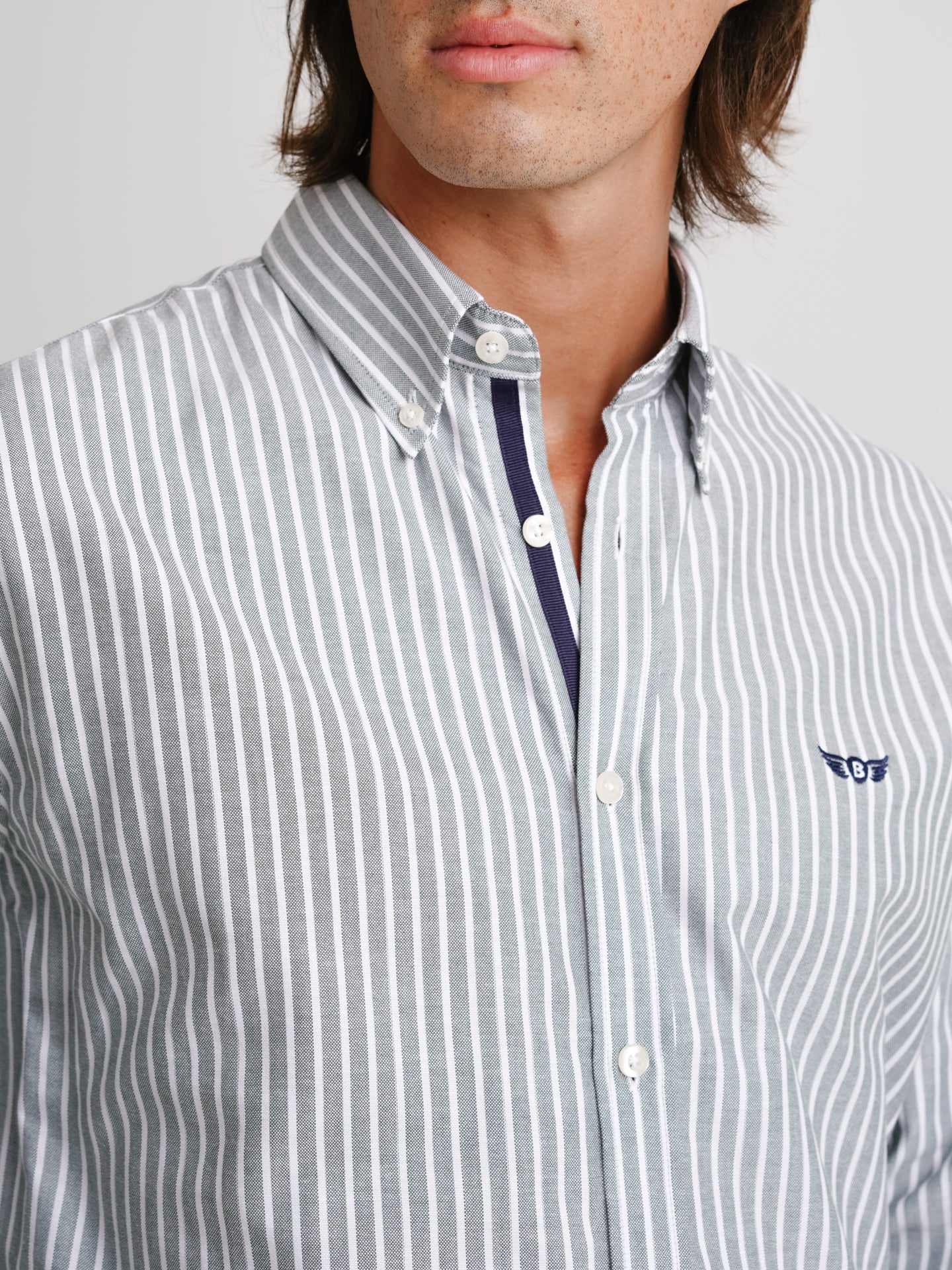 Camisa Regular Fit Oxford Verde Algodão Riscas Com logo