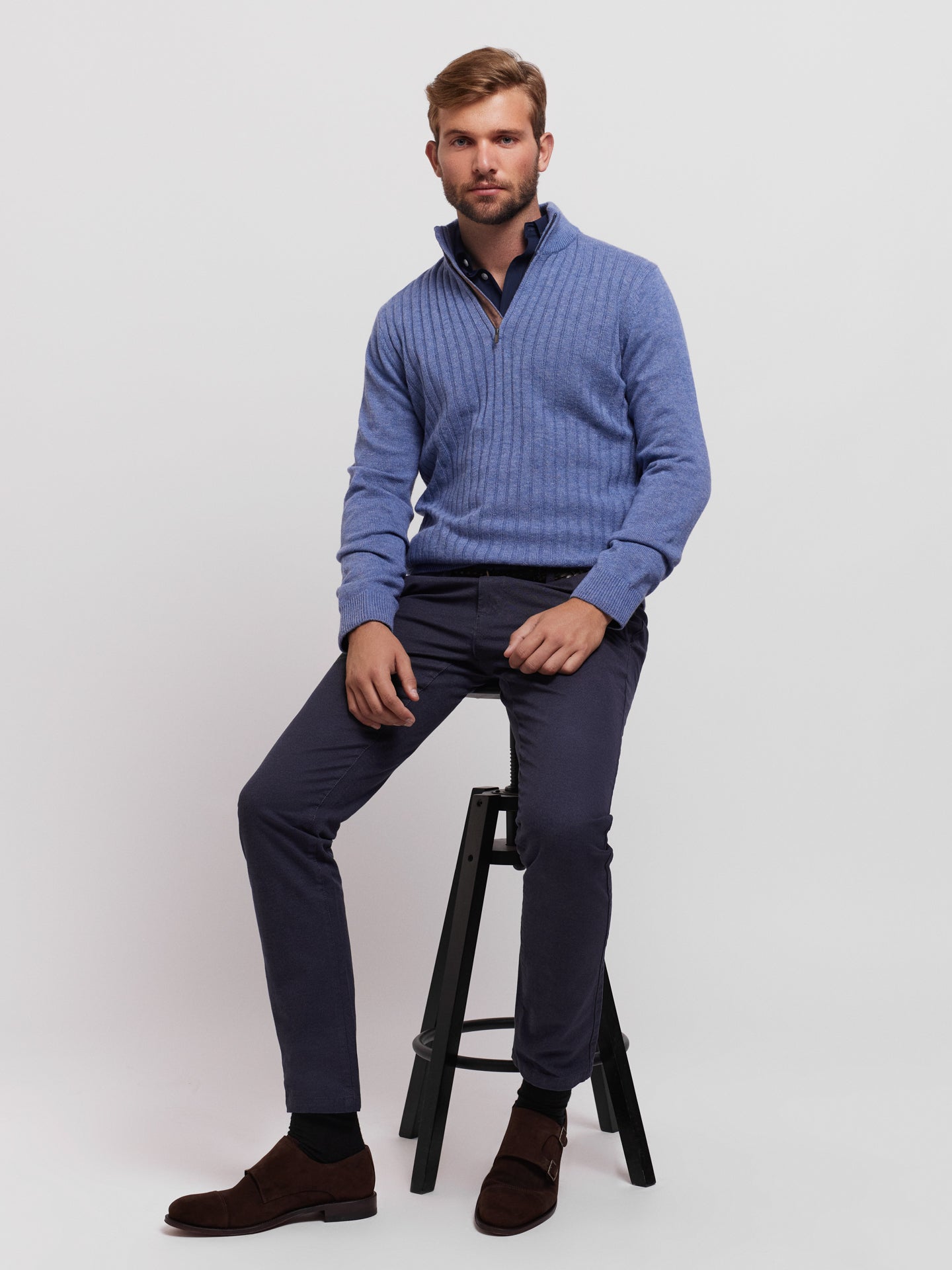 Pullover Regular Fit Azul Manga CompridaManga Comprida Liso