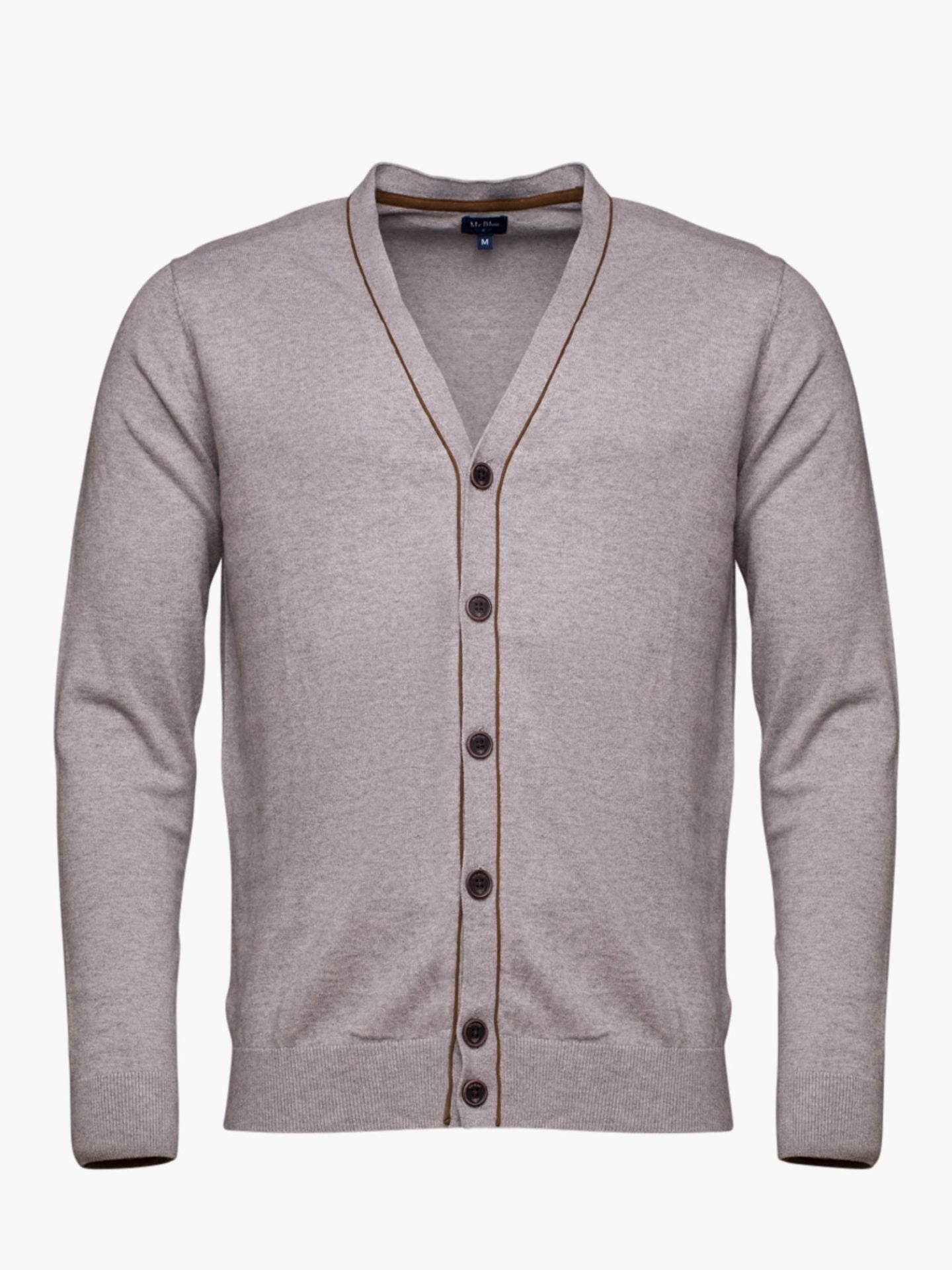 Cardigan liso algodão e caxemira com botões e detalhes colarinho e carcela. Corte direito, manga comprida e acabamentos acanelados. Muito confortável e um "must have" no seu guarda roupa. Ideal para um dia mais fresco como alternativa a um pullover.