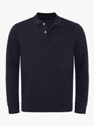 Polo Regular Fit Piquet Azul De Algodão Manga Comprida Liso e Com Logo