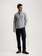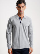 Polo Regular Fit Piquet Cinzento De Algodão Manga Comprida Liso e Com Logo