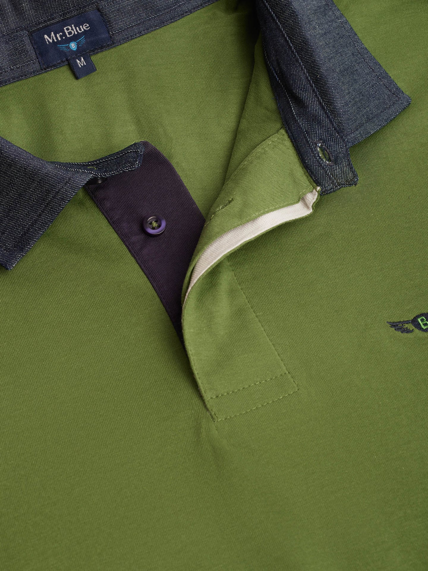 Pólo Rugby manga curta verde liso com detalhe colarinho100% algodão