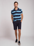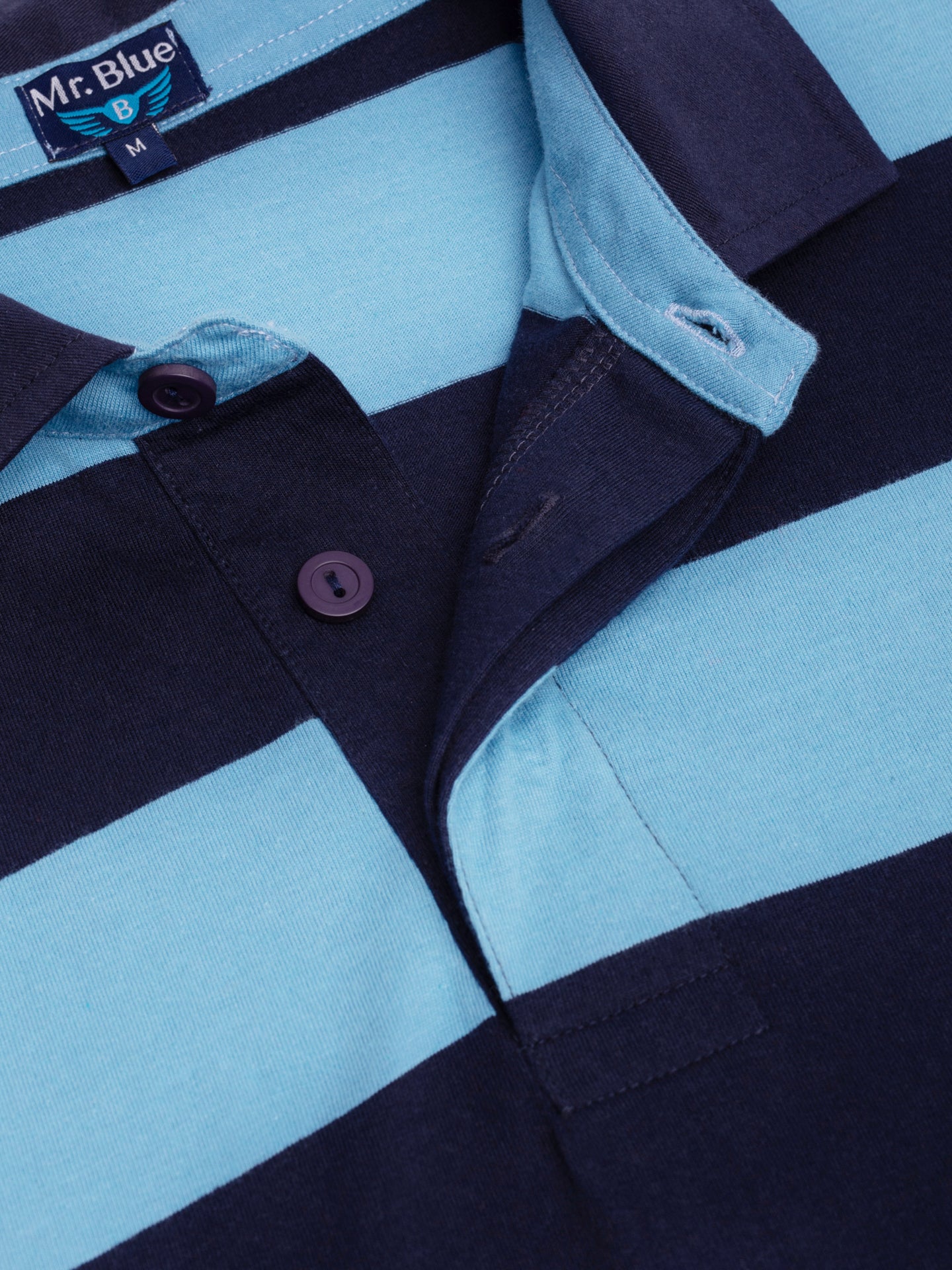 Pólo rugby 100% algodão riscas grossas tons de azul