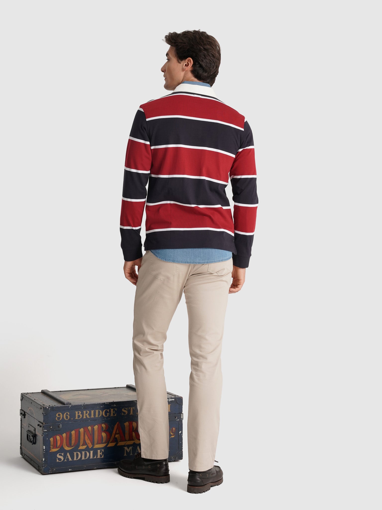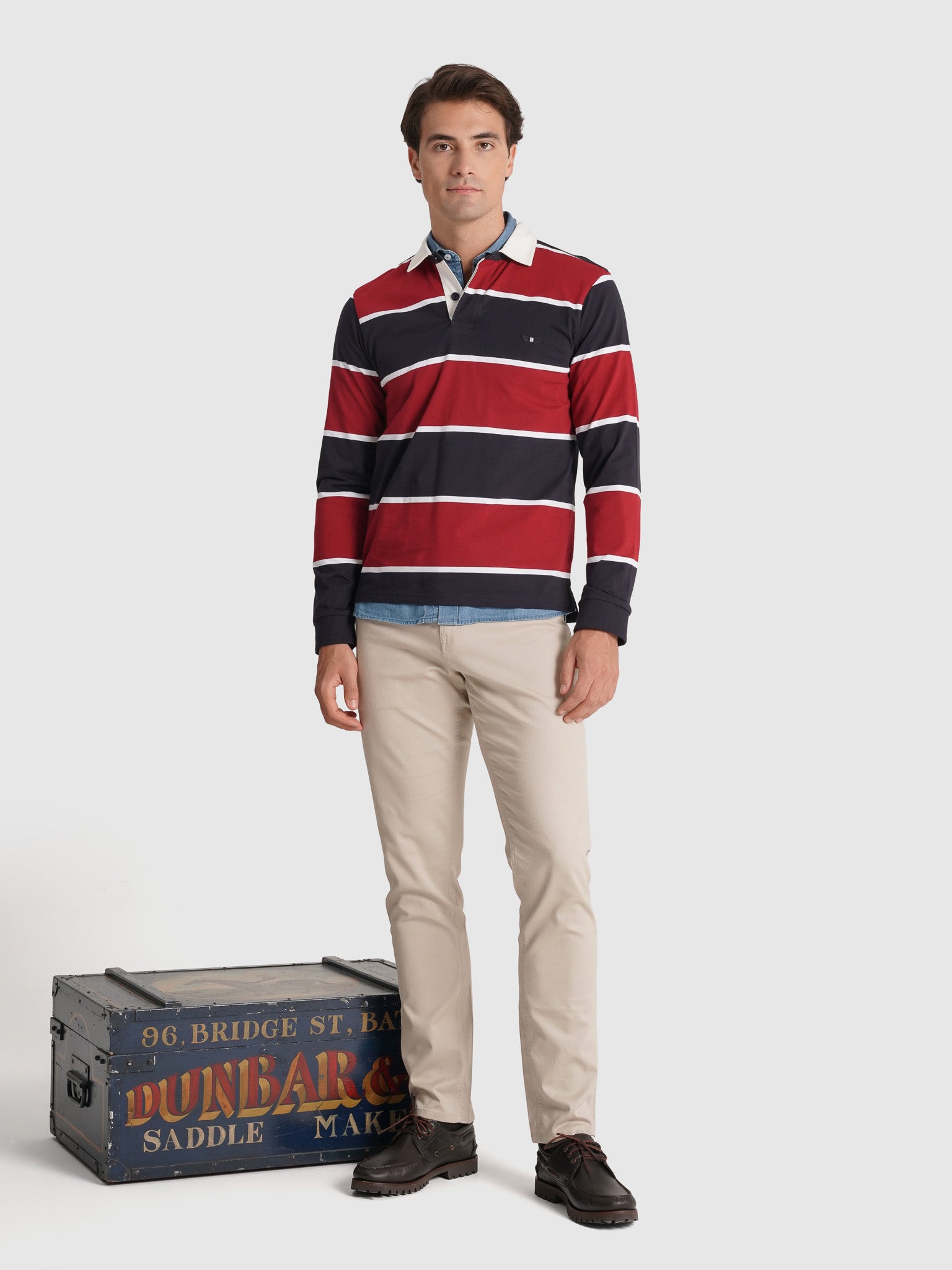 Rugbie Algodão Algodão Azul Manga Comprida Regular Fit Com Logo Riscas