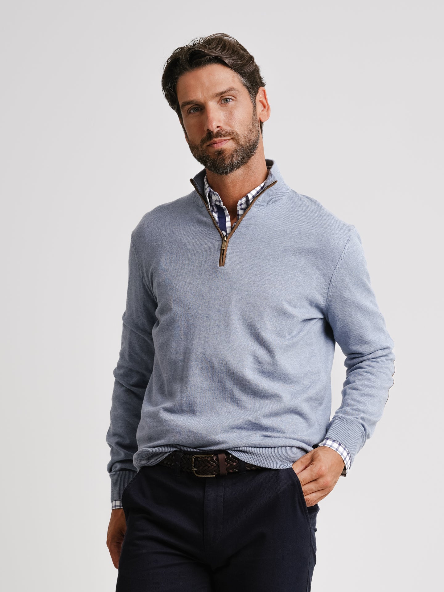 Camisola de Algodão e Caxemira Azul