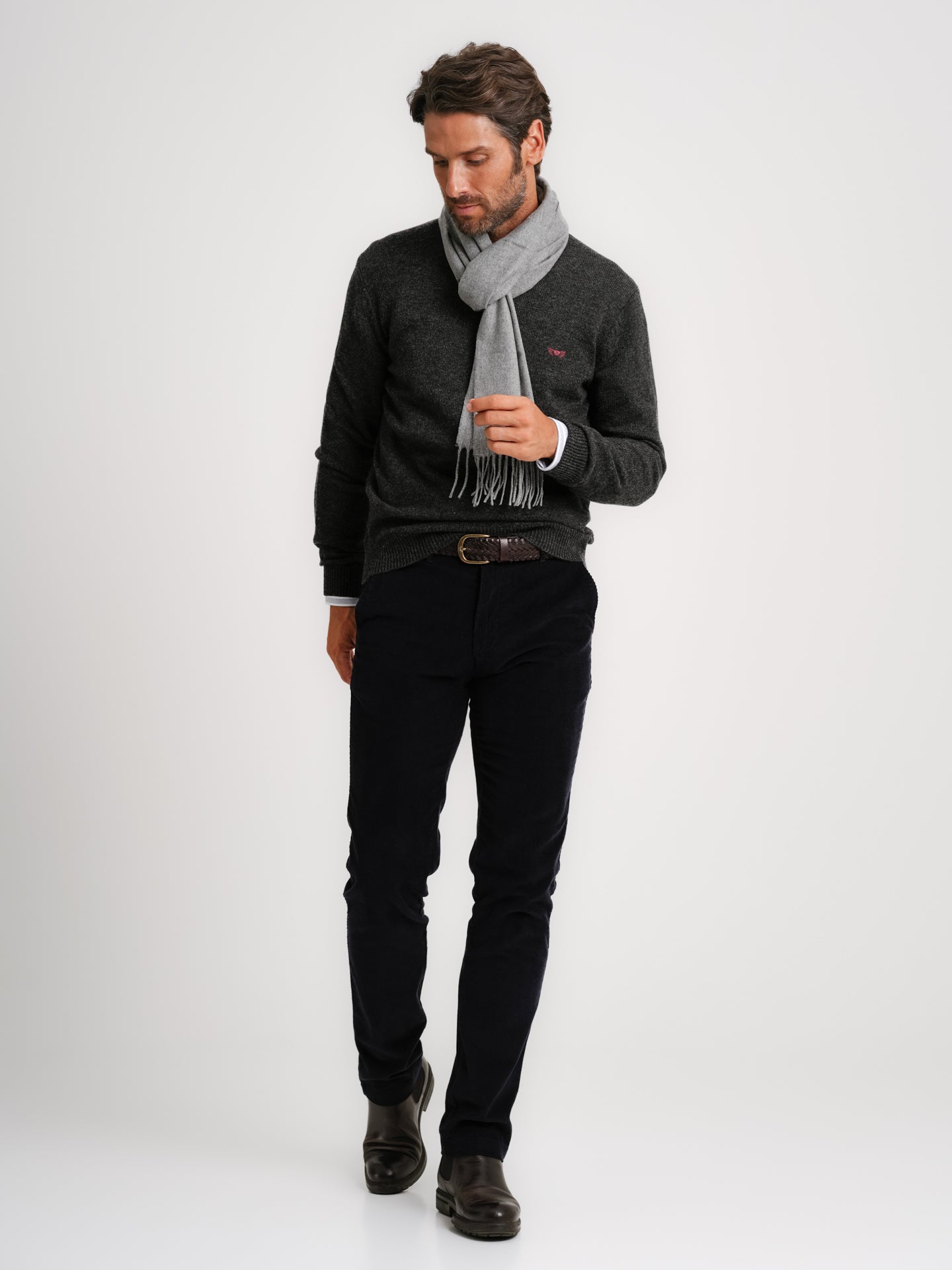 Pullover Caxemira Fino Cinzento