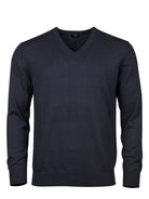 Pullover Homem algodão e caxemira decote em V azul escuro com detalhe colarinho. Peça indespensável no seu guarda roupa. Ideal para um fim de semana ou um dia de trabalho descontraído. Ideal para usar com uma Camisa Homem.
