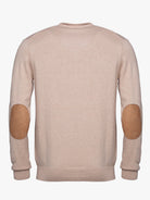 Cardigan homem em algodão e caxemira beige com fecho de correr e cotoveleiras. Peça Indispensável no seu guarda roupa. Ideal para um fim de semana ou um dia de trabalho descontraído. Ideal para usar com uma camisa.