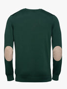 Camisola homem 100% algodão verde escuro com decote em V e cotoveleiras. Peça Indispensável no seu guarda roupa. Ideal para um fim de semana ou um dia de trabalho descontraído. Ideal para usar com uma camisa.