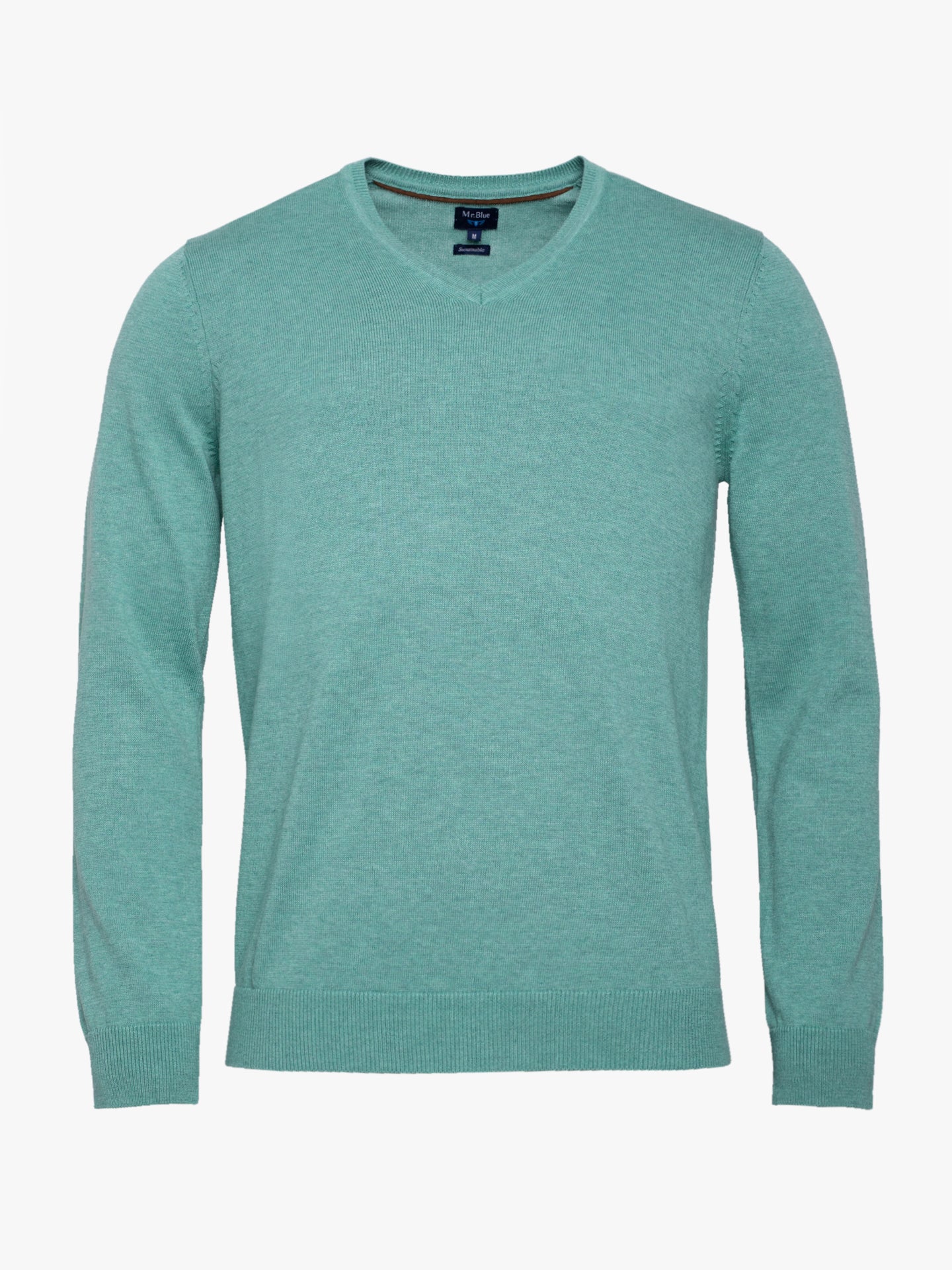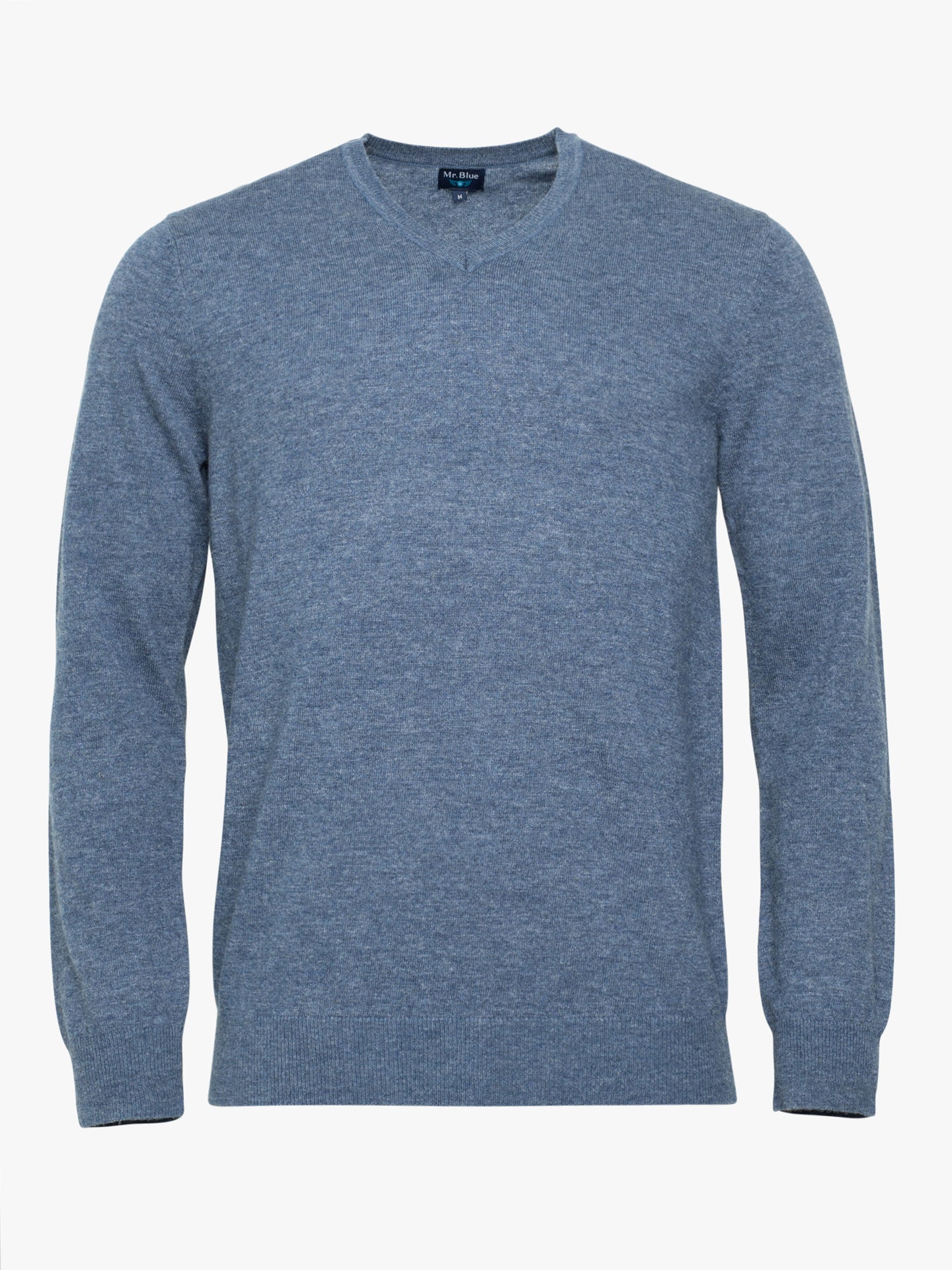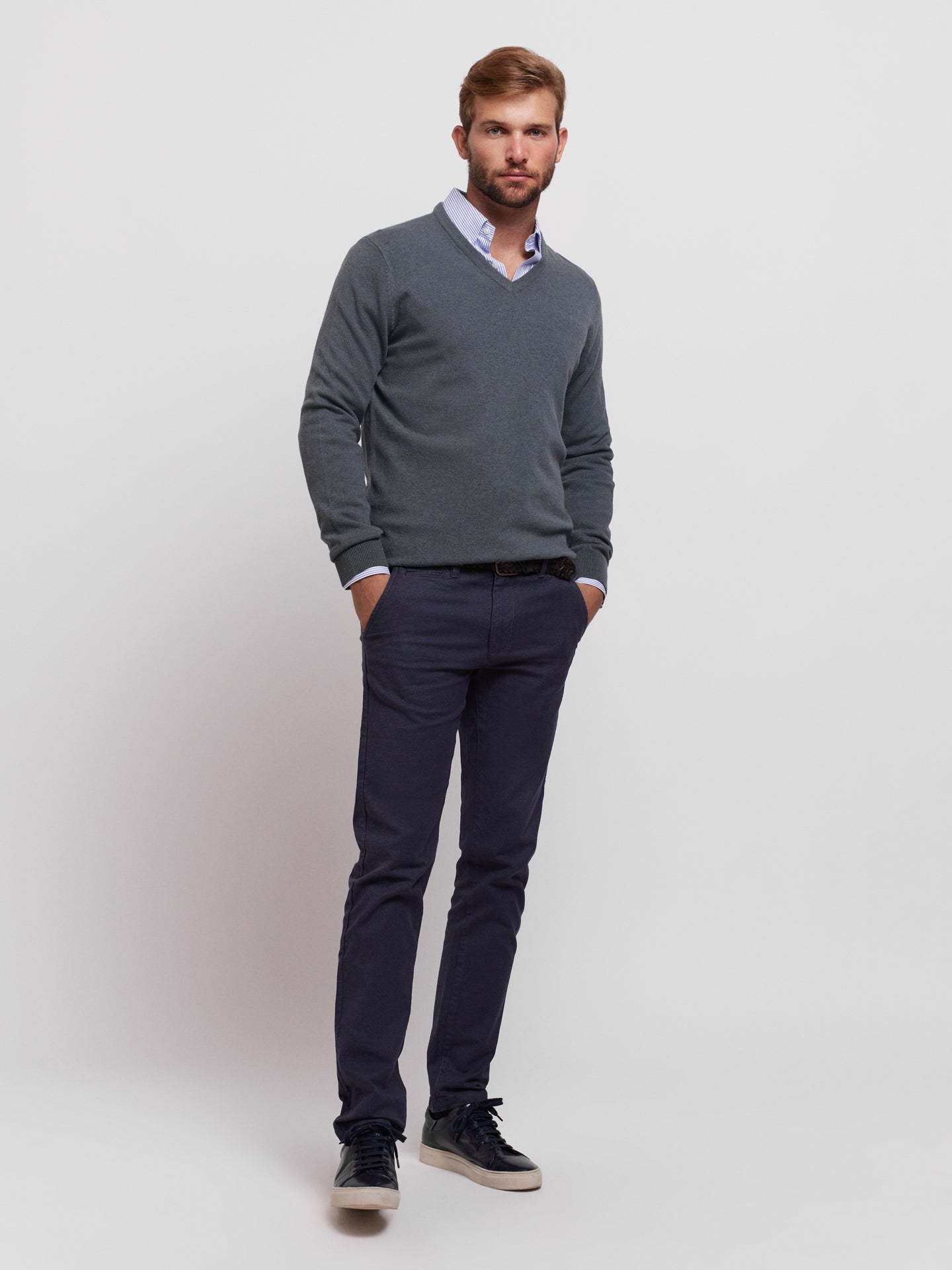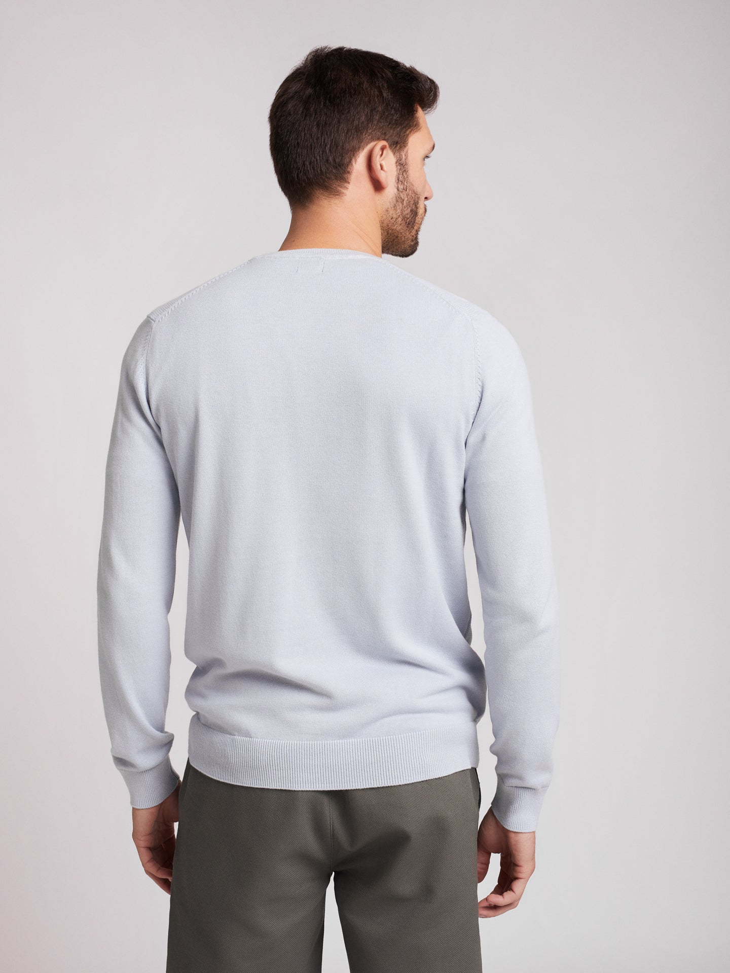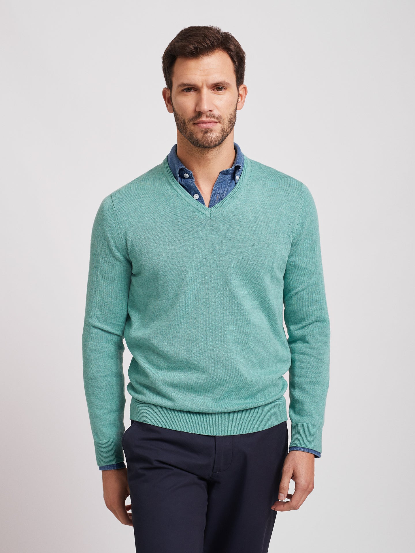 Pullover algodão e caxemira decote em V com detalhe colarinho