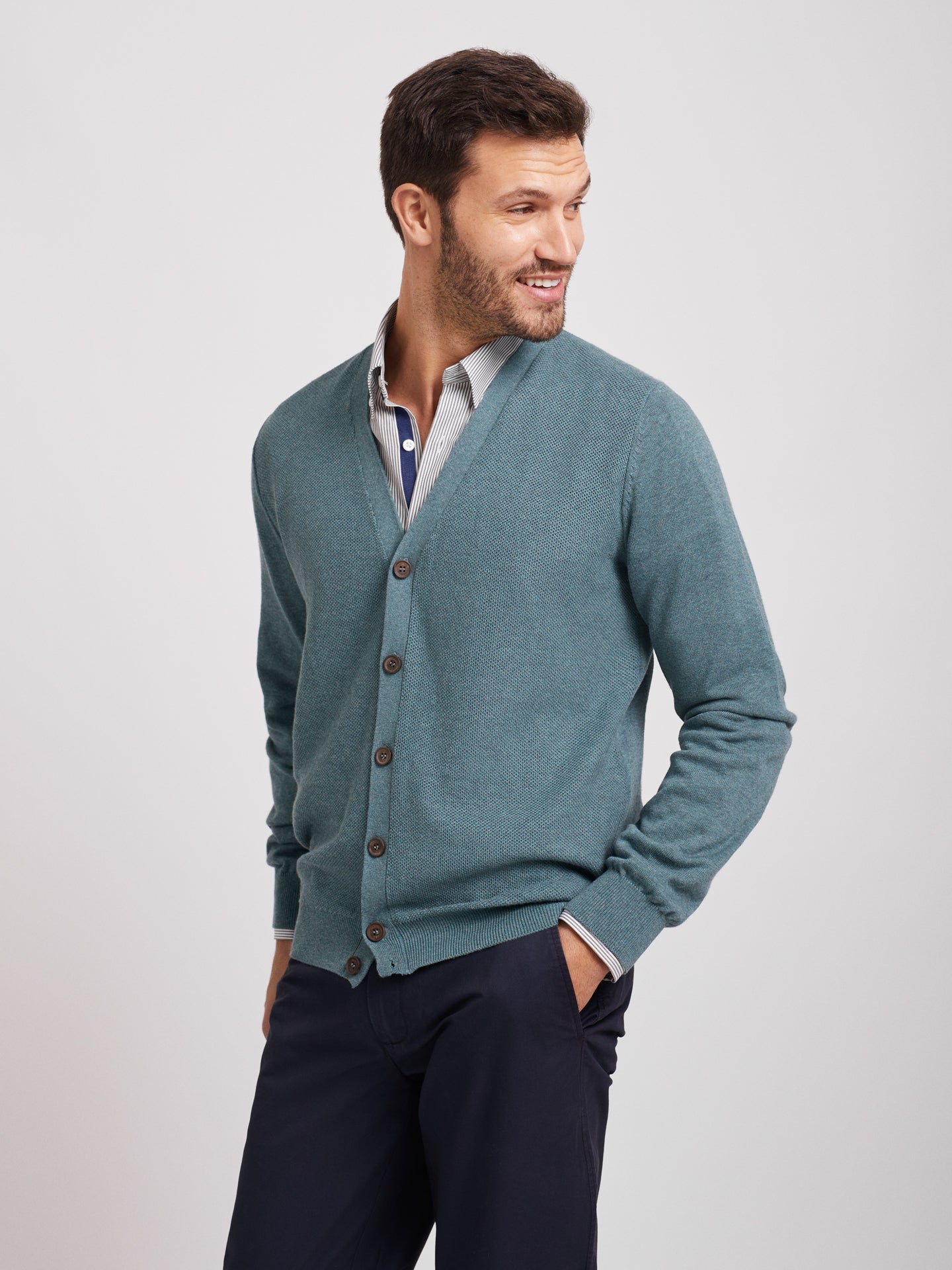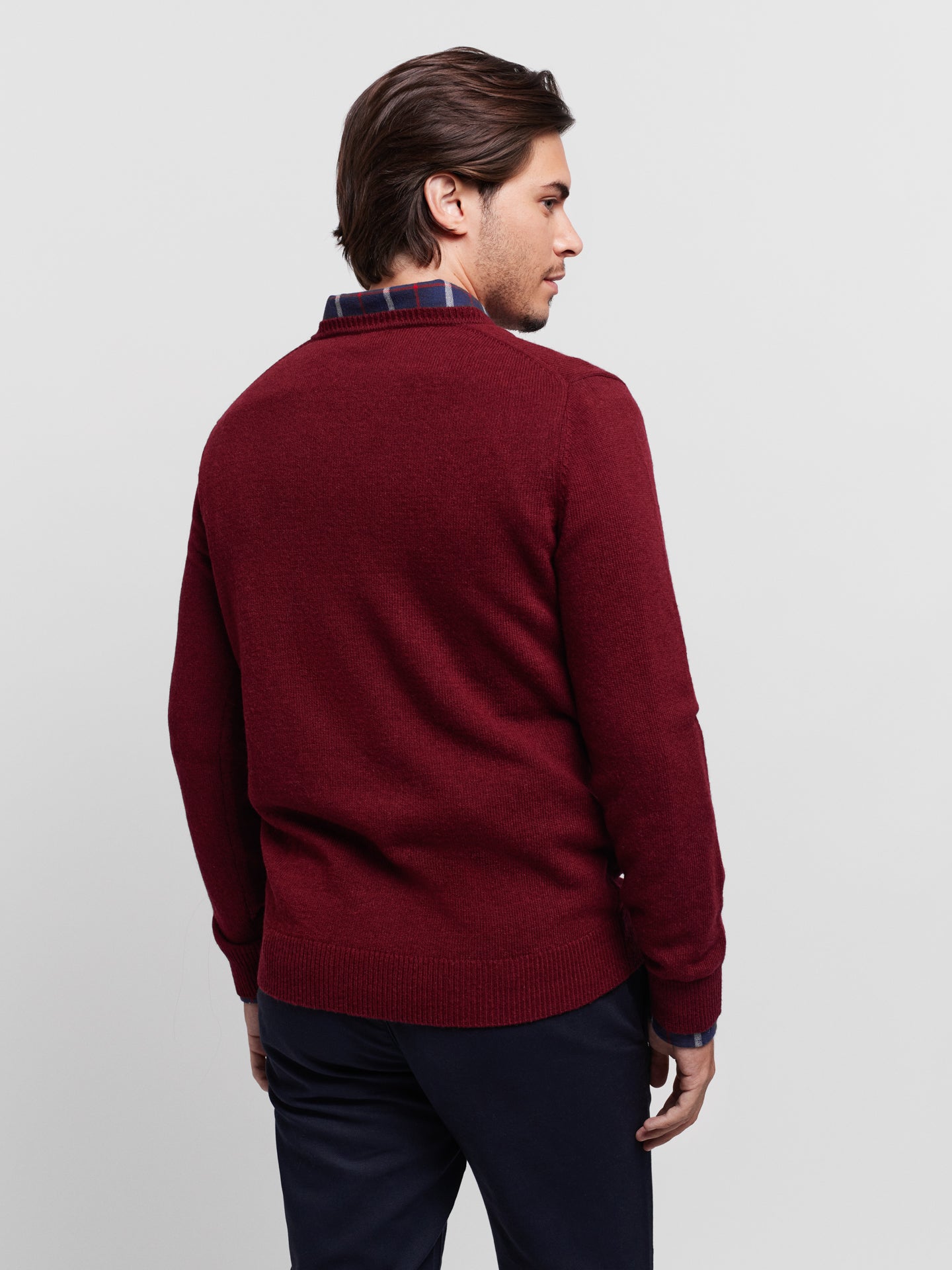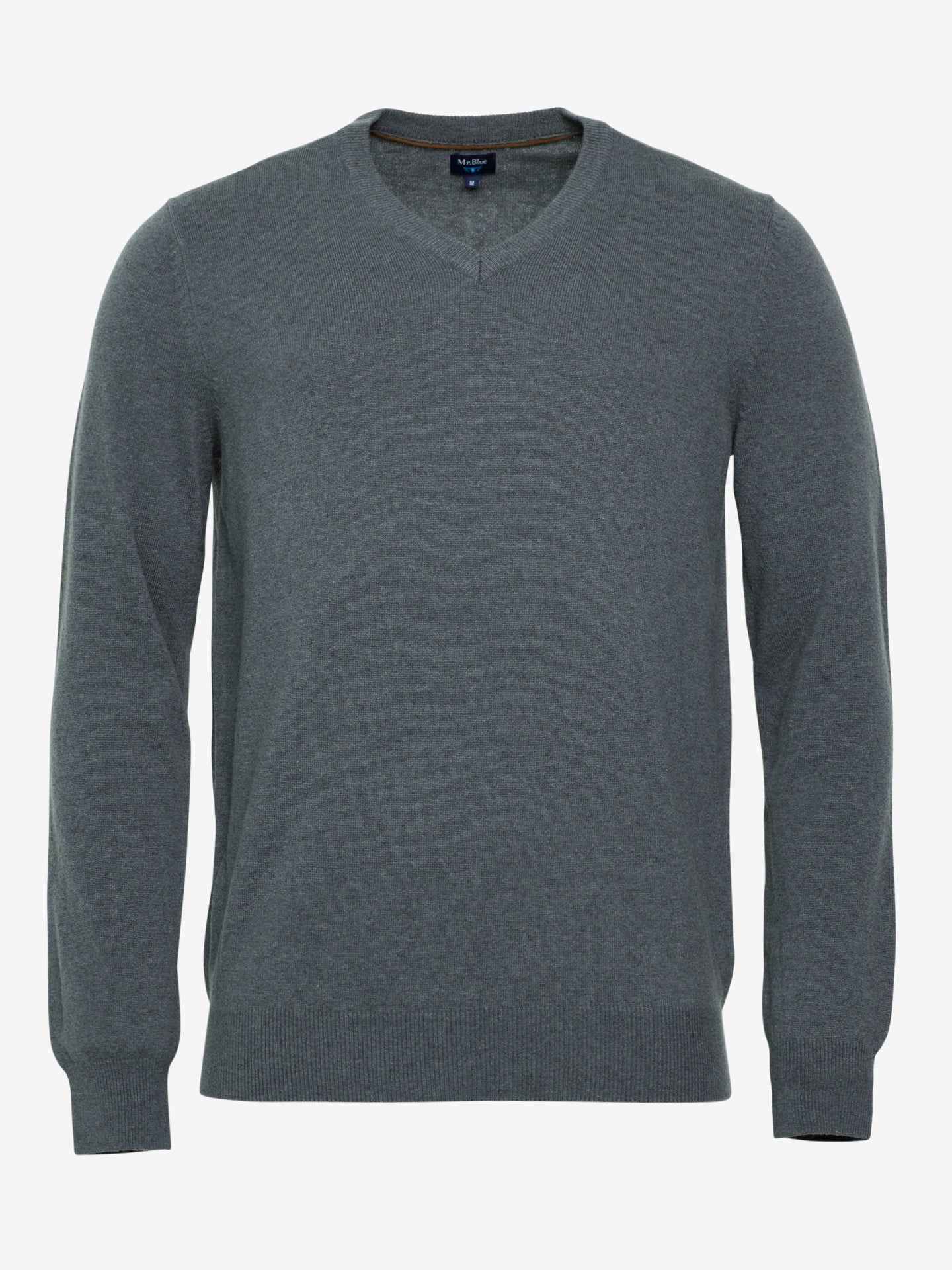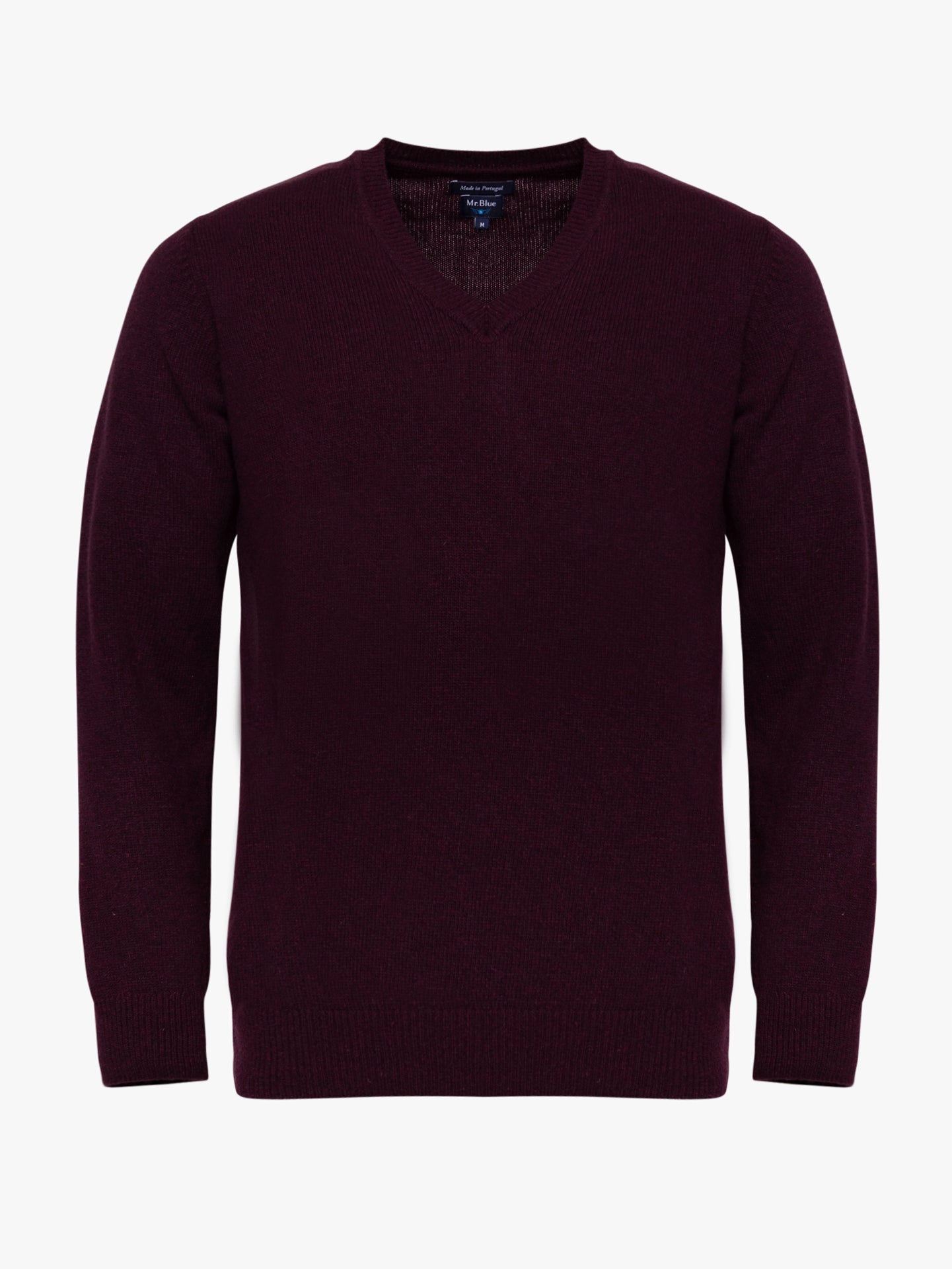 Pullover algodão e caxemira decote em V com detalhe colarinho