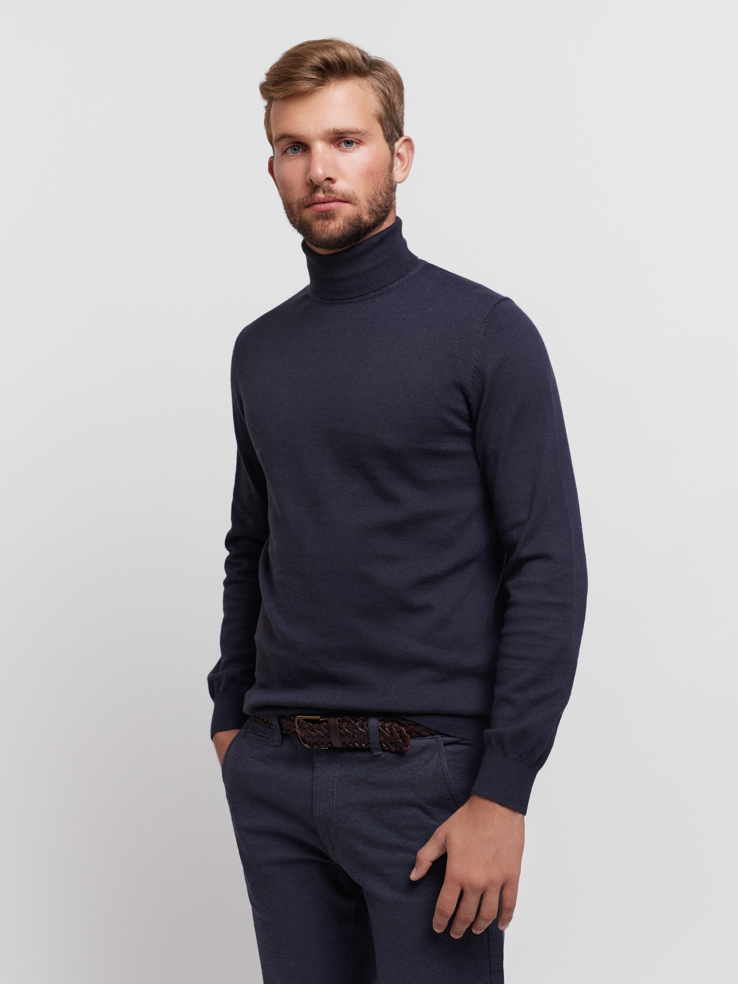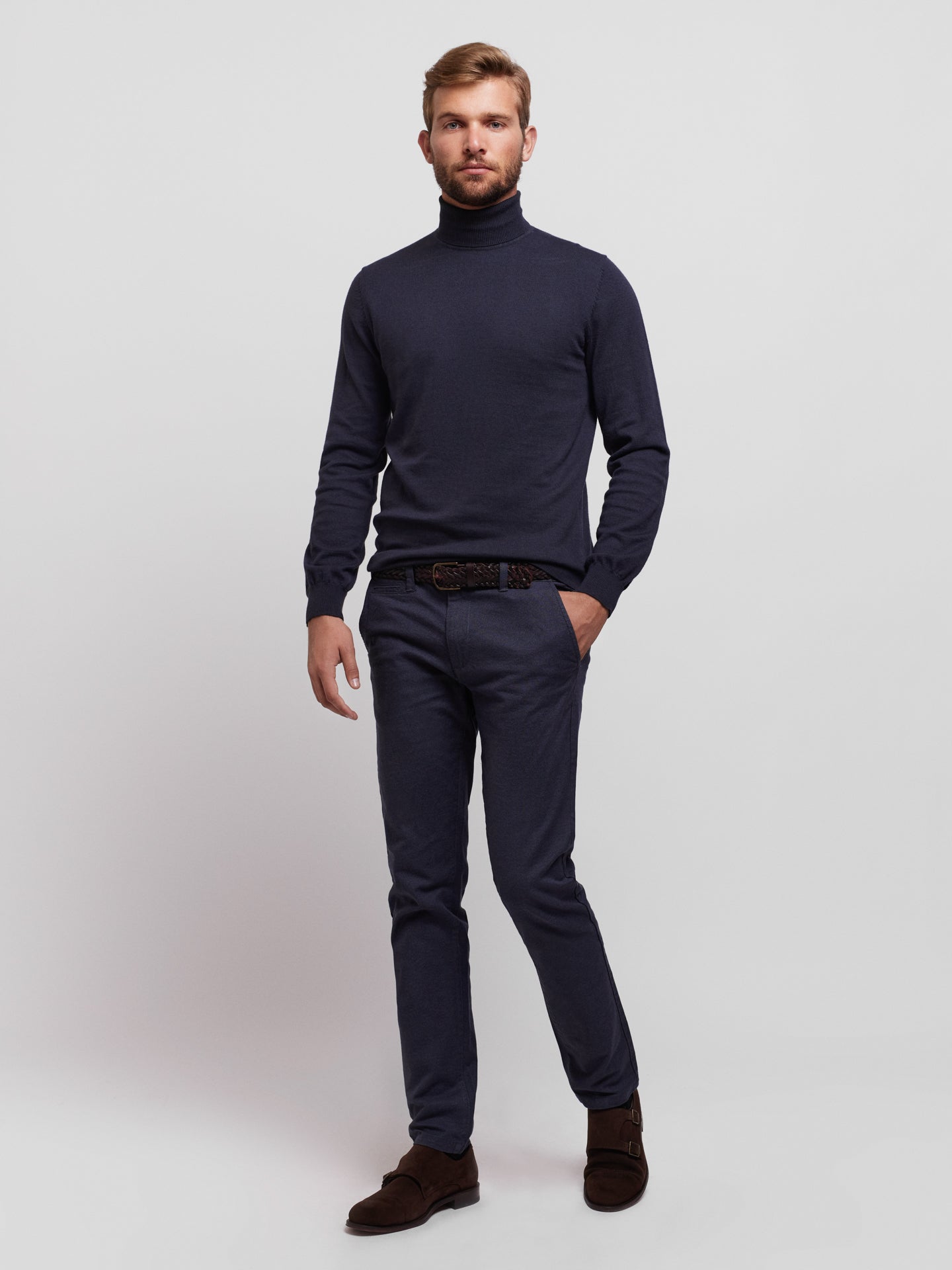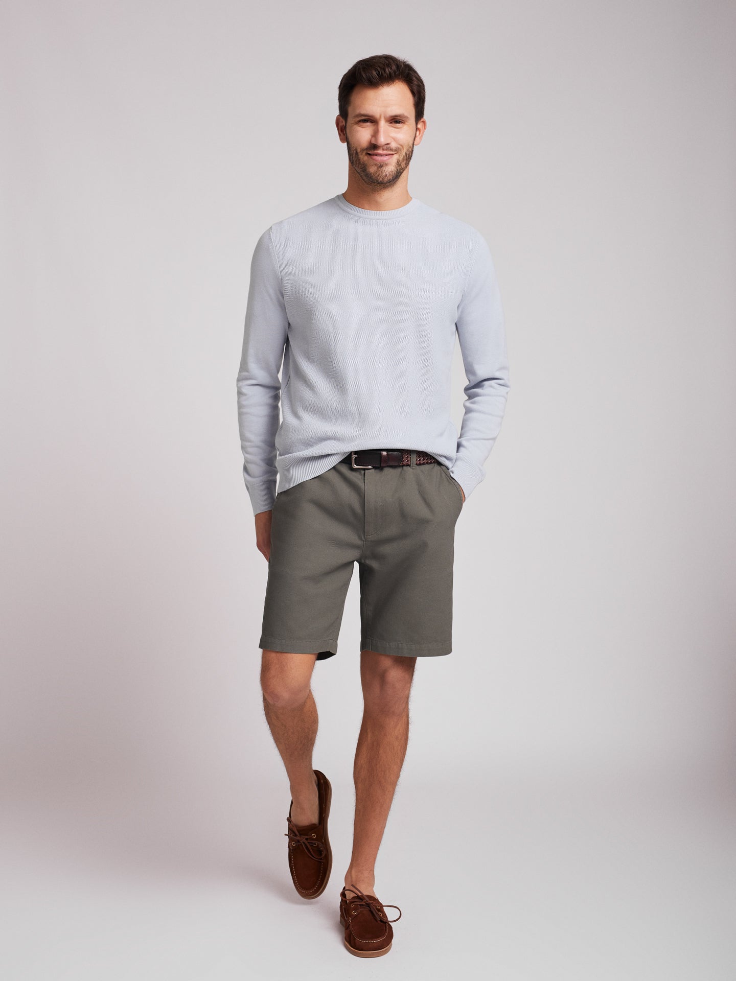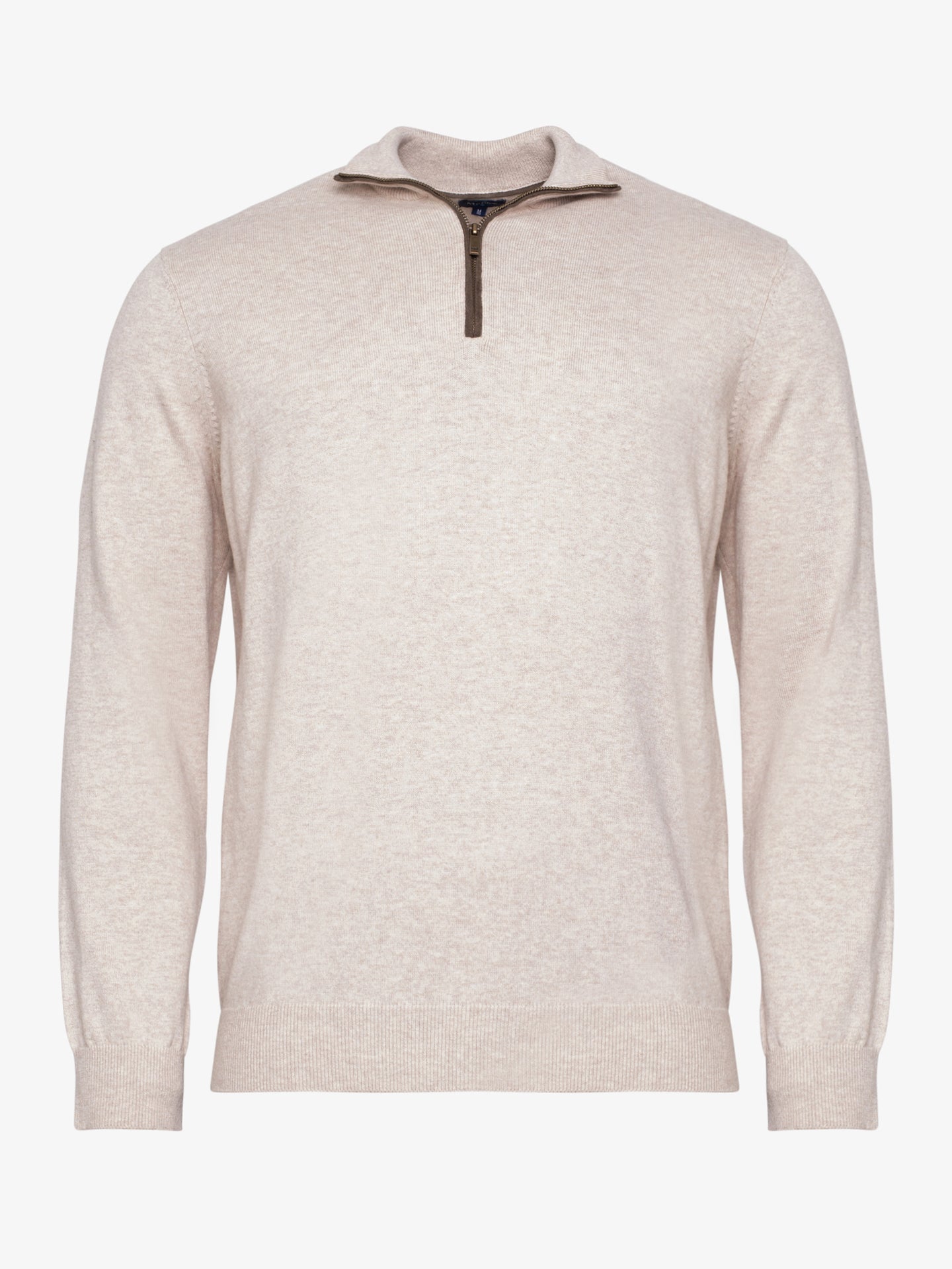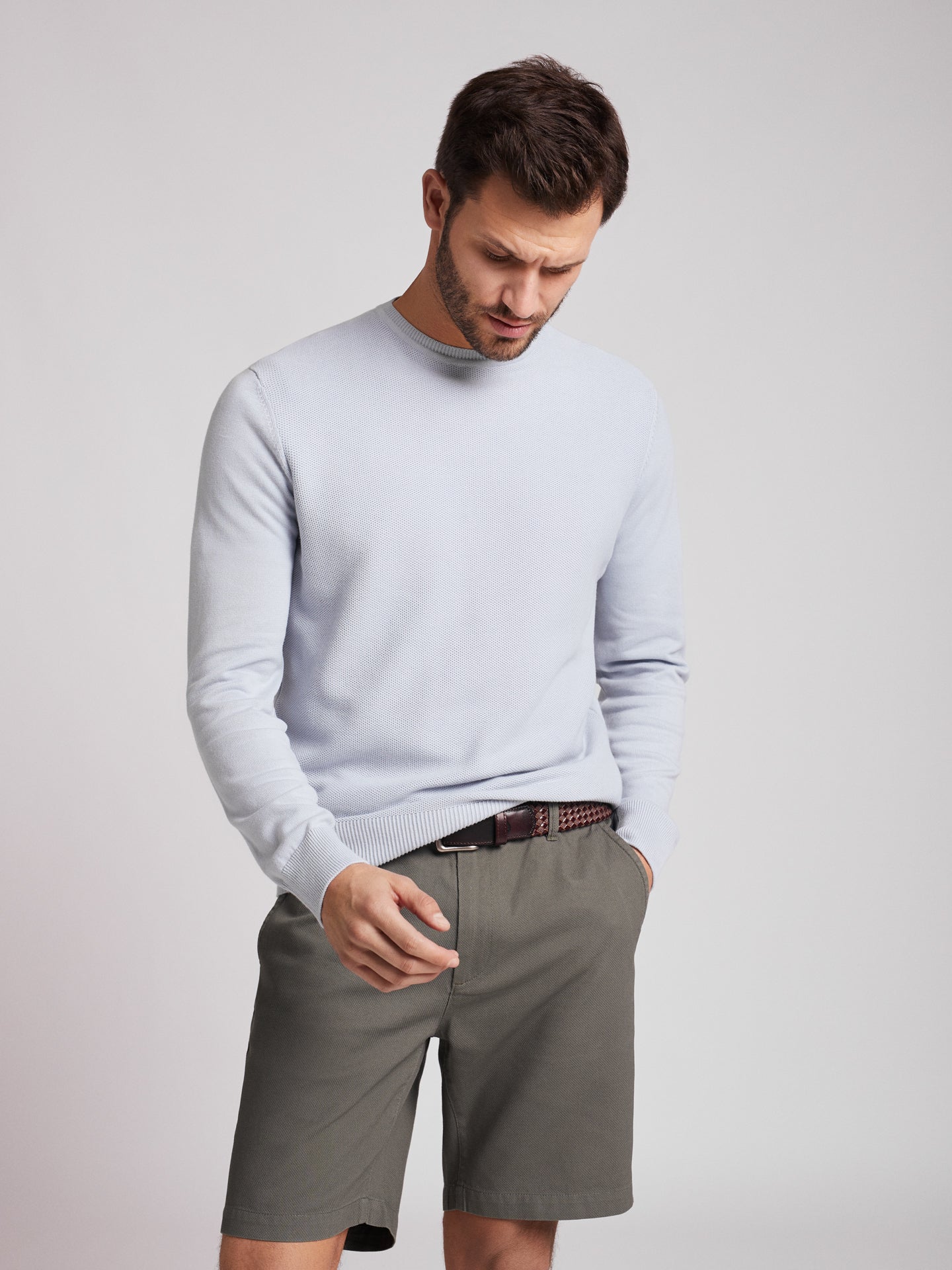 Pullover algodão e caxemira decote em V com detalhe colarinho