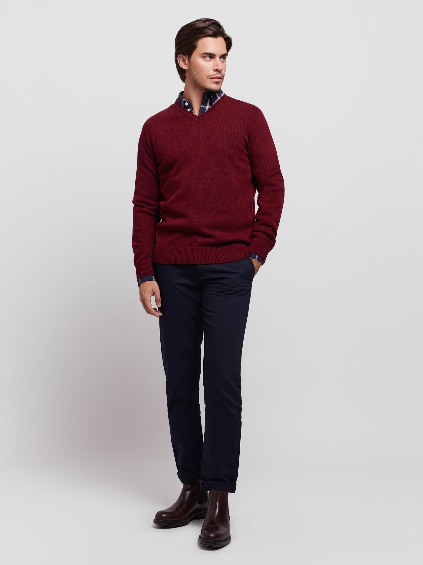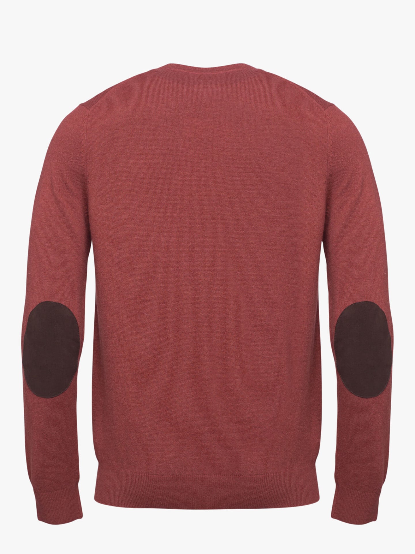 Camisola lã laranja tijolo decote em bico com cotoveleiras