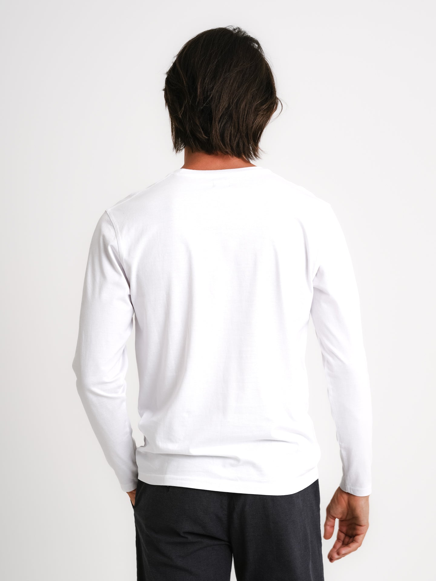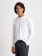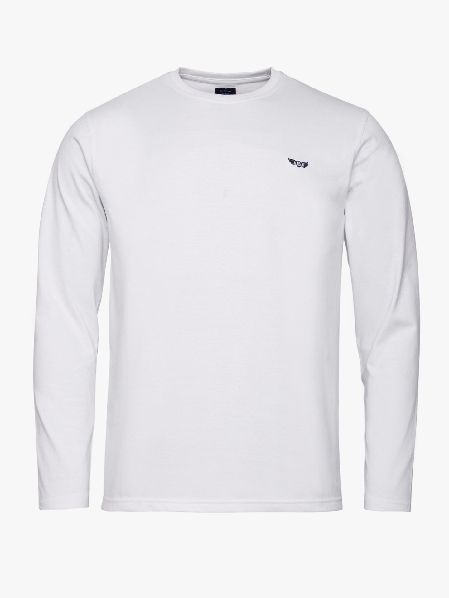 T-Shirt 100% Algodão Branca Manga Comprida Com Logo