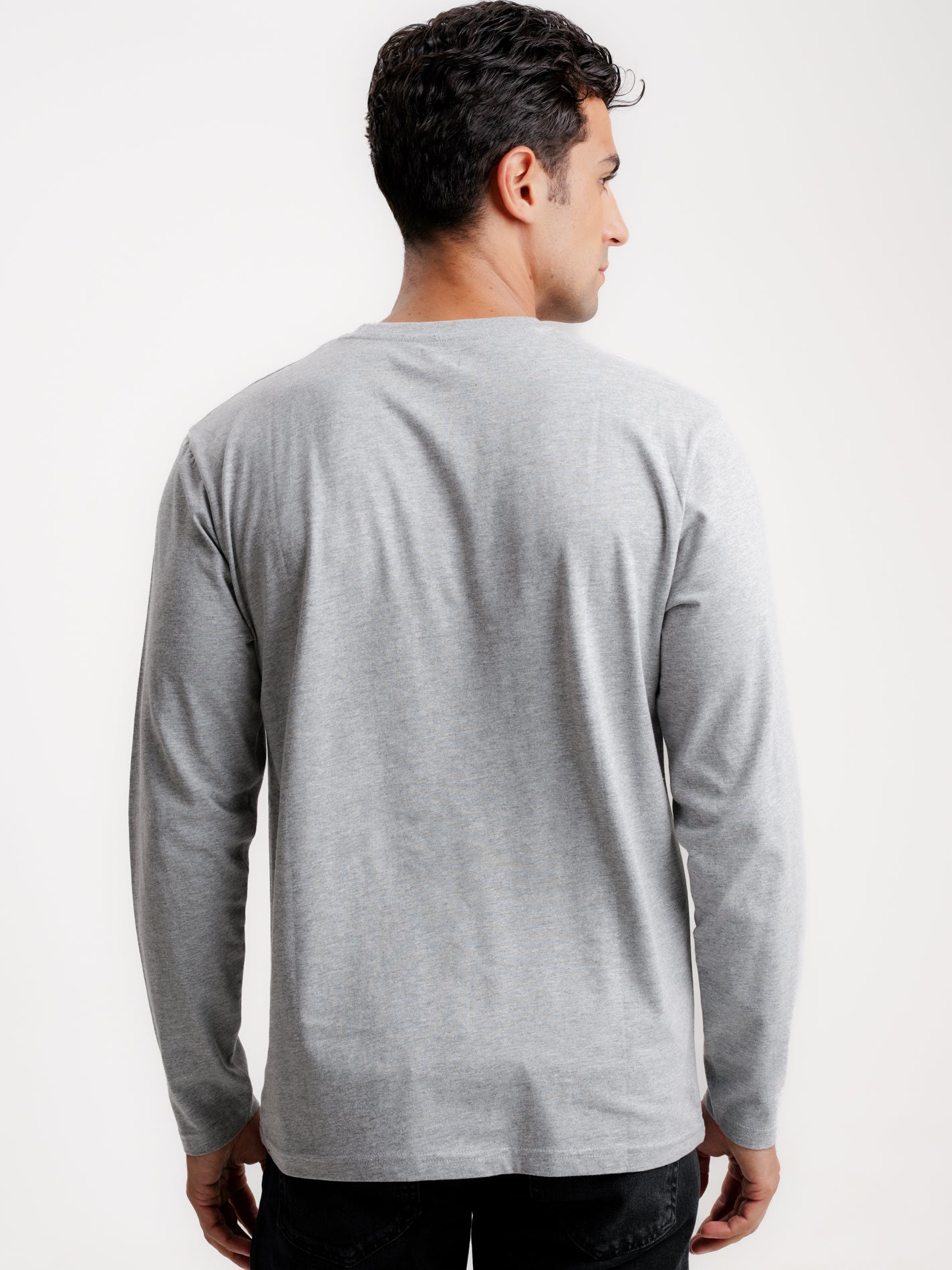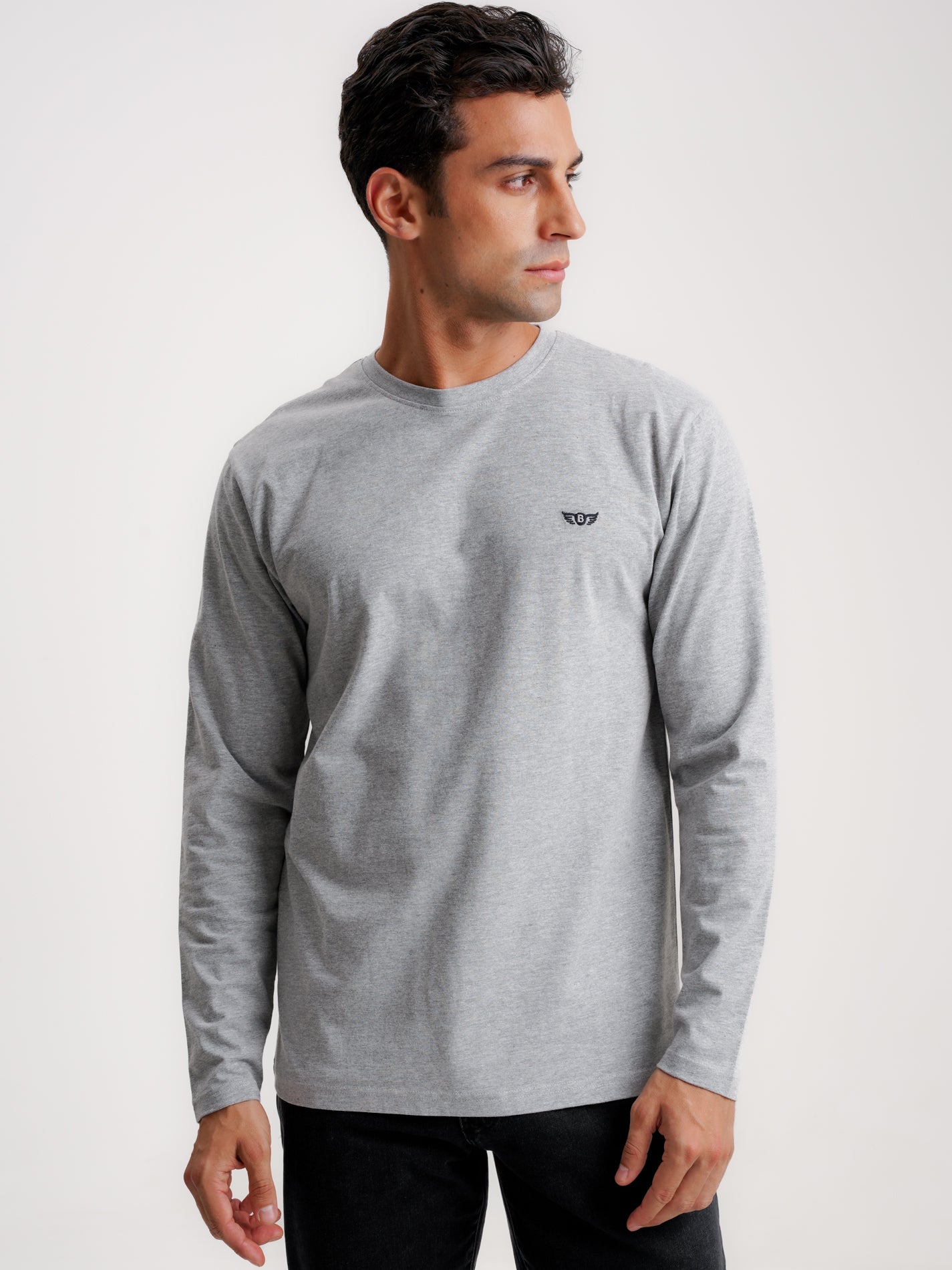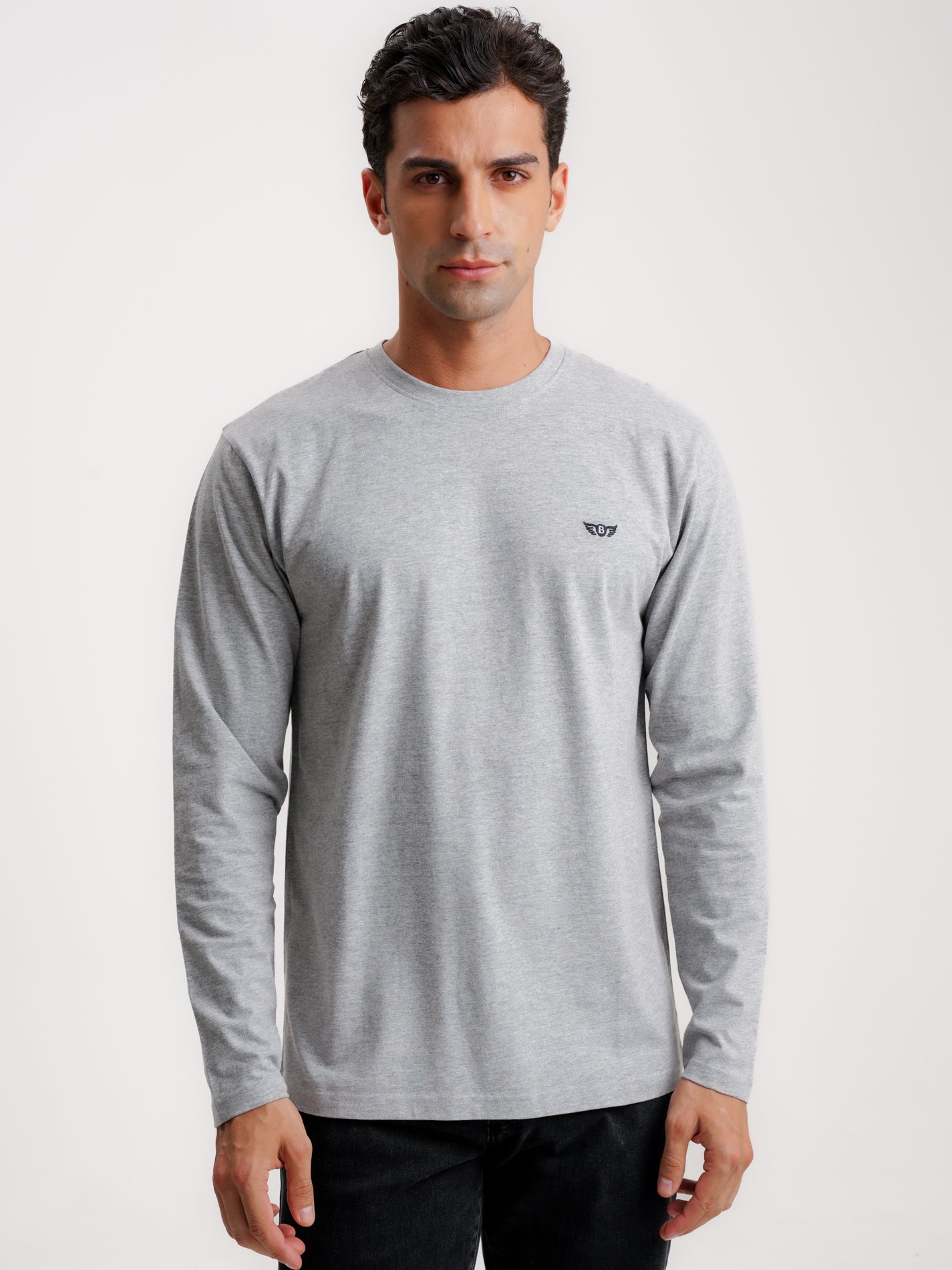 T-Shirt 100% Algodão Cinzenta Manga Comprida Com Logo