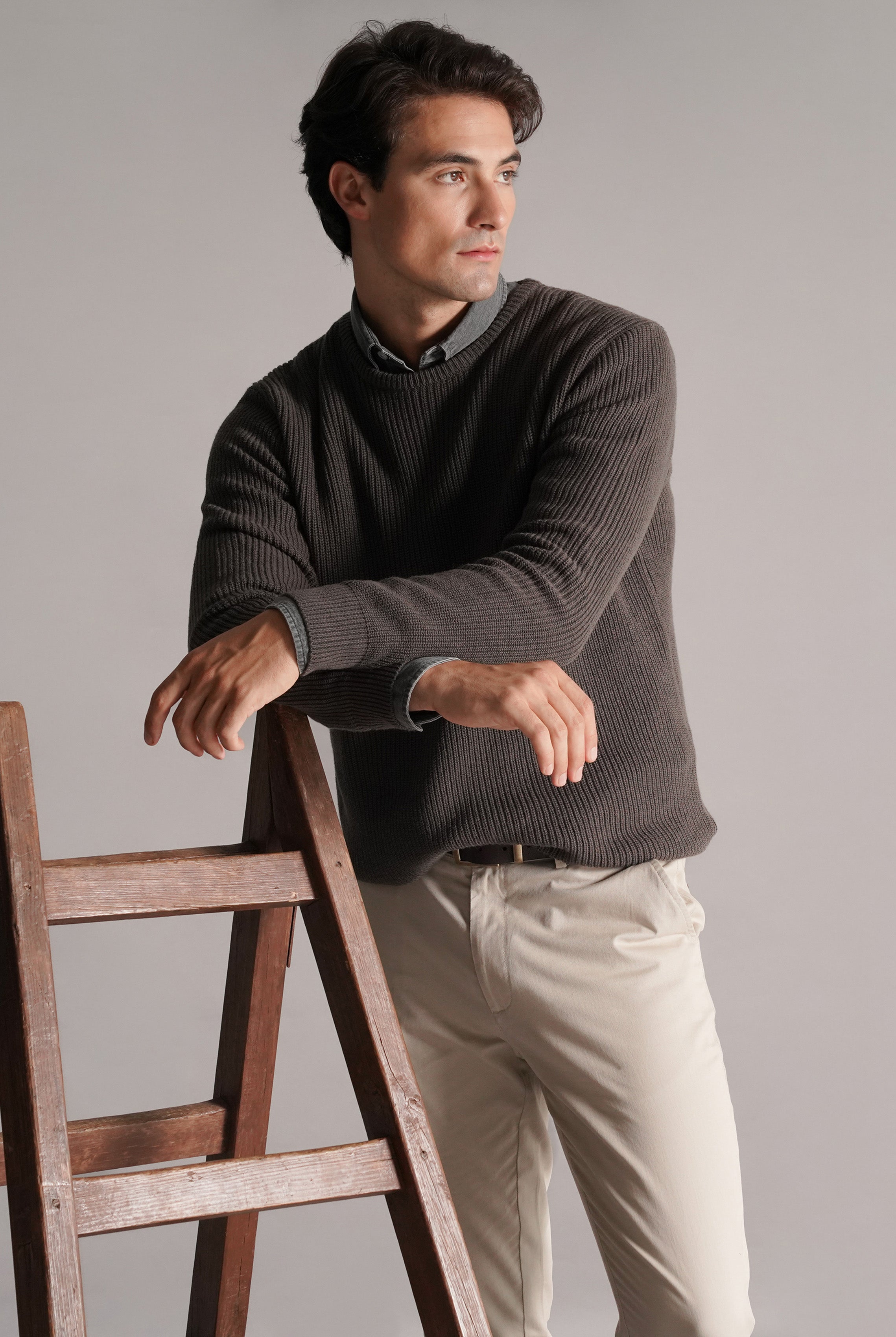 Pullover Caxemira Cinzento Manga Comprida Regular Fit