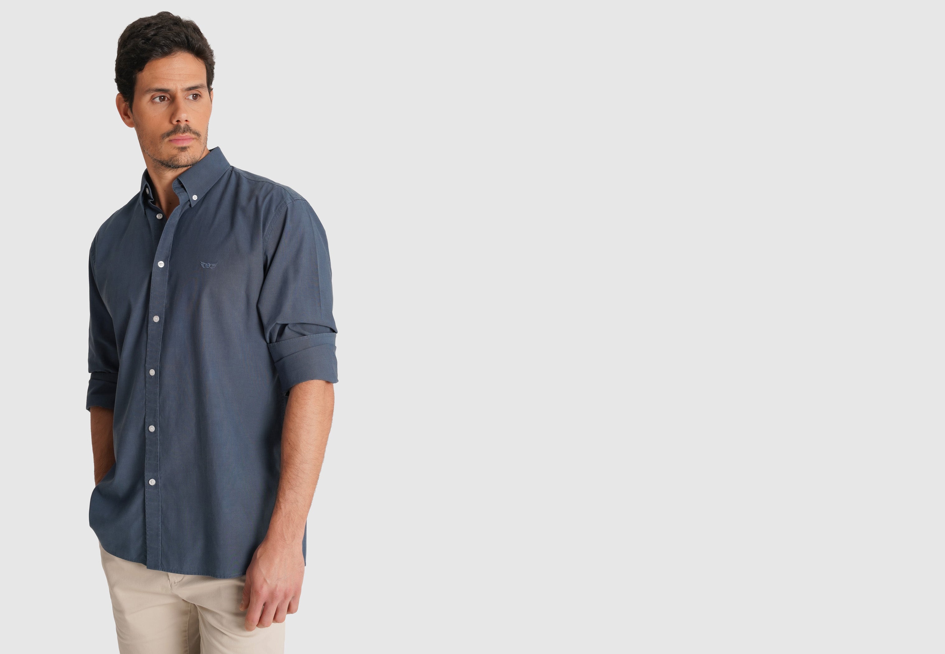 Camisa Algodão Azul Manga Comprida Regular Fit