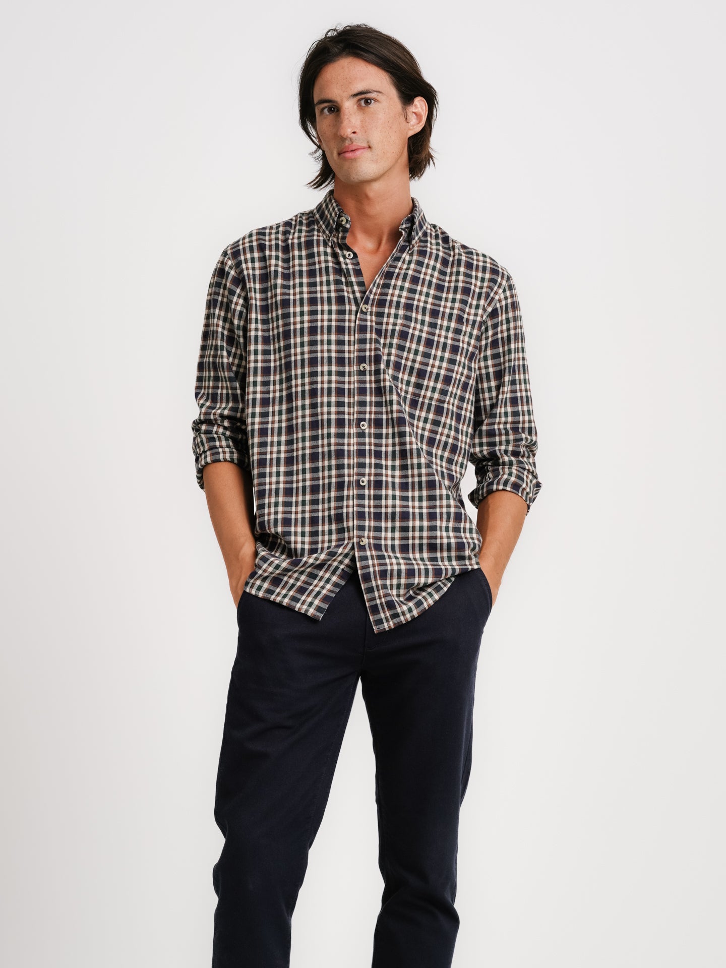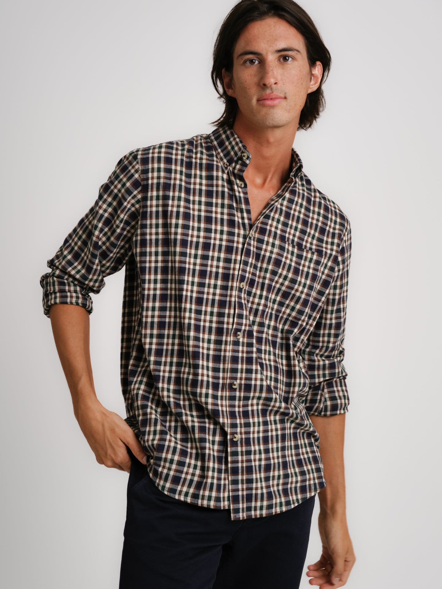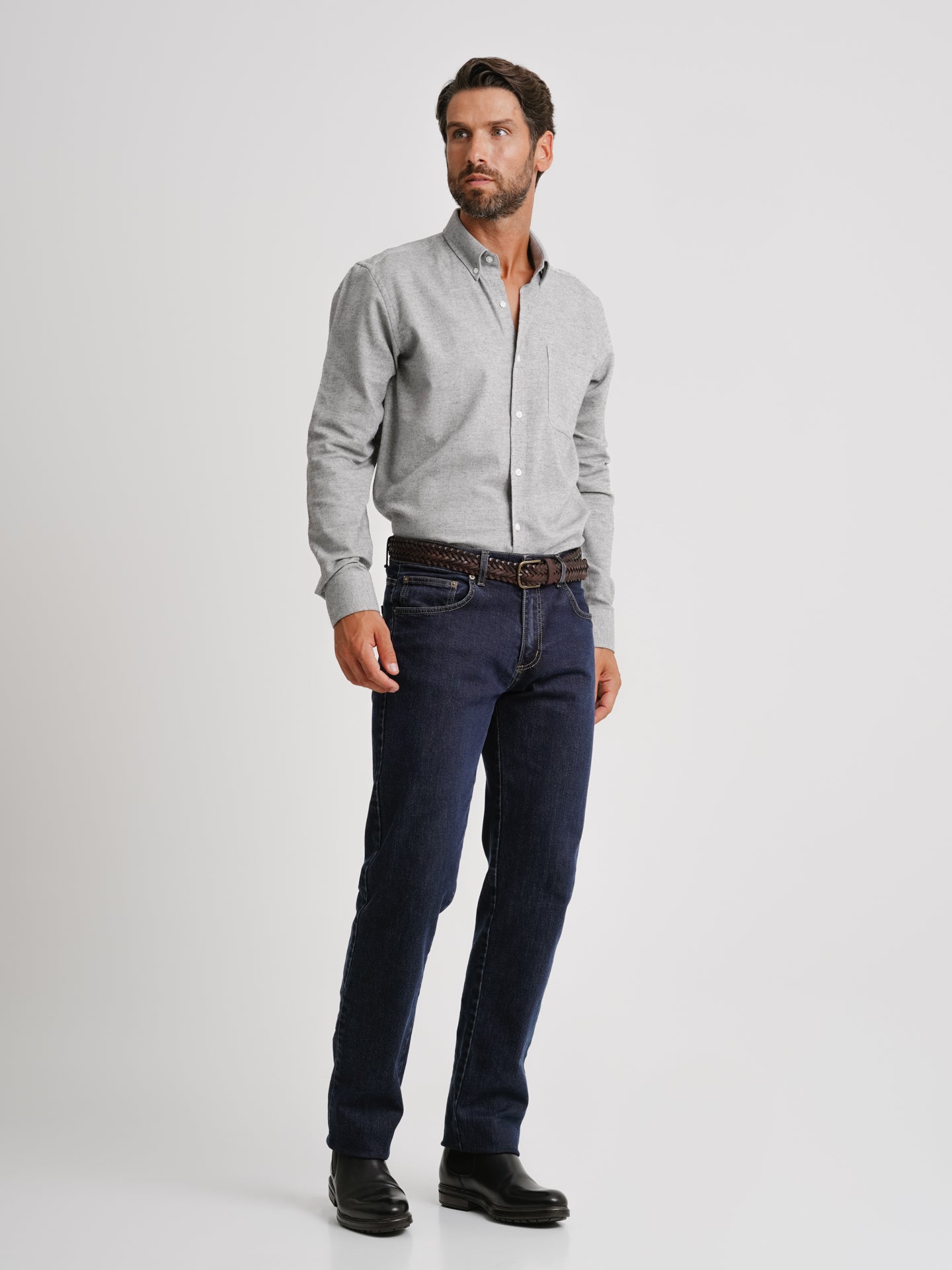 Camisa Regular Fit Flanela Cinzenta
