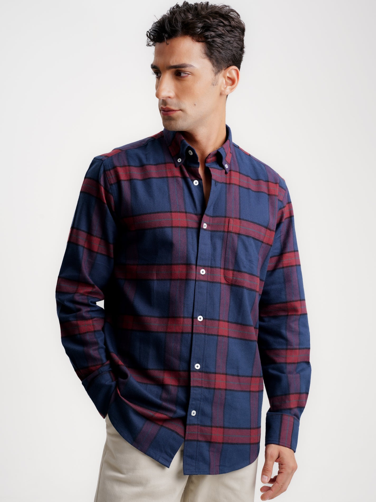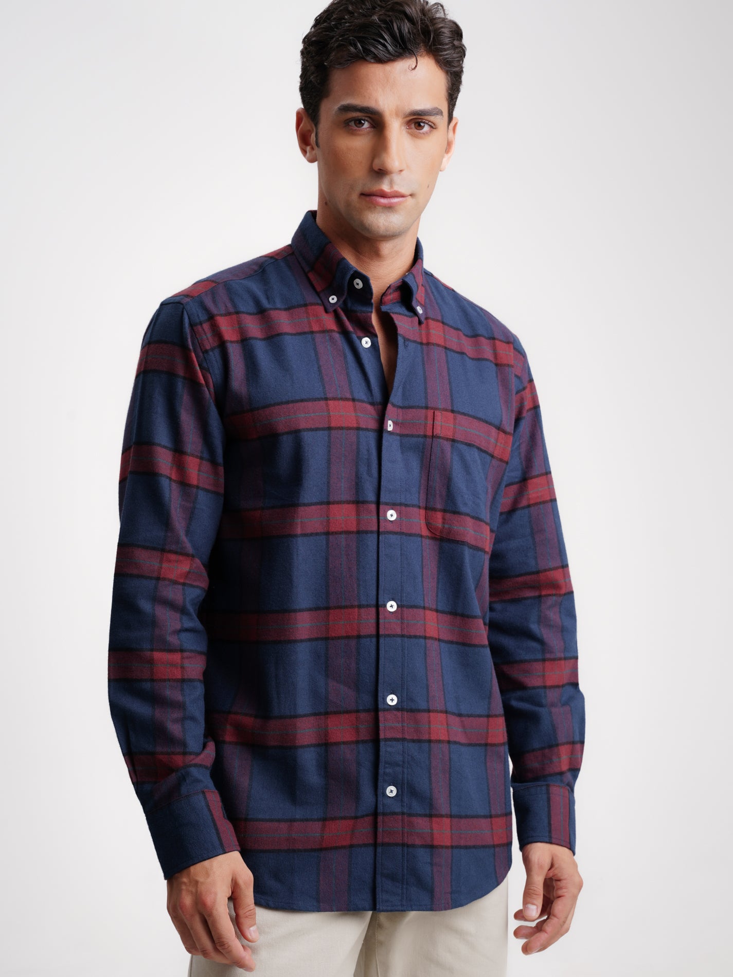Camisa Regular Fit Flanela Azul
