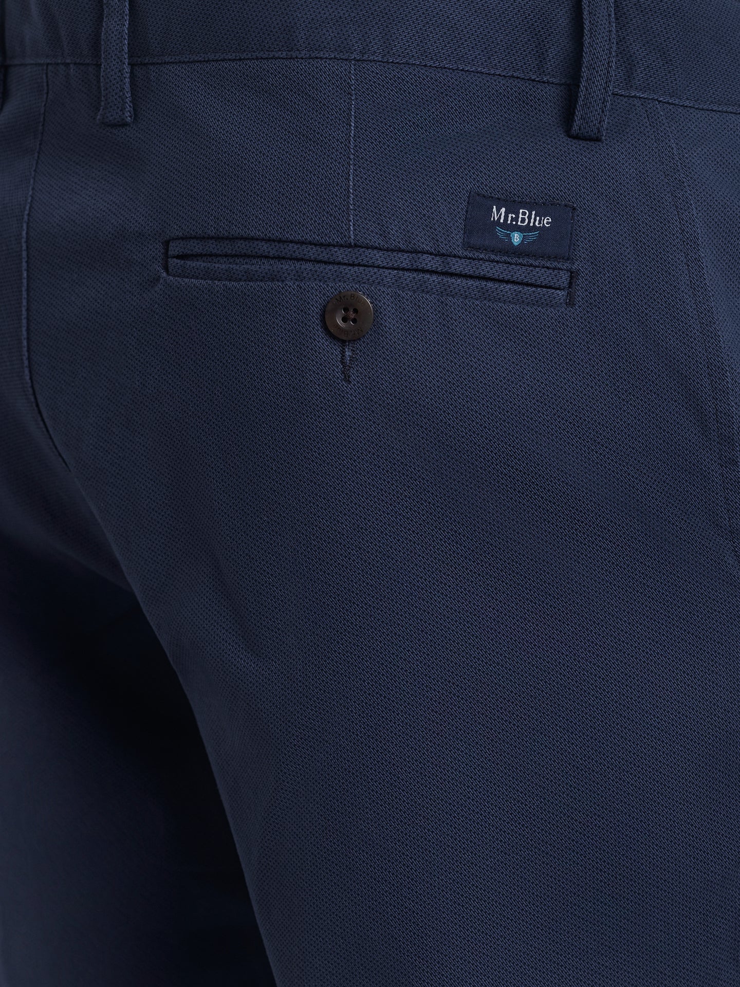 Calças Chinos Regular Fit Twill Azuis De Algodão Com Padrão