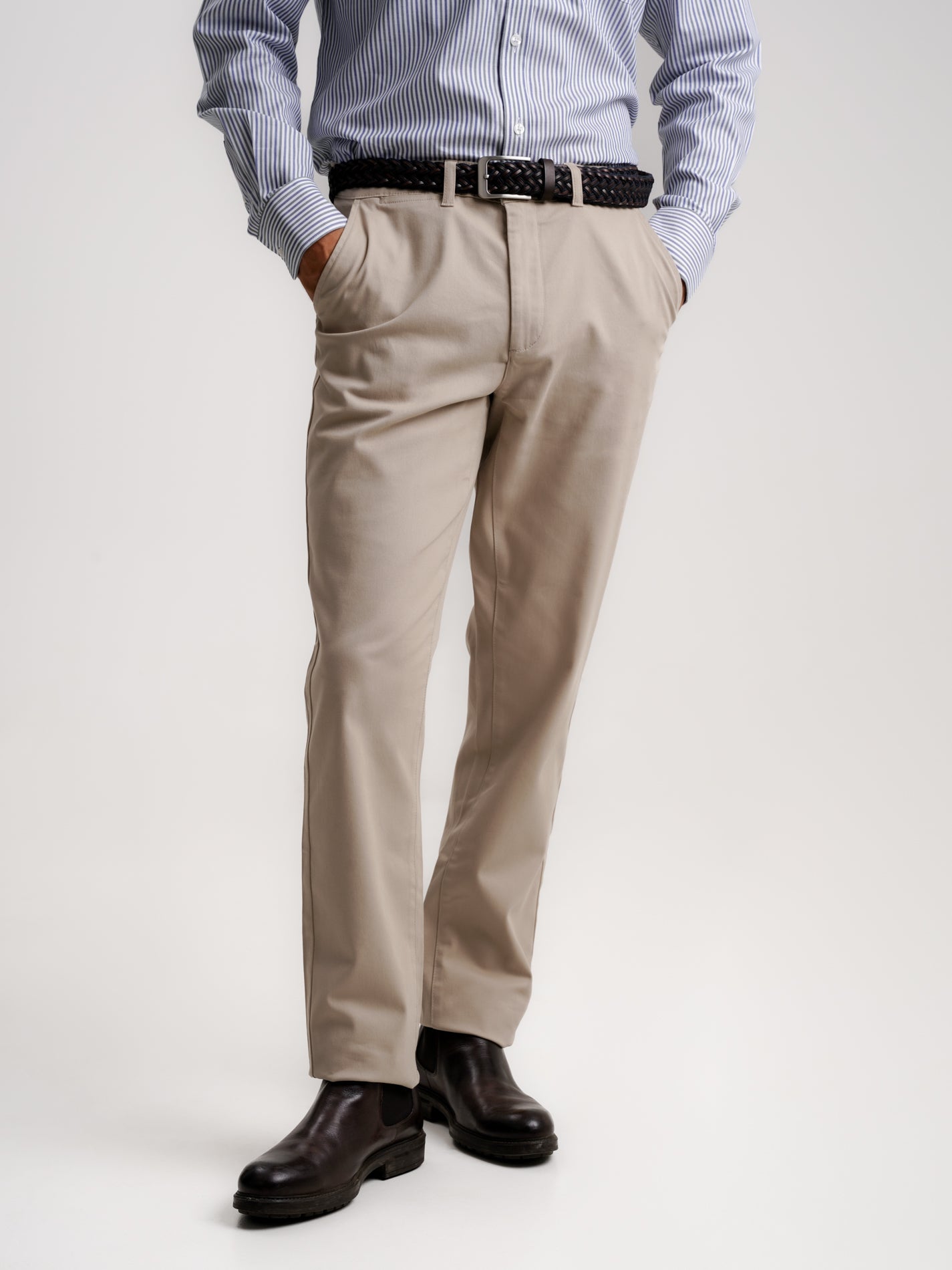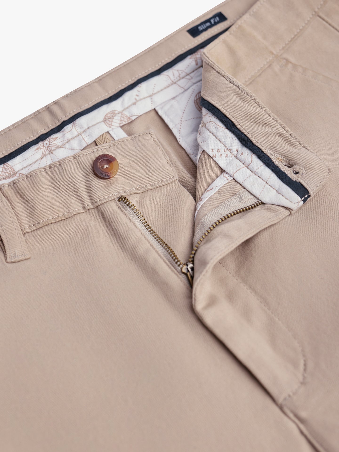 Calças Chinos Slim Fit Twill Beges De Algodão Lisas