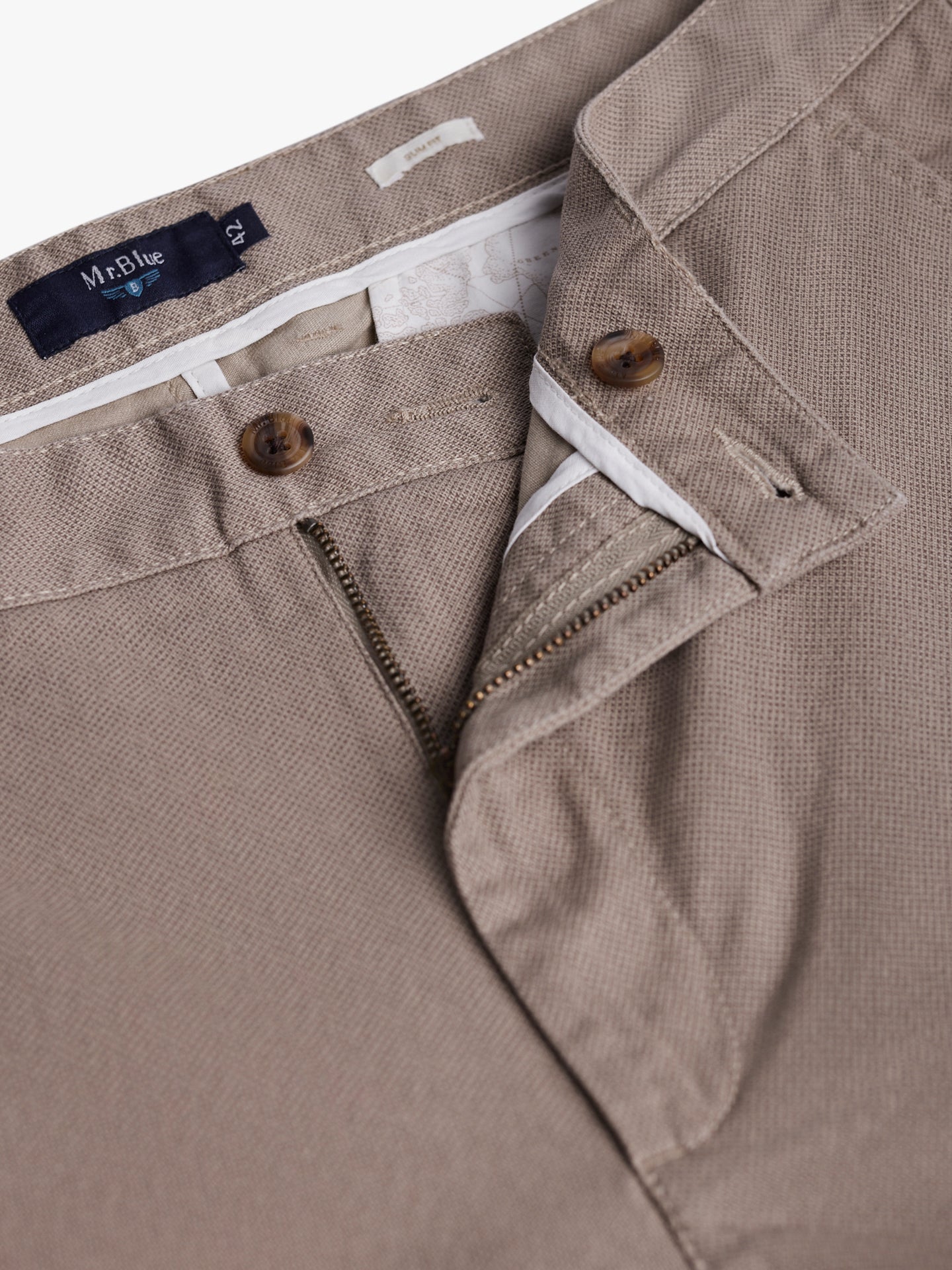 Calças Chinos Slim Fit Twill Beges De Algodão Com Padrão