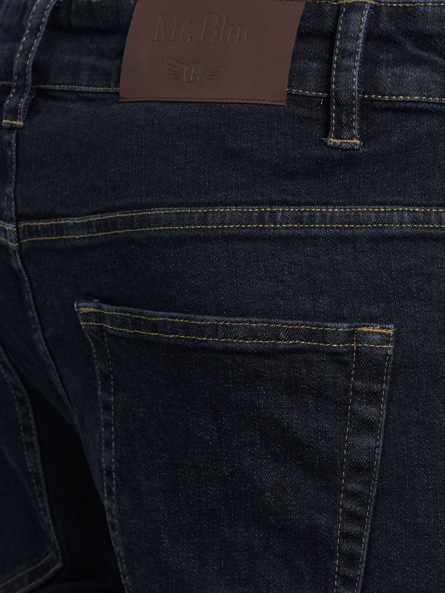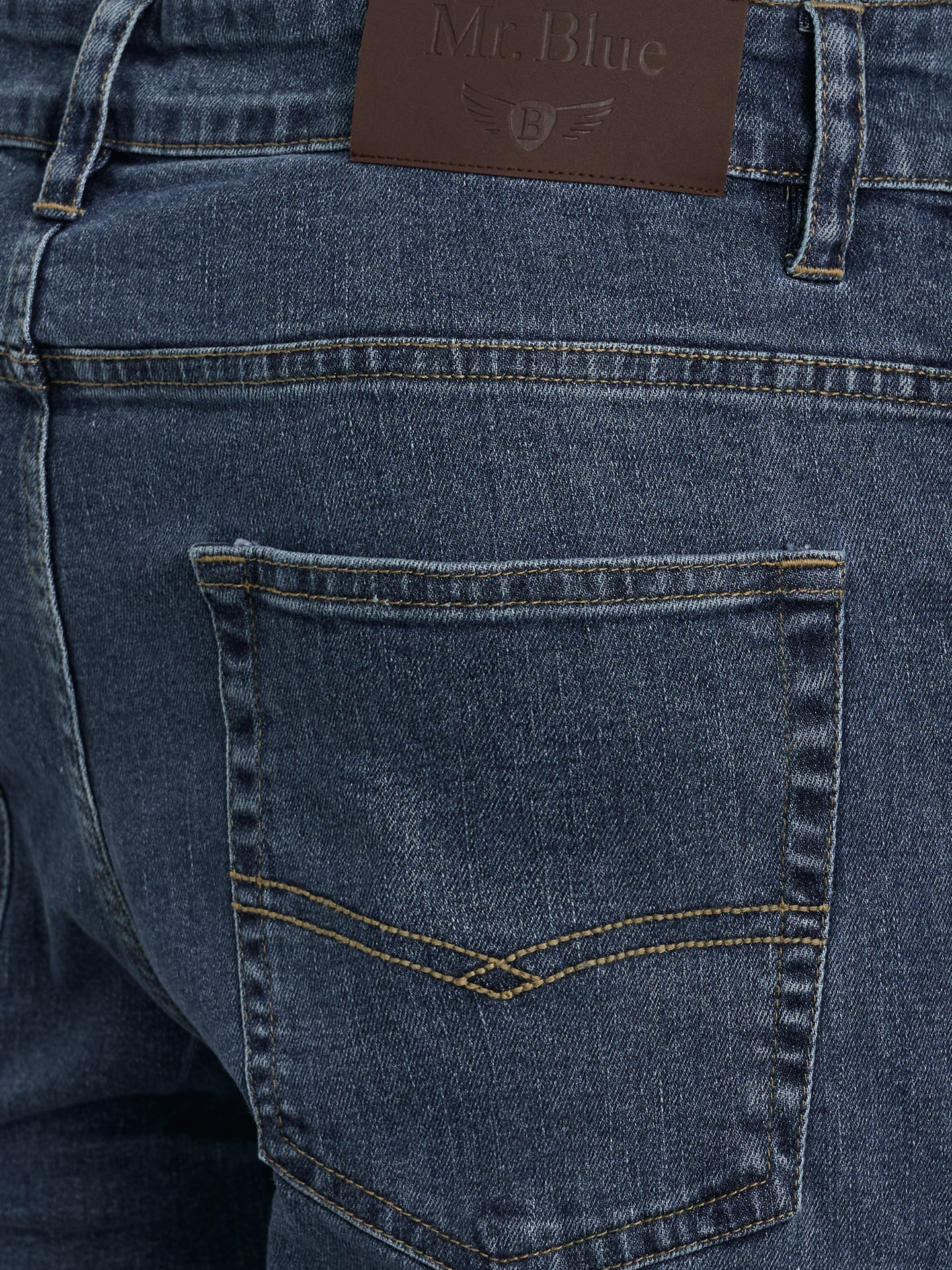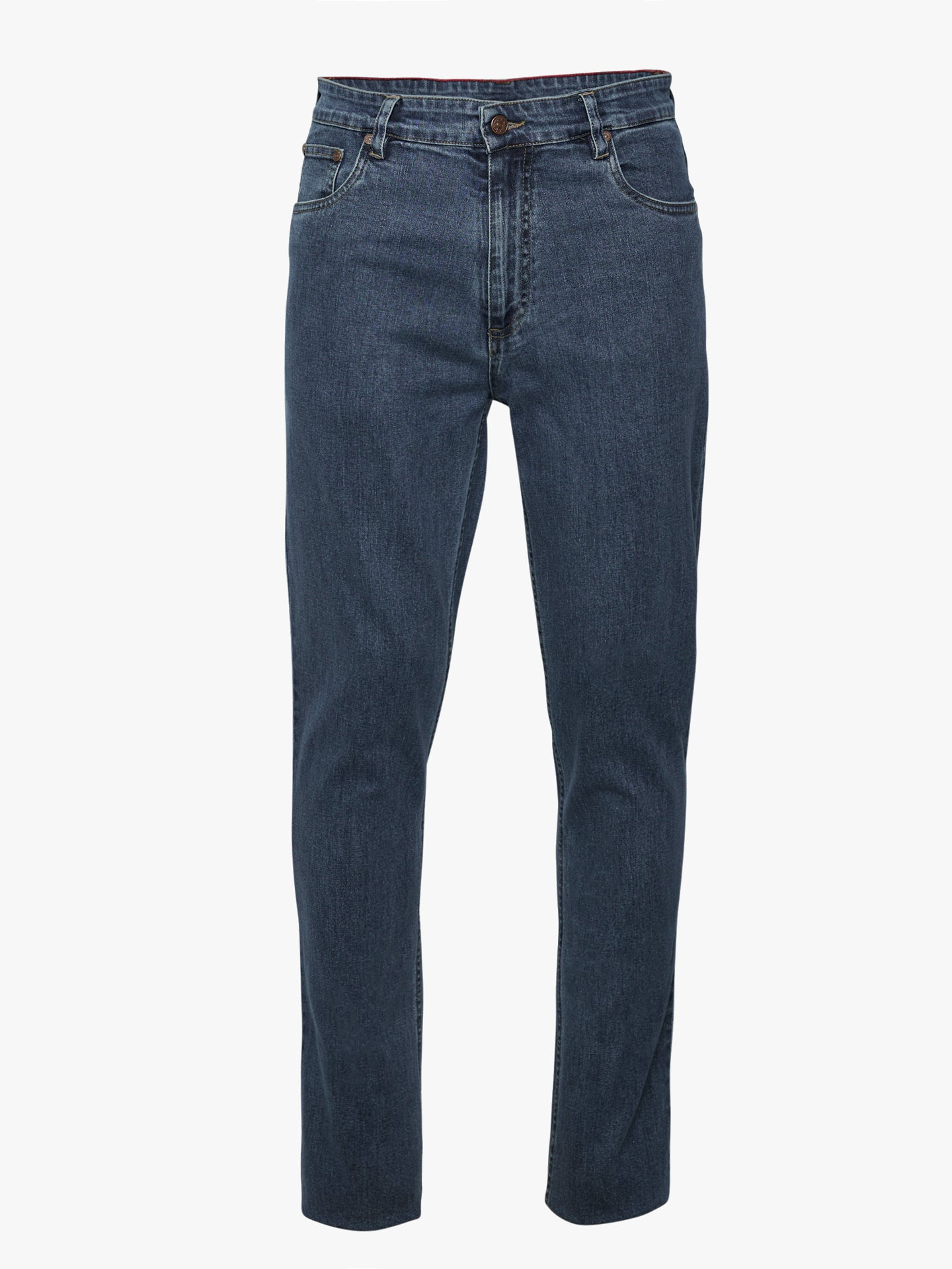 Calças de ganga stone wash azul escuro cintura subida