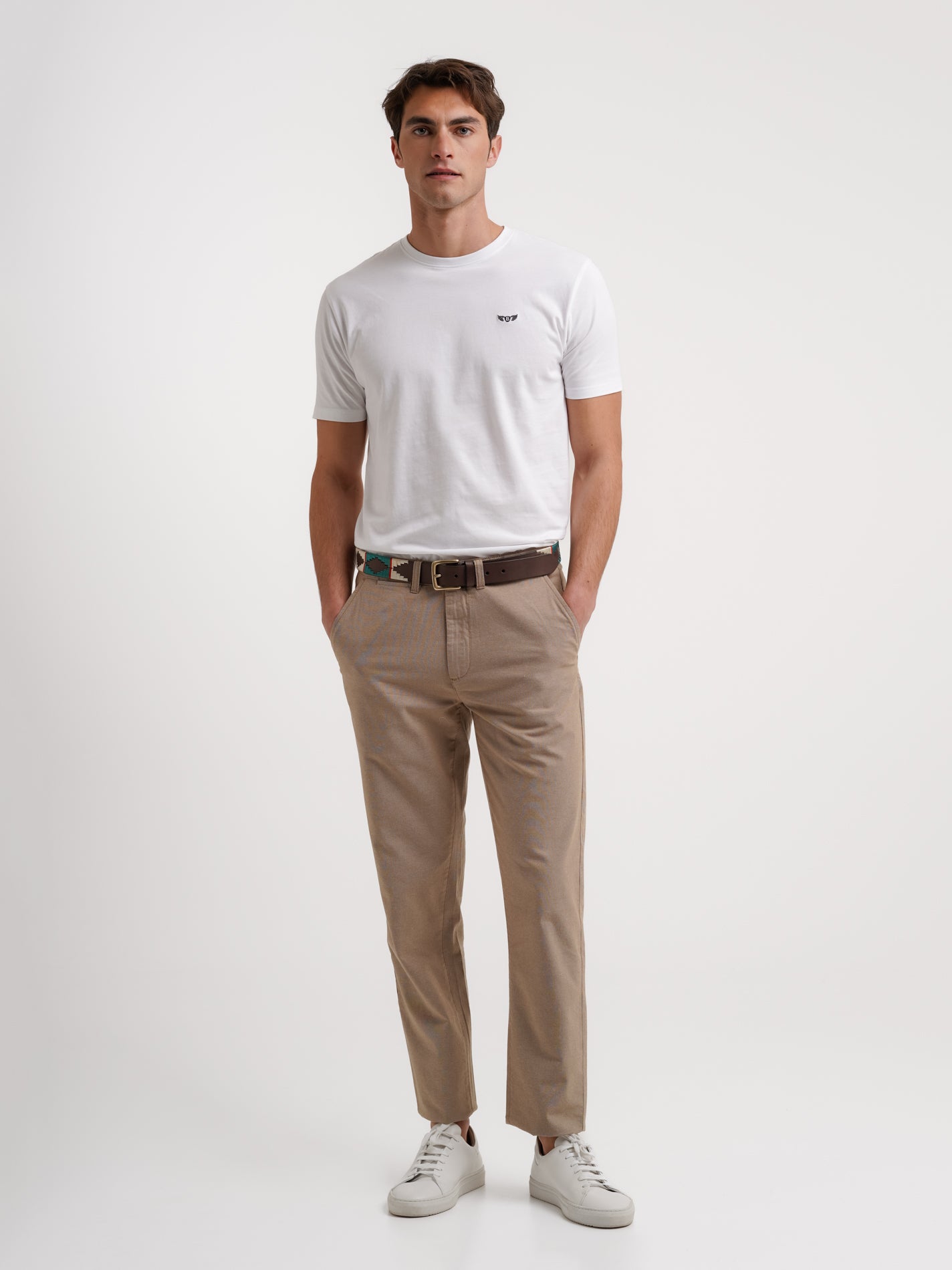 Calças Chino Canvas lisas Tailored Fit com detalhe