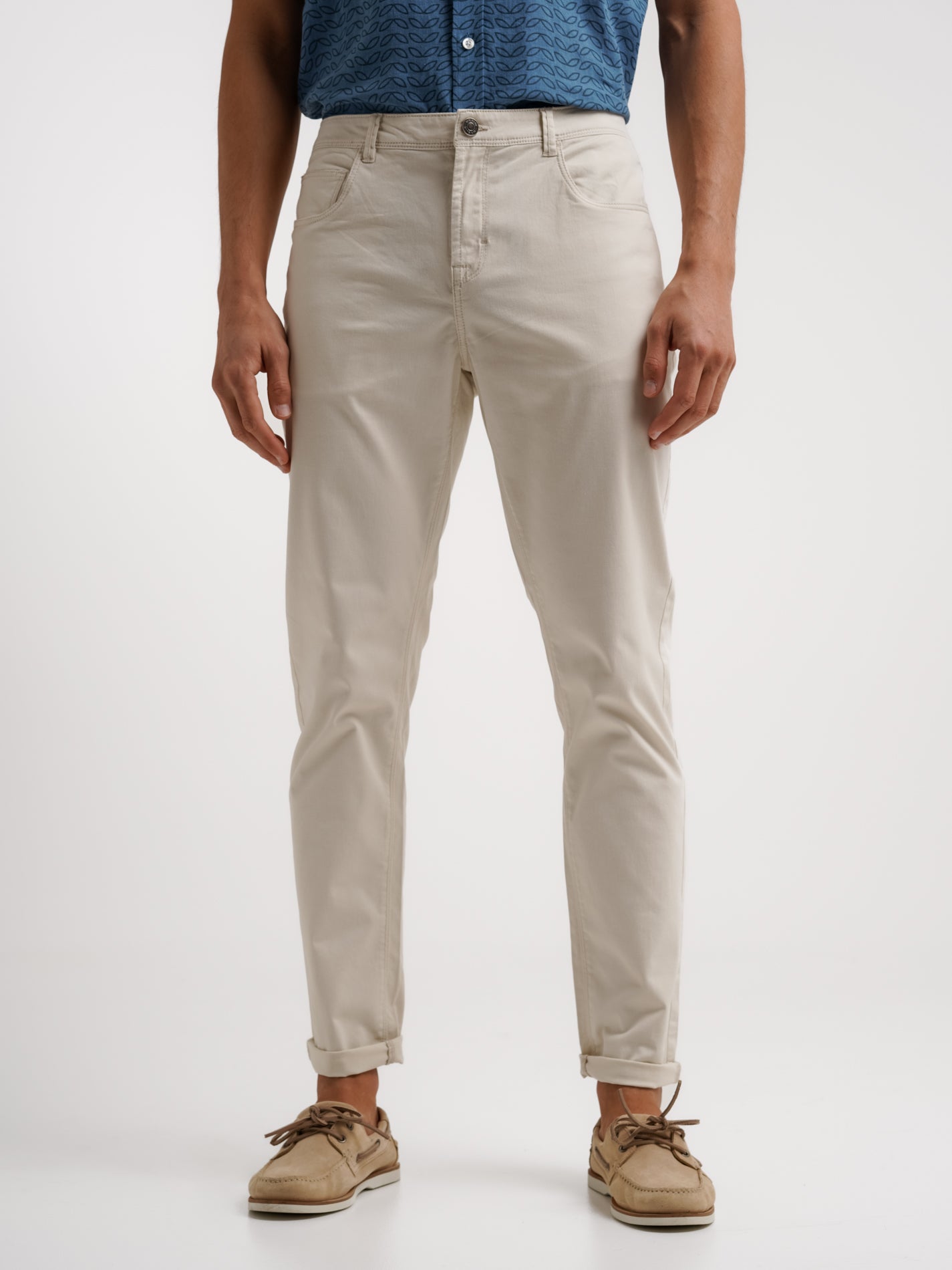 Calças Slim Fit Bege