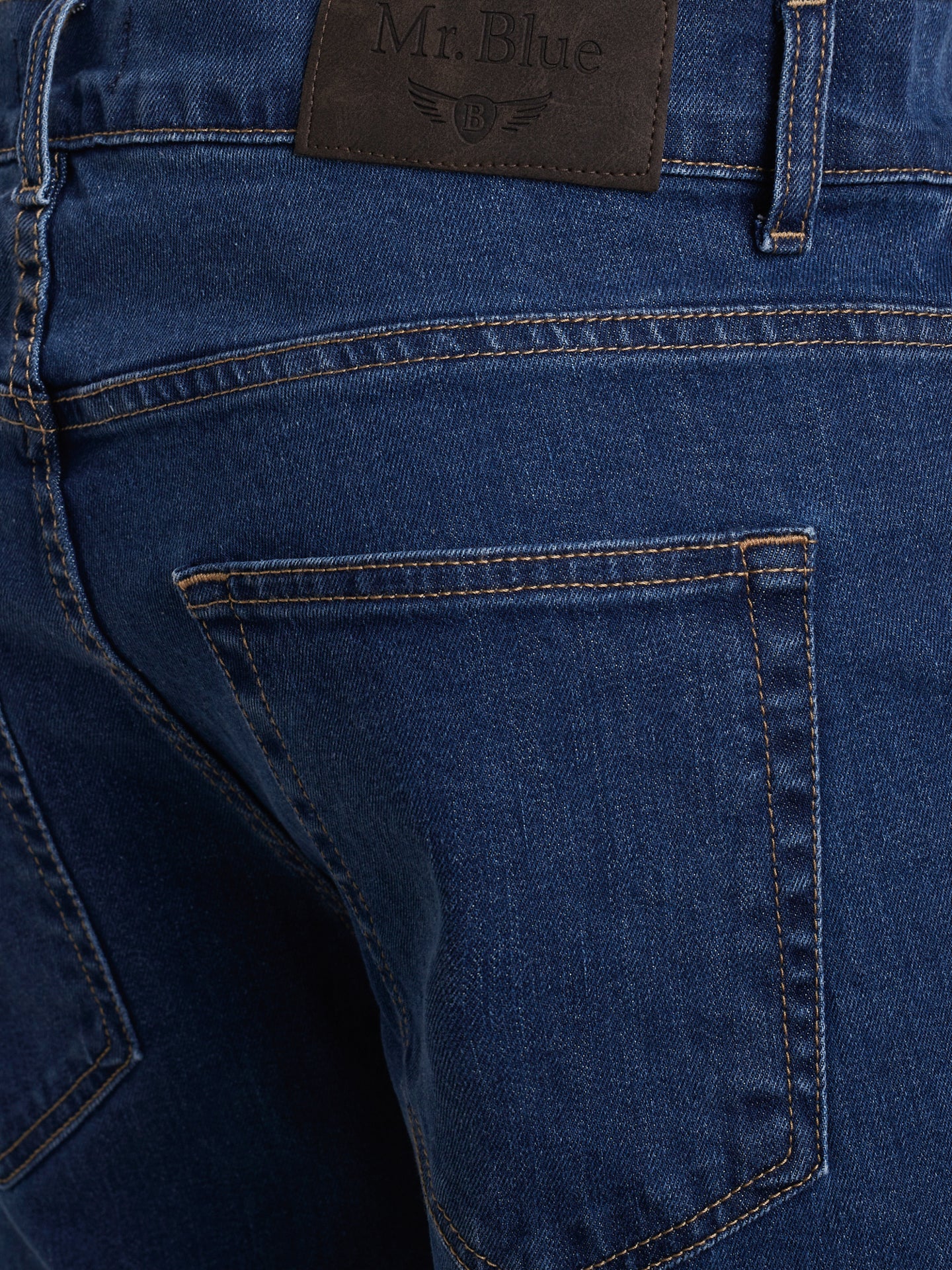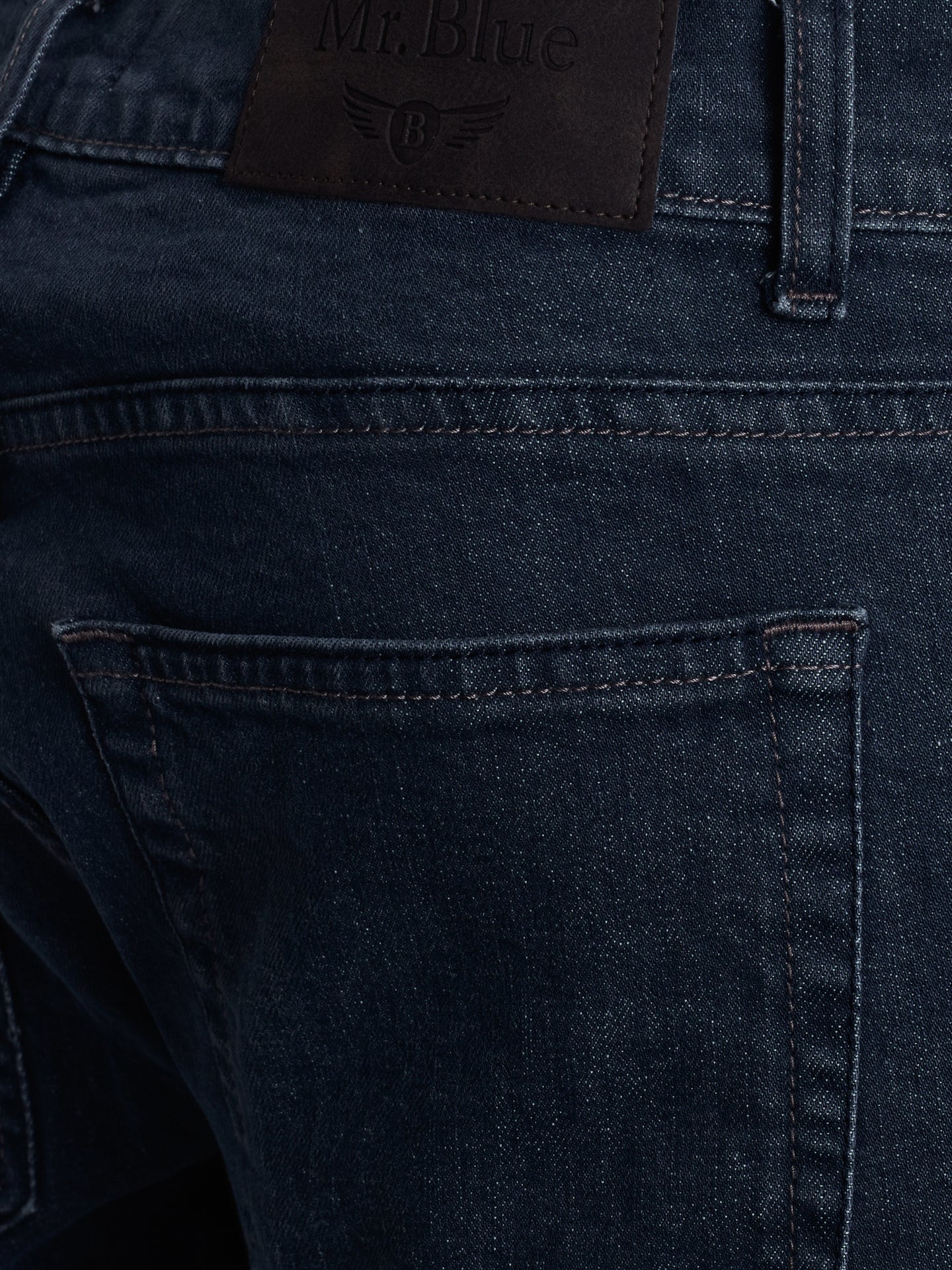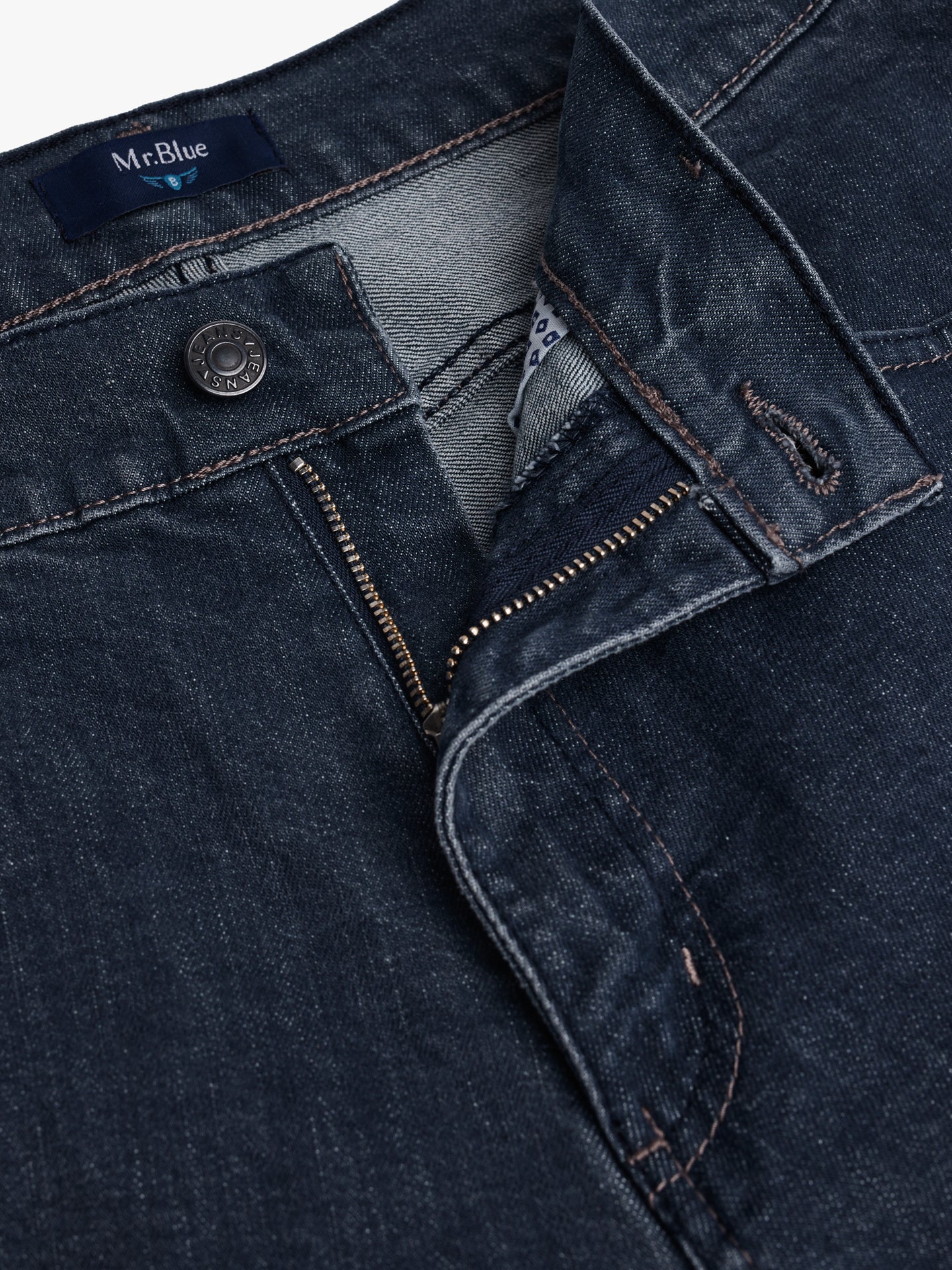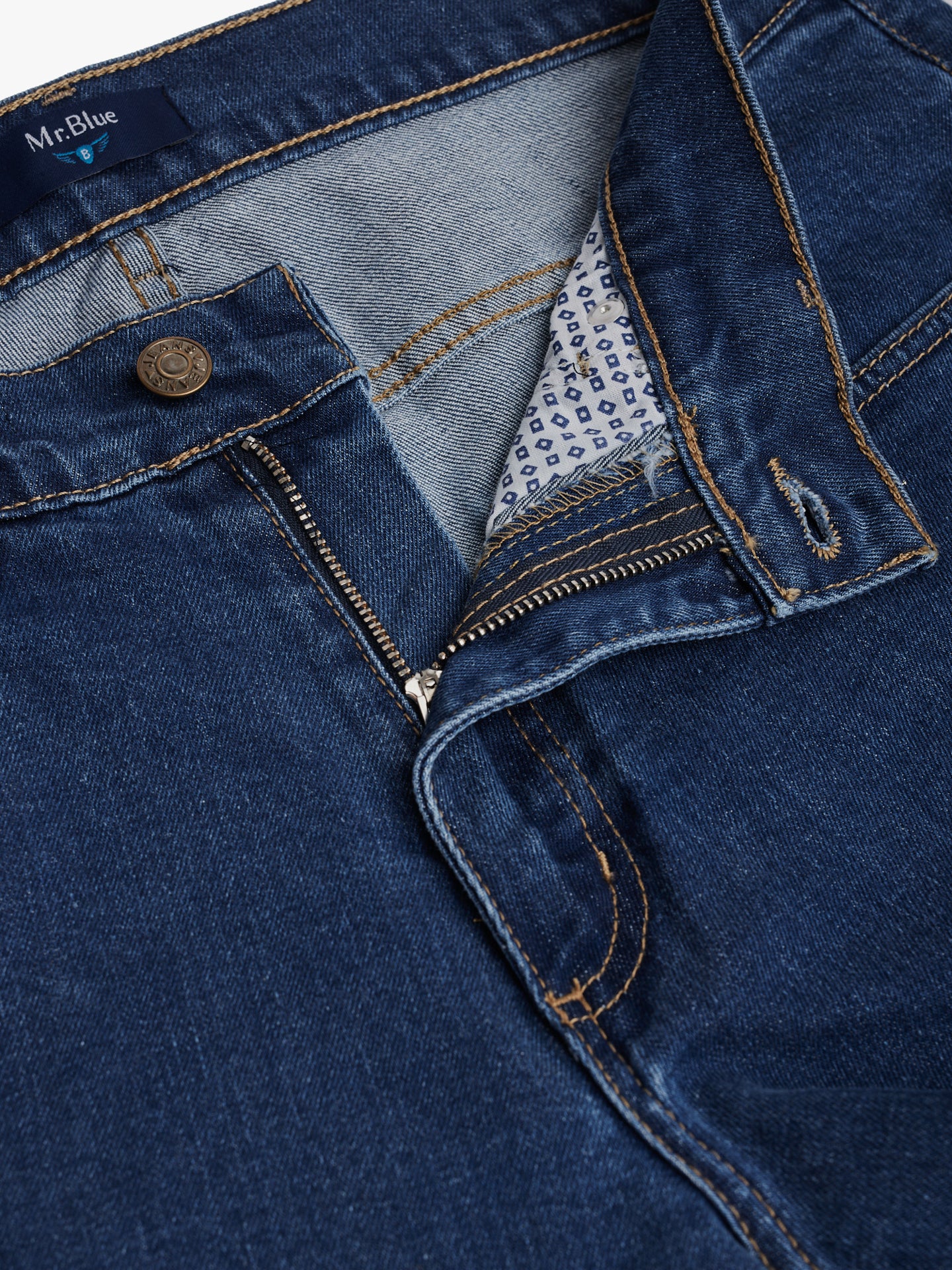 Calças de ganga stone wash azul escuro cintura subida