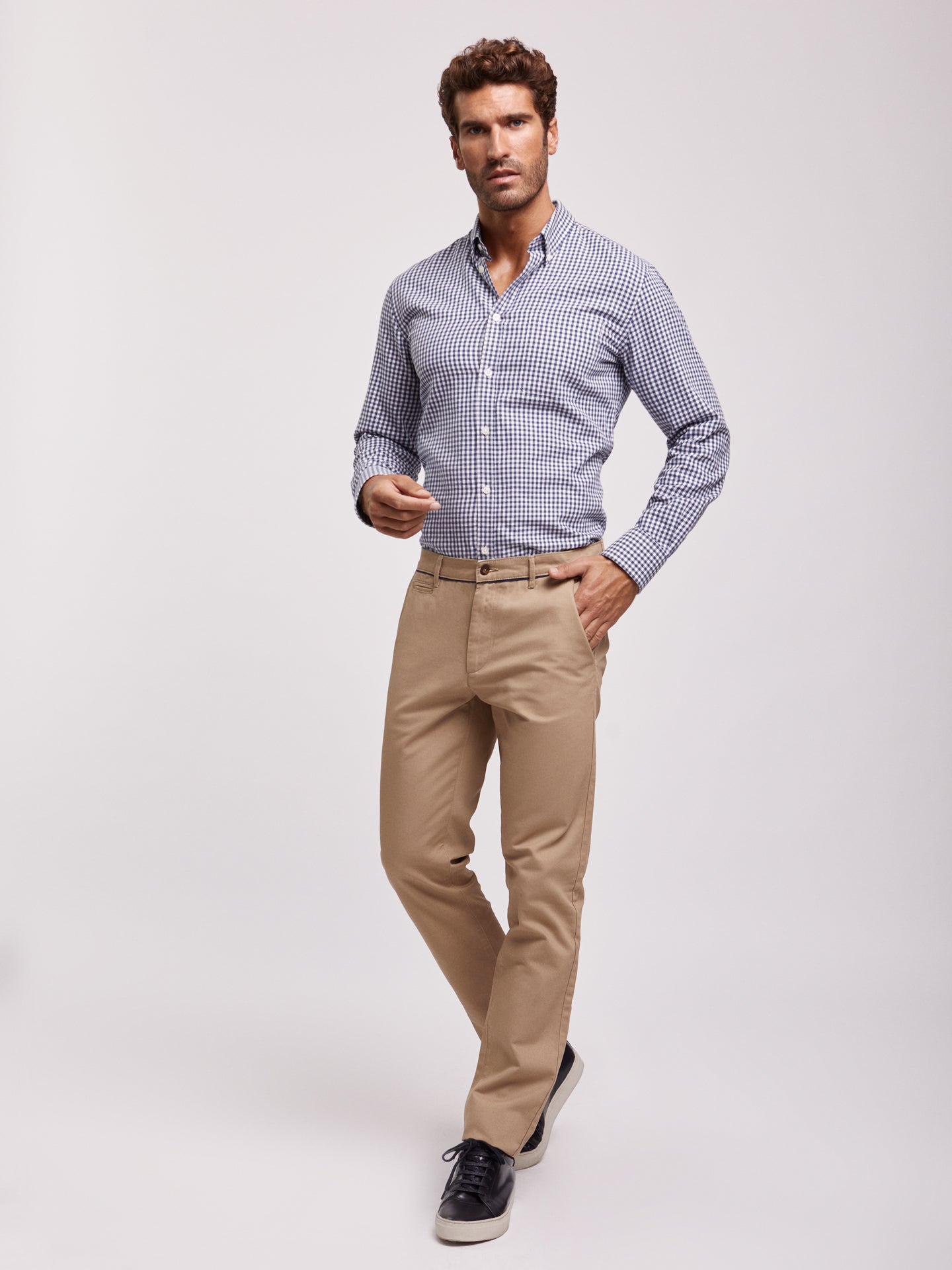 CALÇAS CHINO ESTRUTURADA COM ELASTANO REGULAR FIT