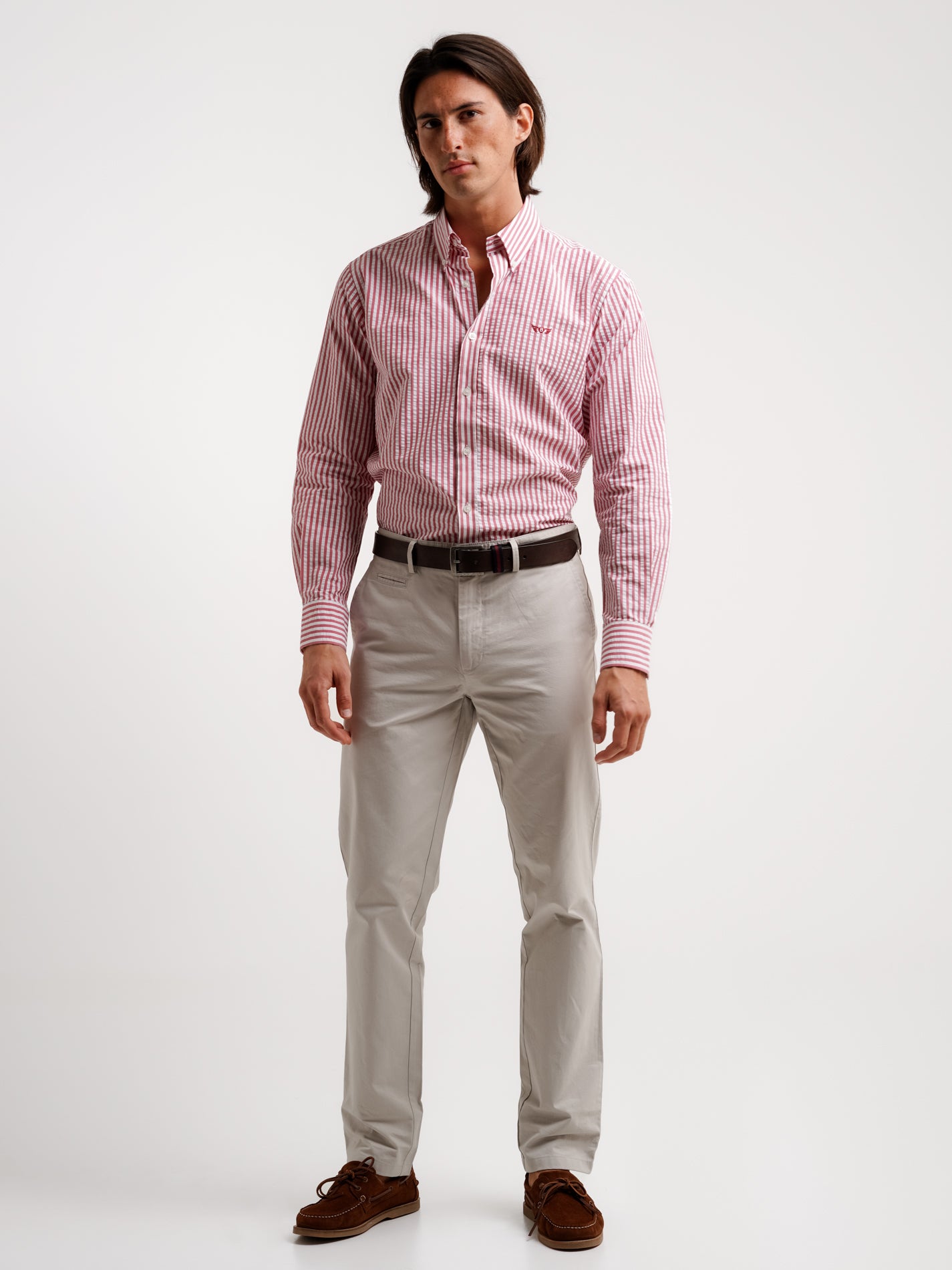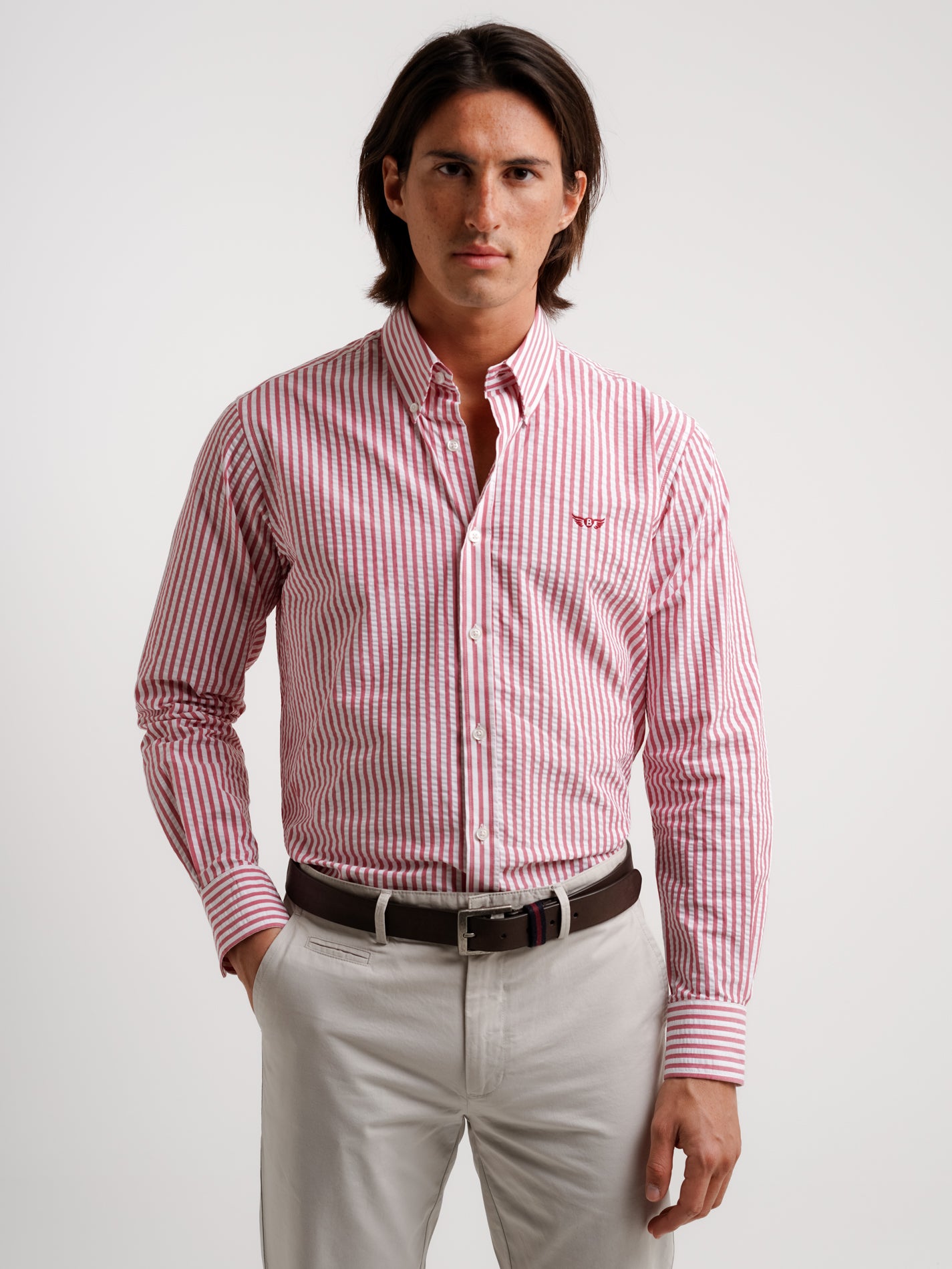 Camisa Regular Fit Seersucker Vermelha