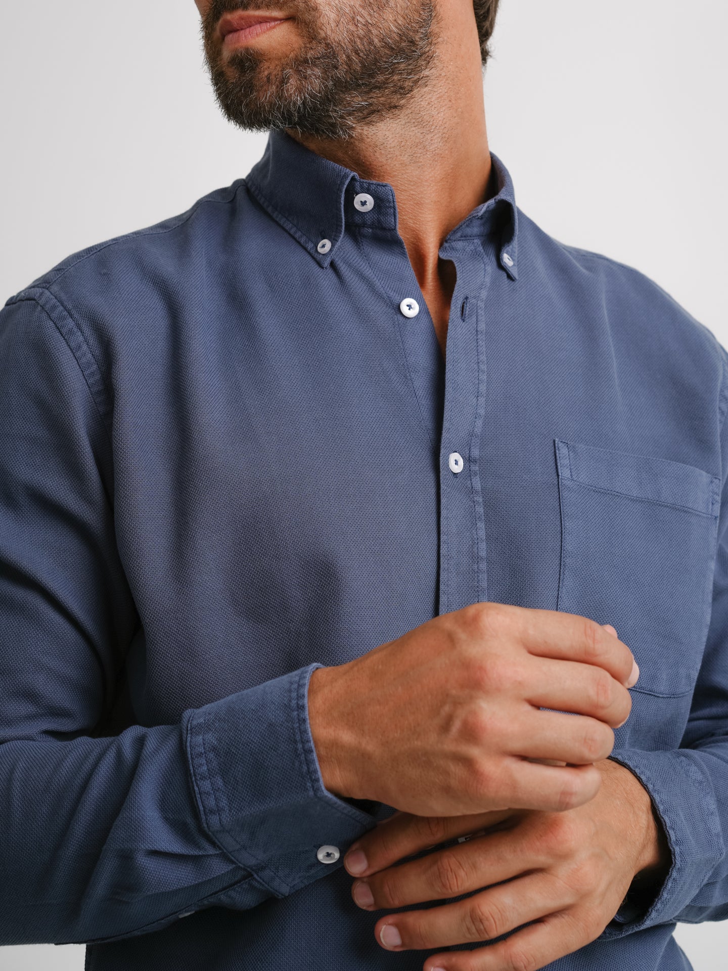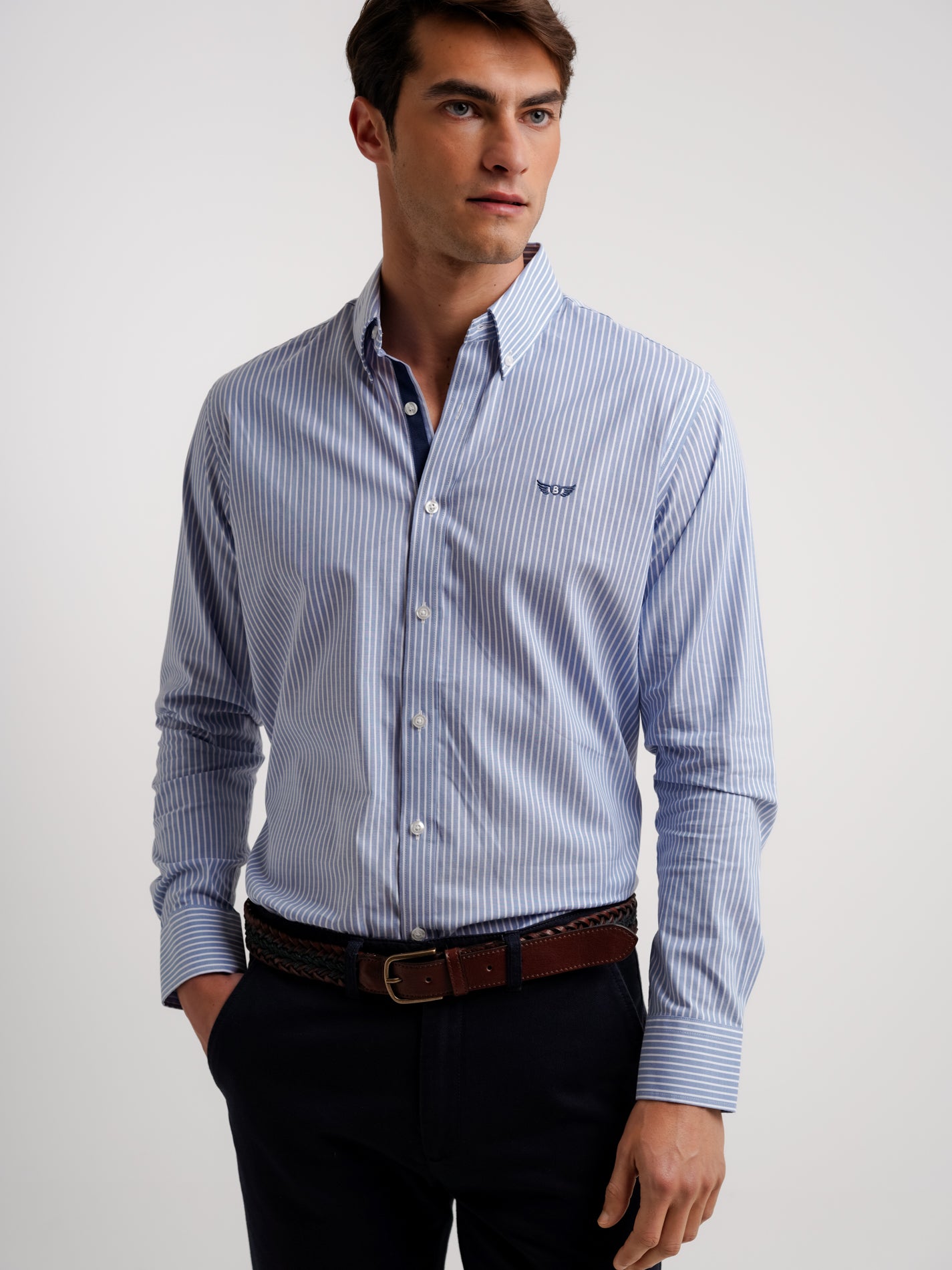 Camisa Regular Fit Estruturada Azul