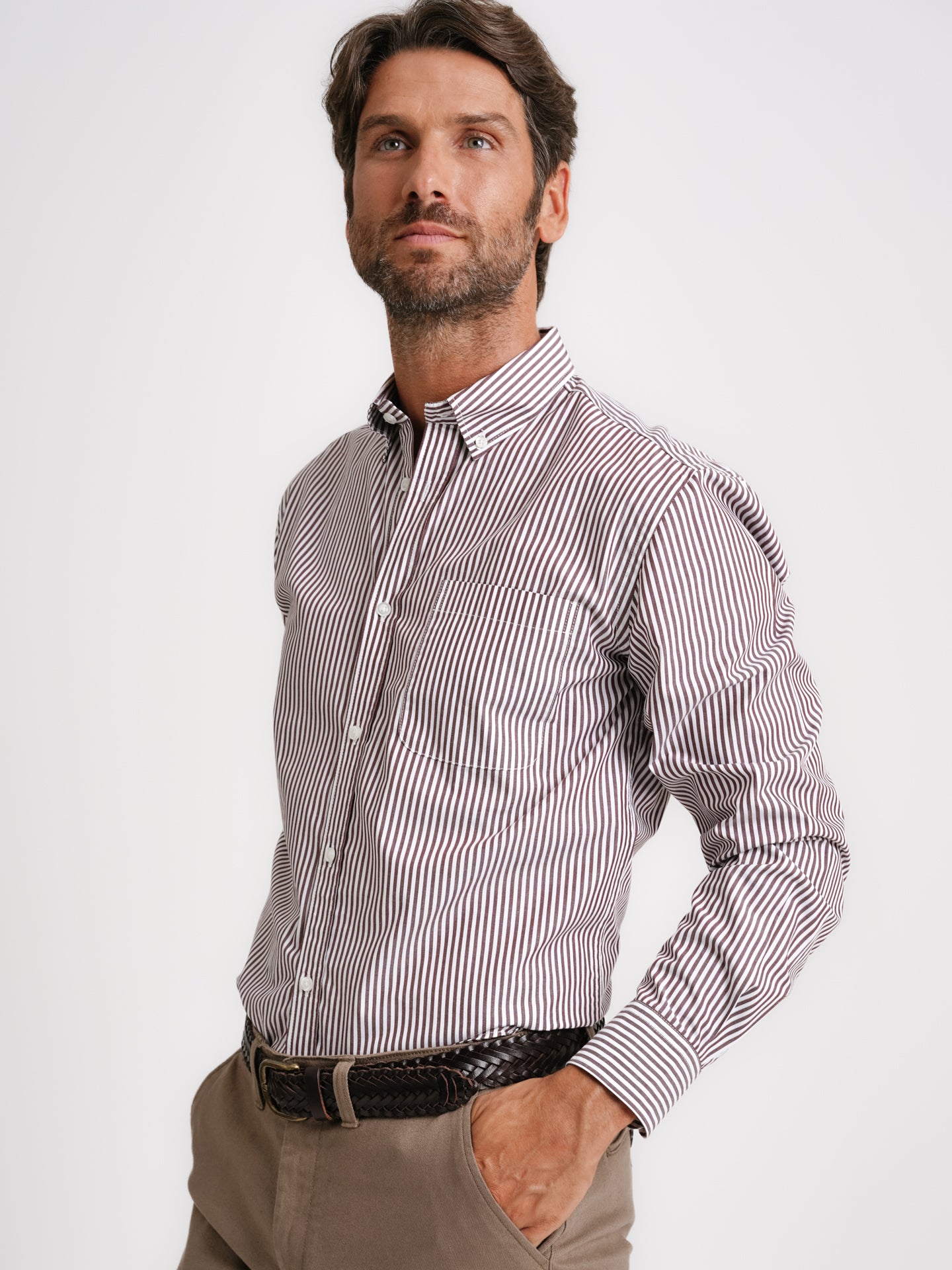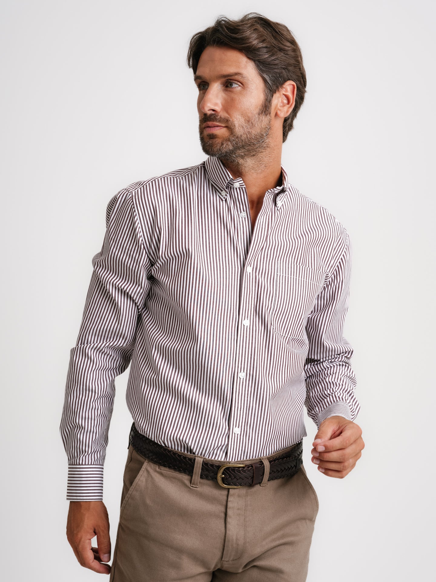 Camisa Regular Fit Popeline Castanha