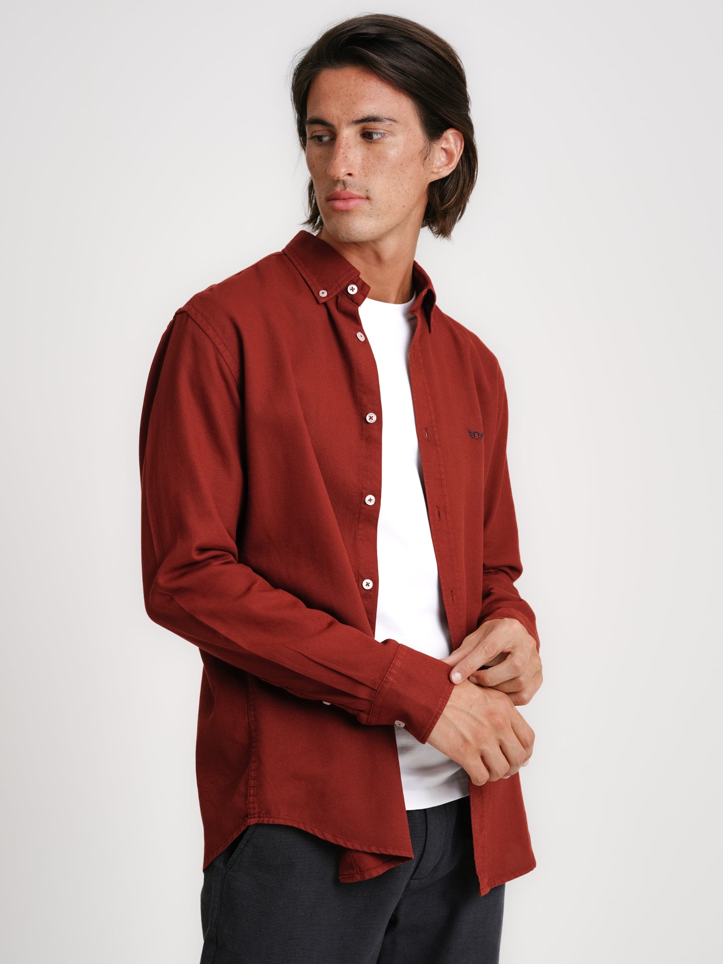Camisa Regular Fit Estruturada Bordeaux