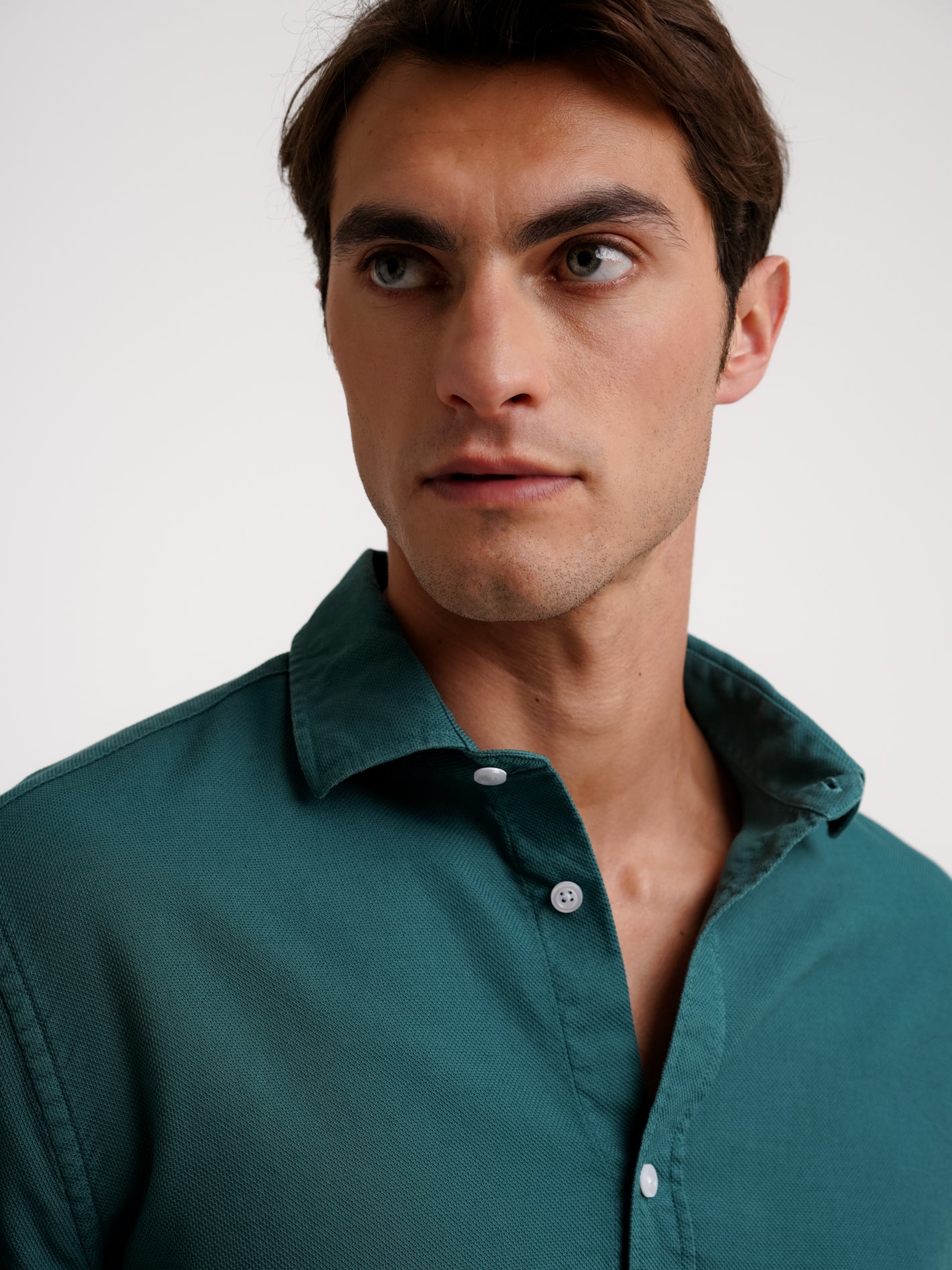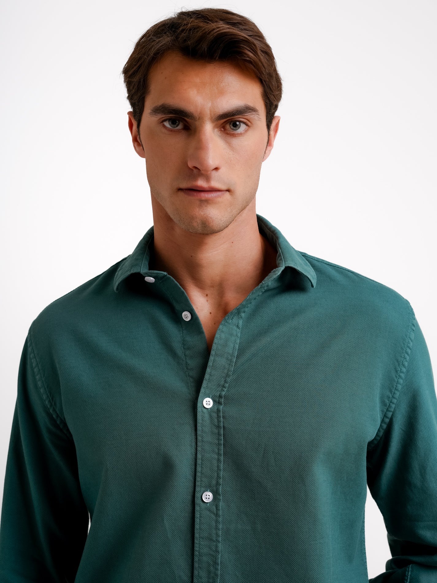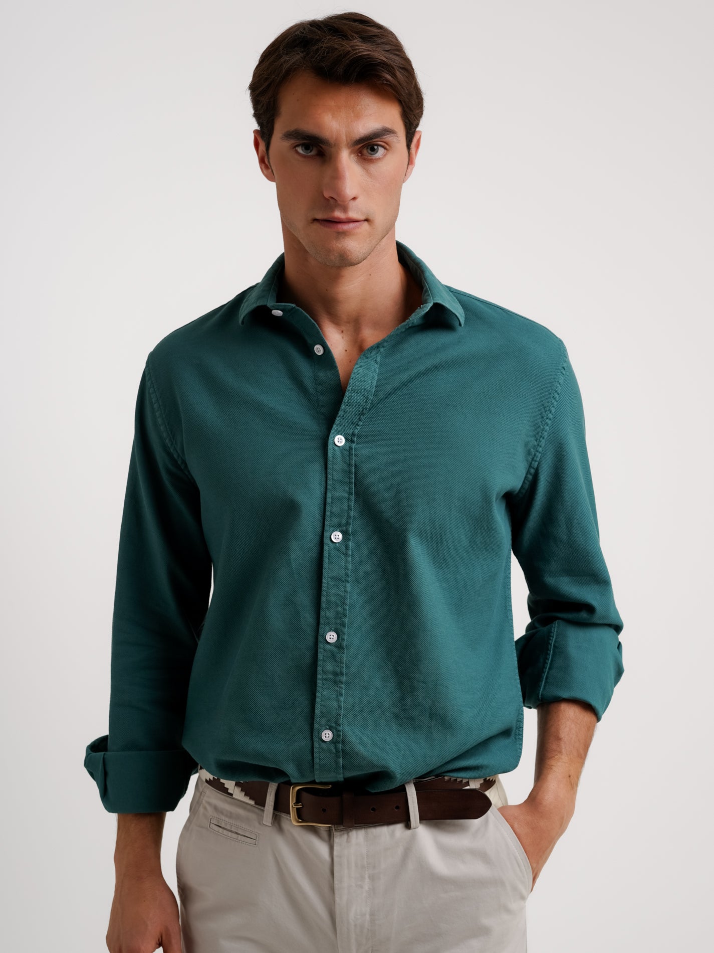 Camisa Regular Fit Estruturada Verde Algodão Lisa