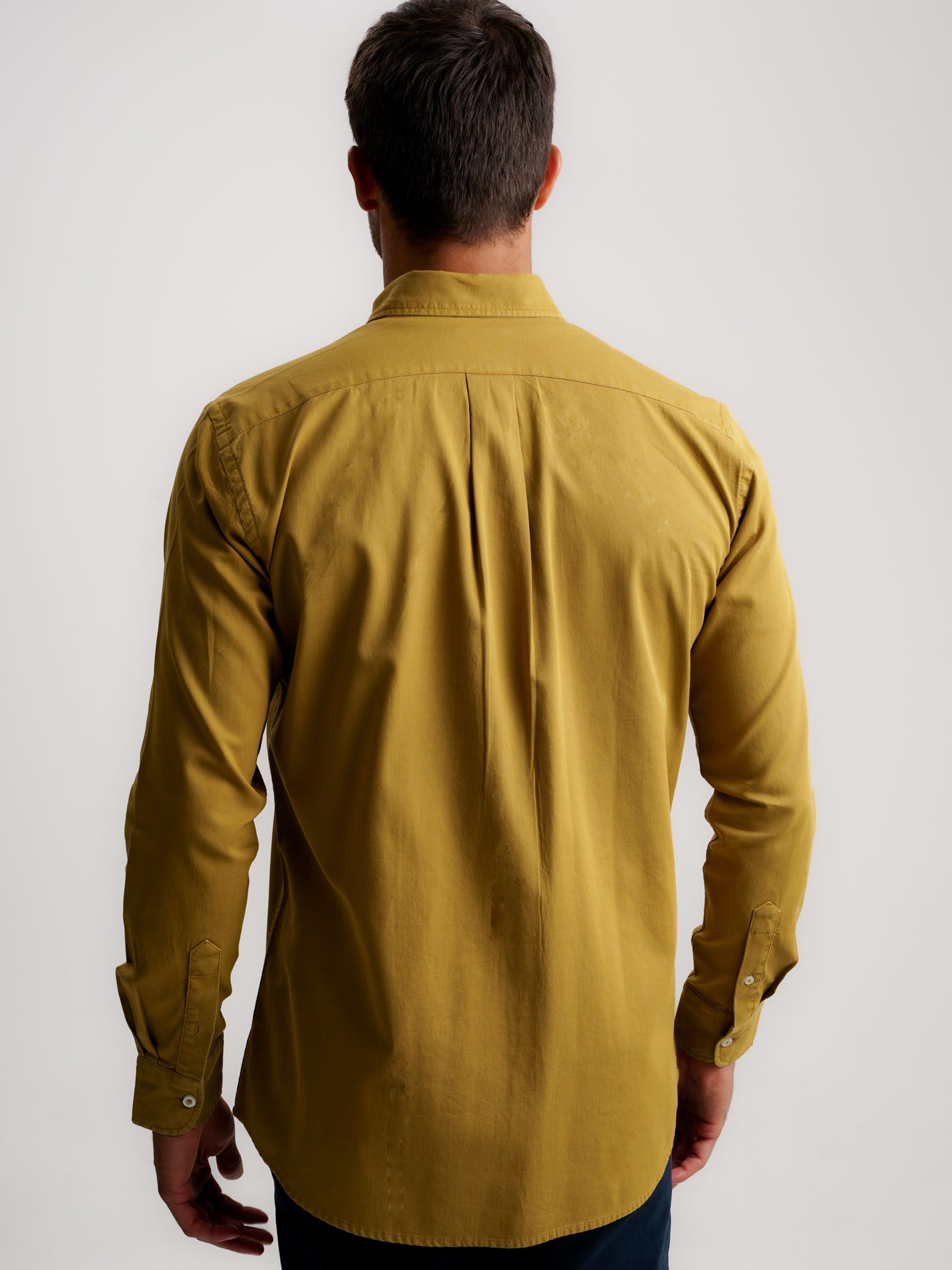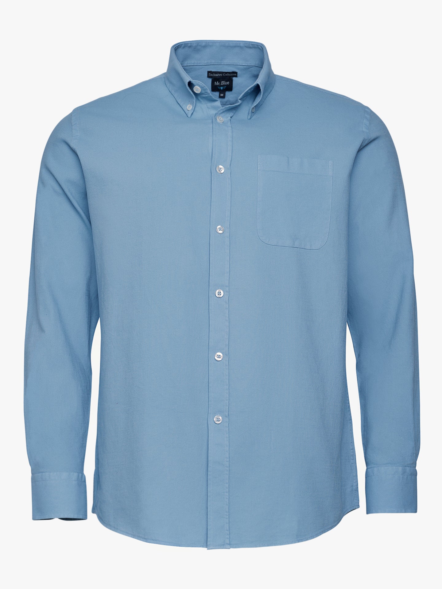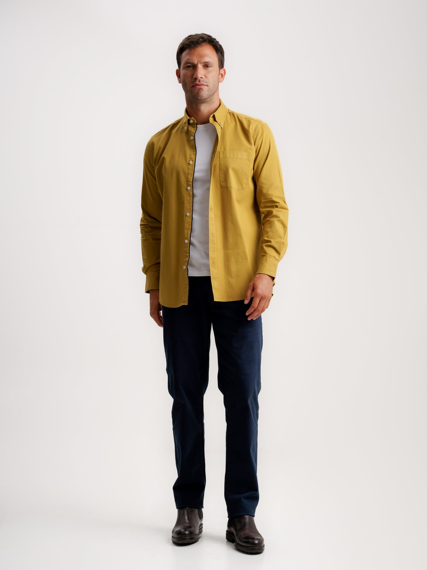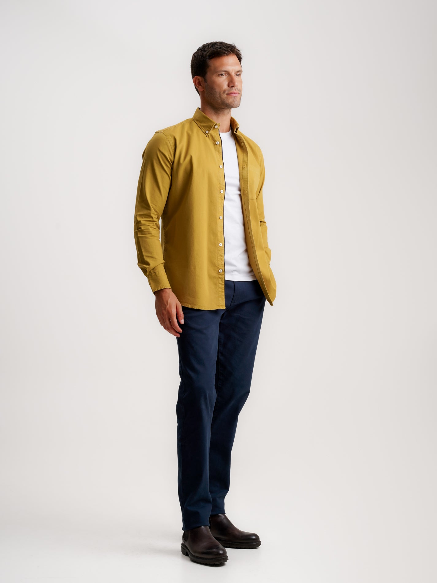 Calças de ganga cintura subida azul denim em tencel e algodão
