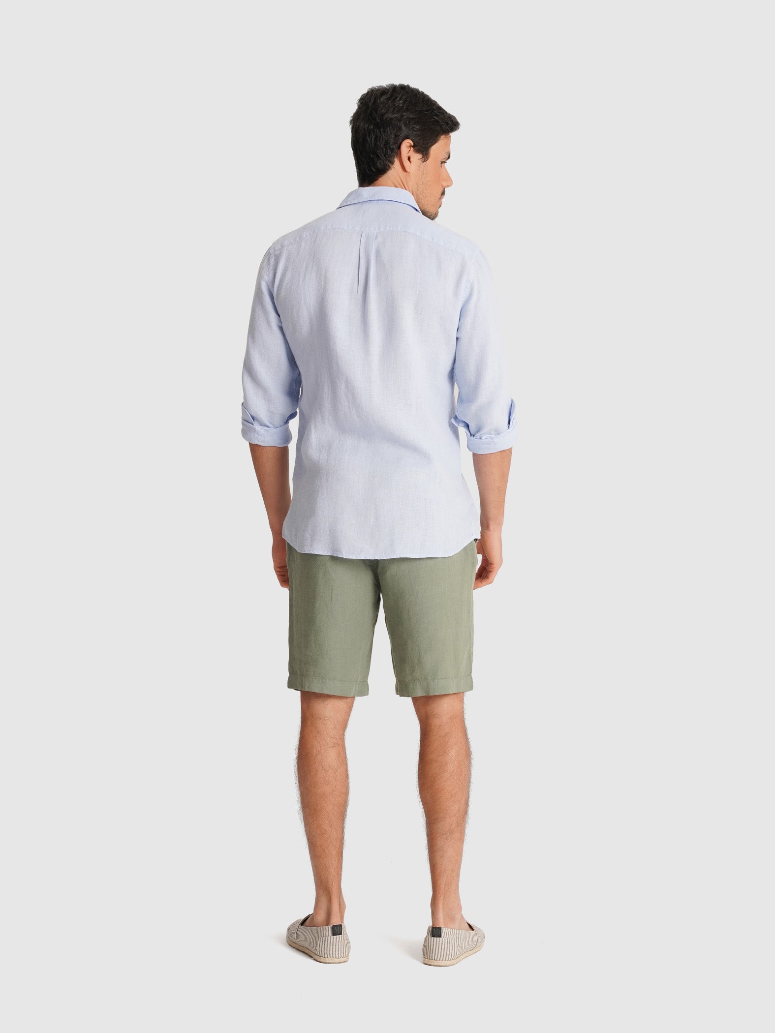 Camisa Linho Azul Manga Comprida Tailored Fit Sem Logo e Sem Bolso Lisa