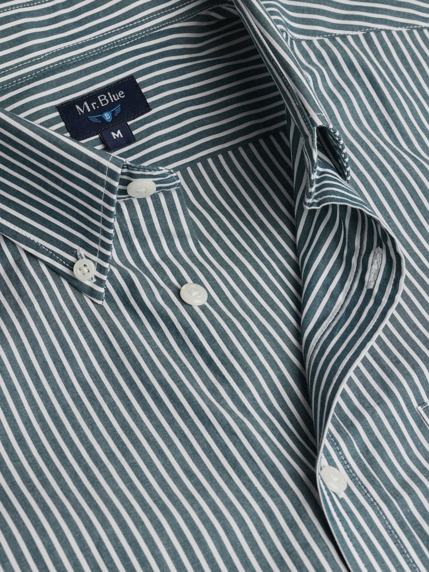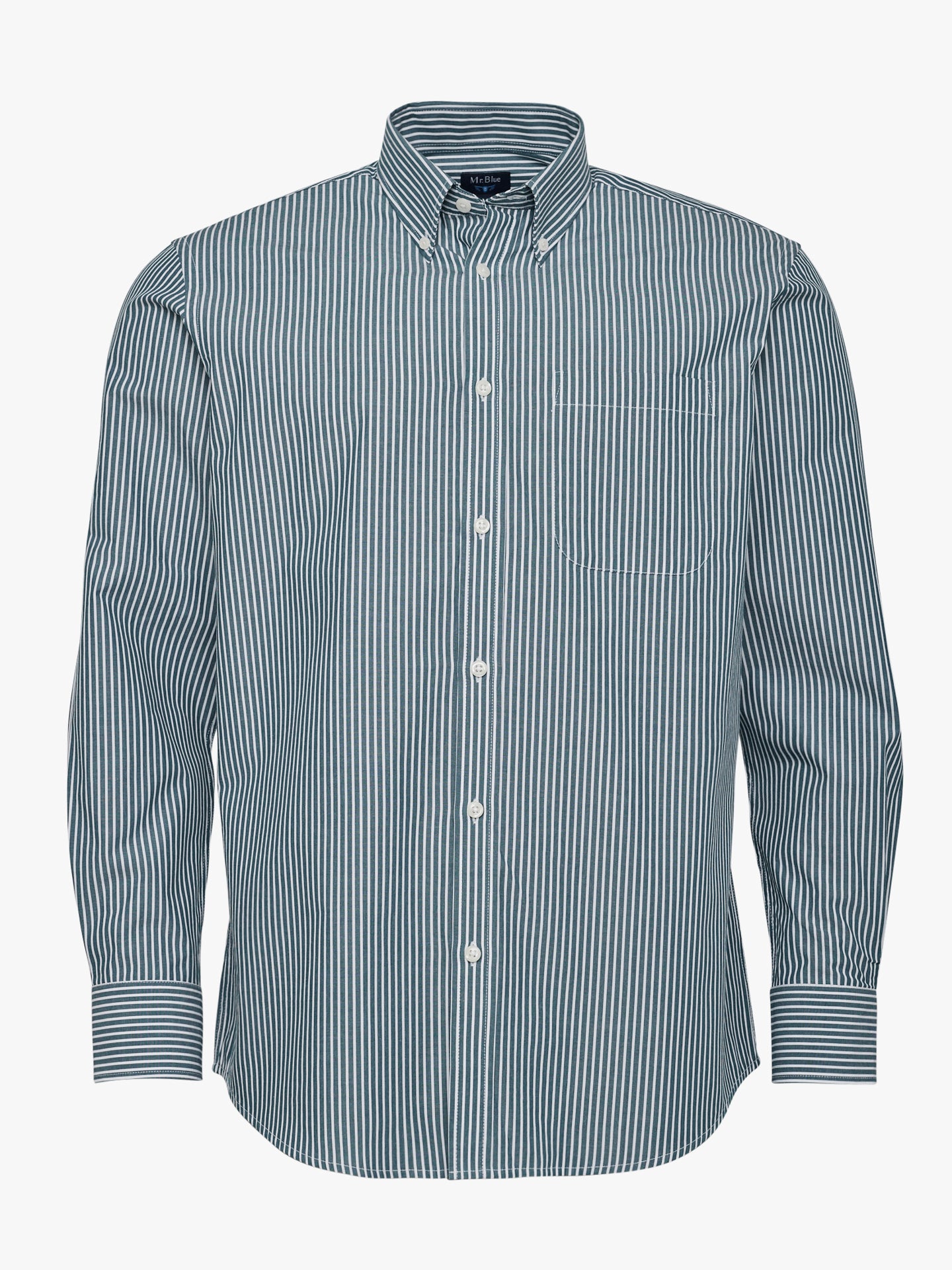 Camisa Regular Fit Popeline Verde Manga Comprida Com Bolso Com Riscas