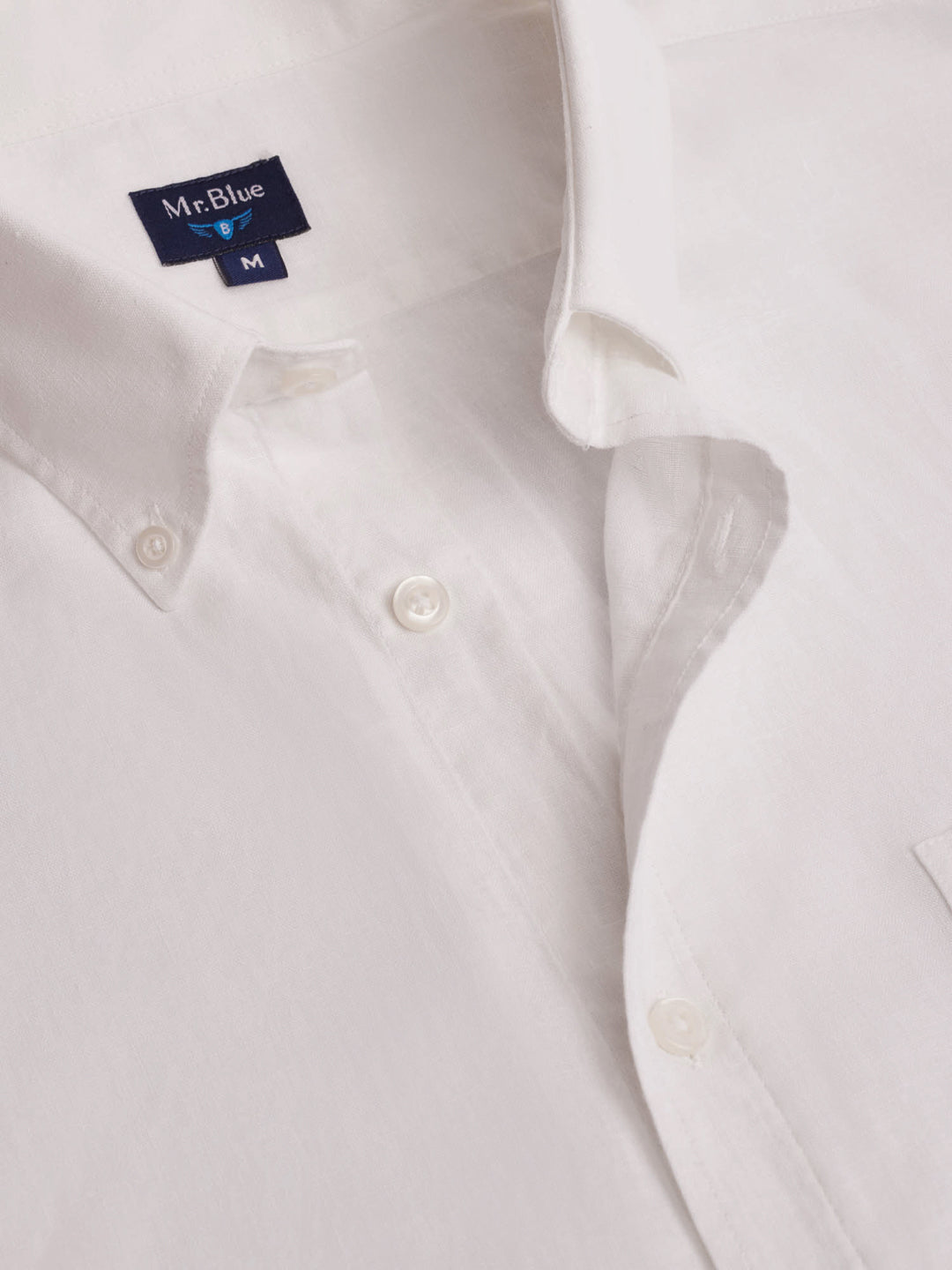 Camisa Regular Fit Linho Branca Manga Comprida Com bolso