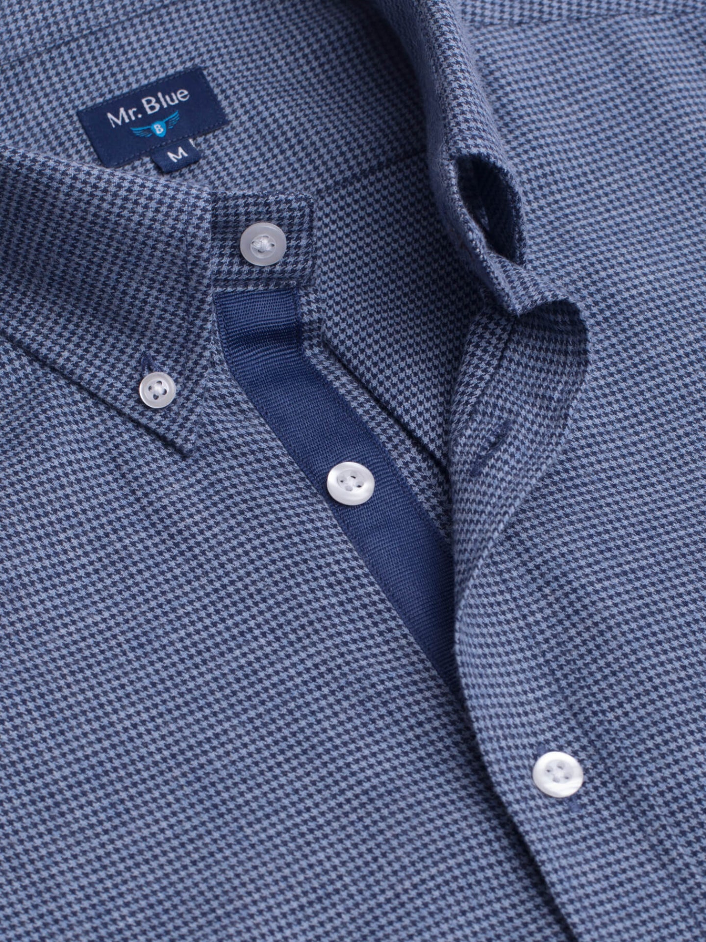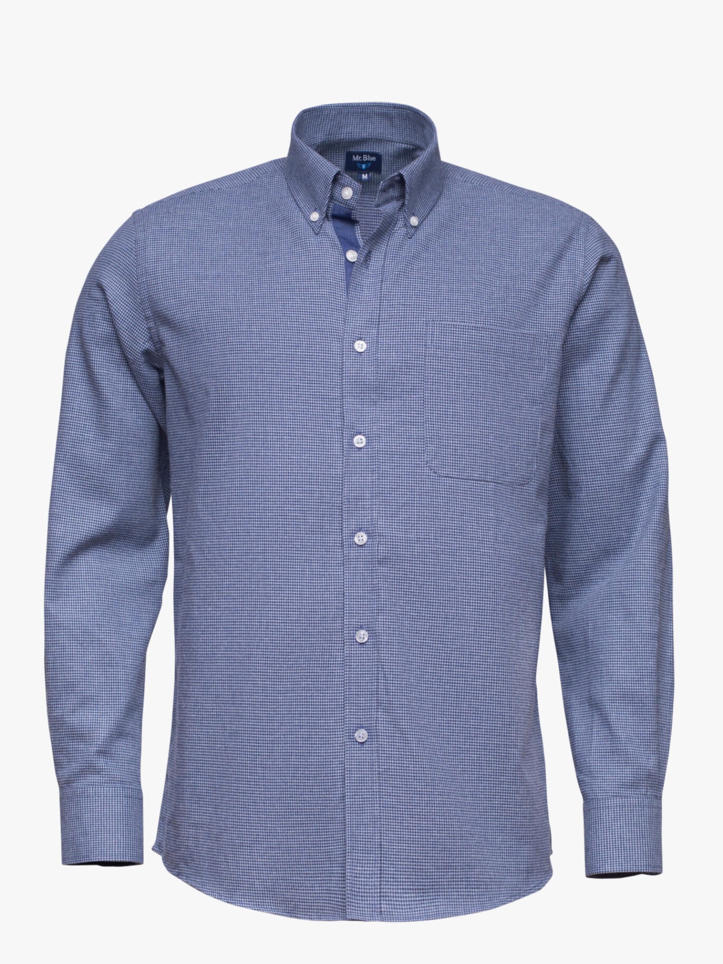 Camisa de Flanela para homem azul escuro com bolso e carcela em azul marinho. Confecionada em tecido 100% algodão, colarinho abotoado, manga comprida. Fabricada com fibras naturais, esta camisa poderá ser usada com umas calças de ganga ou chinos, para um