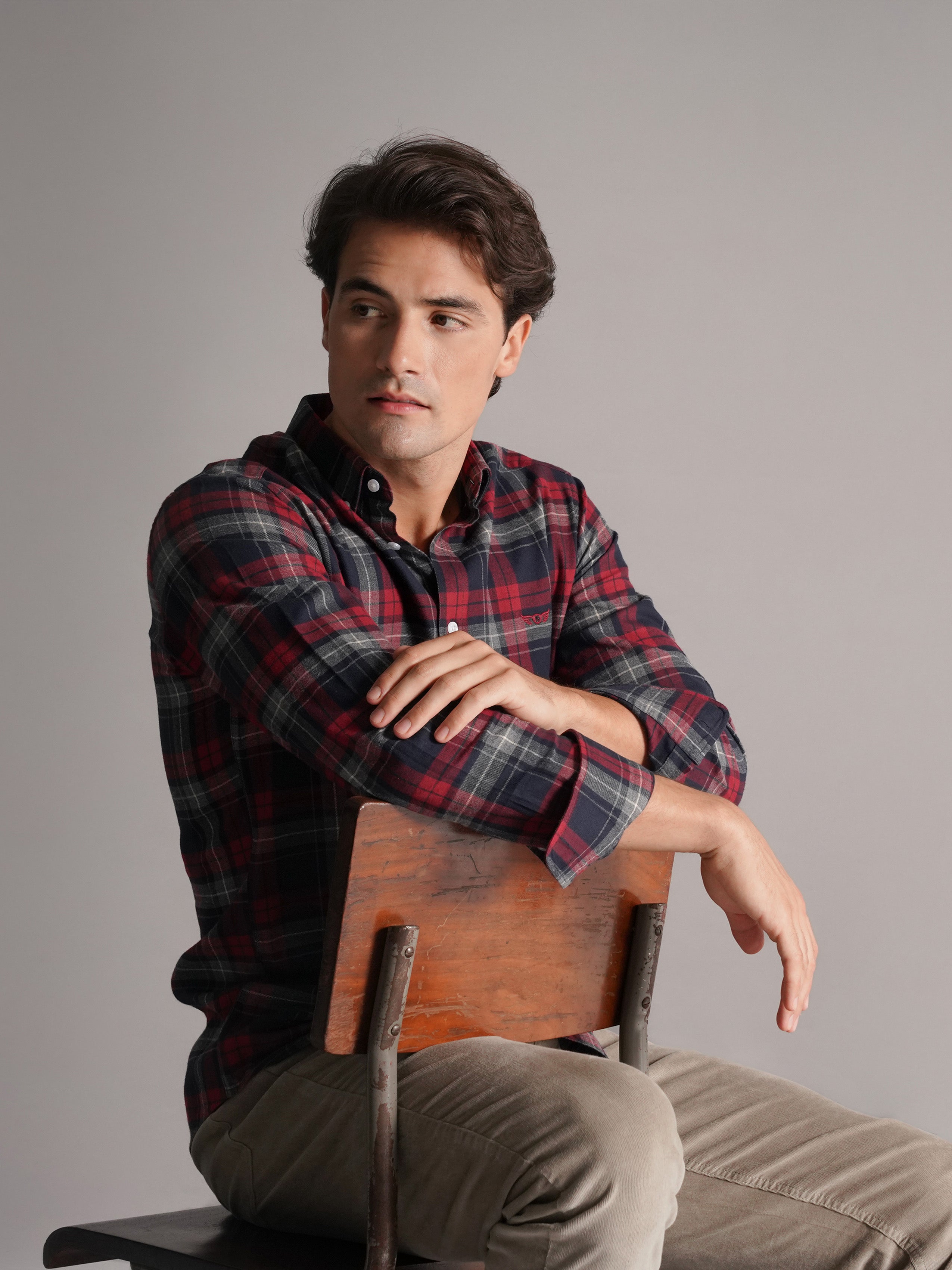 Camisa Algodão Vermelha Manga Comprida Regular Fit