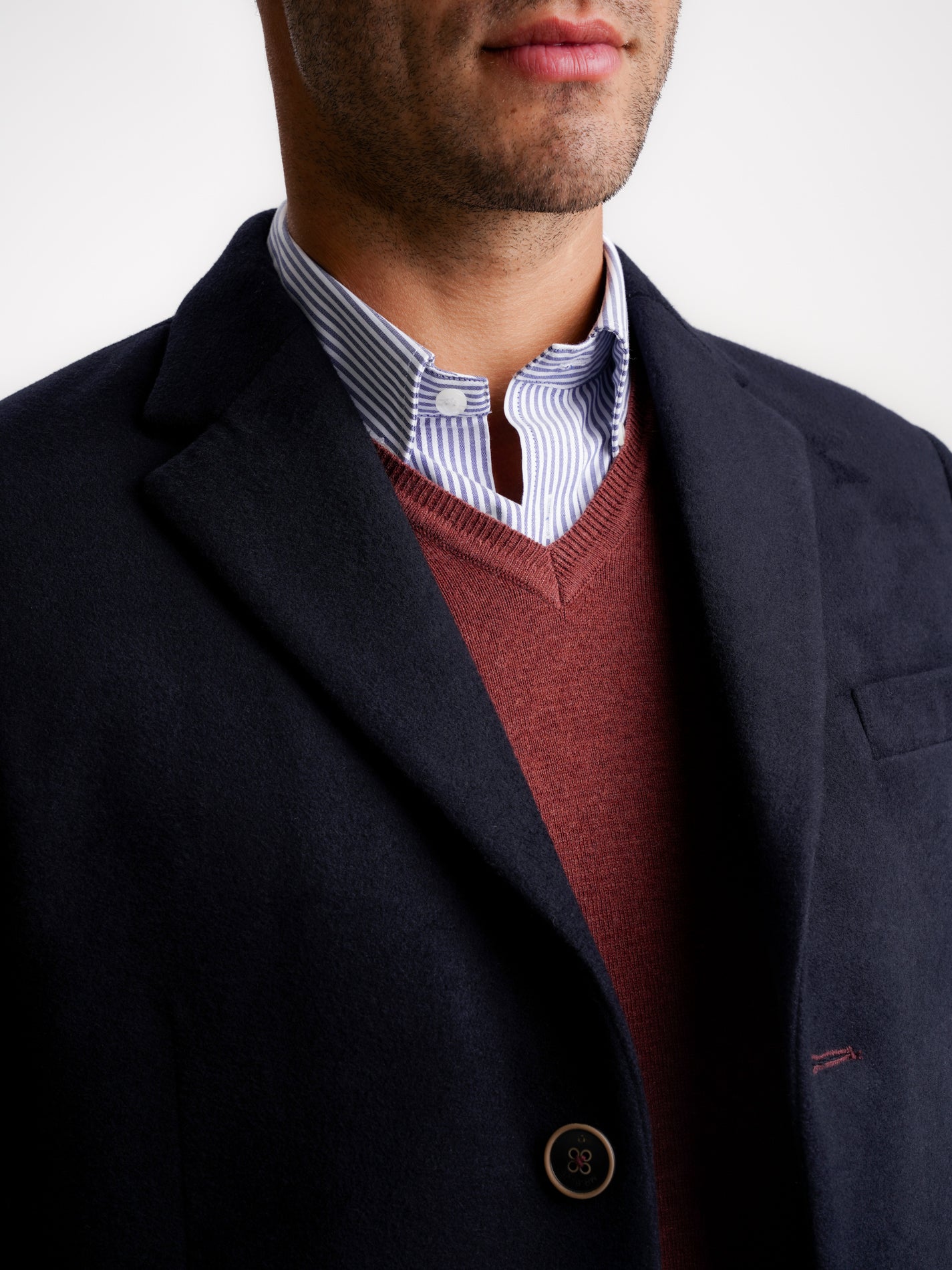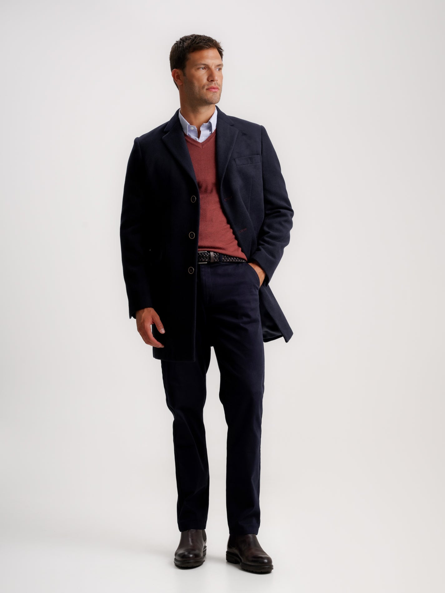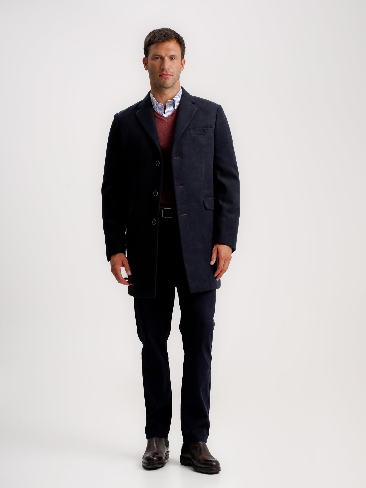 SOBRETUDO LÃ LISO COMPRIDO COM DETALHE NA GOLA