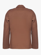 Sobretudo Homem Curto Camel. Corte reto, gola com lapela entalhada. Fecho com abotoadura dupla e manga comprida com acabamento em punho com tira abotoada.