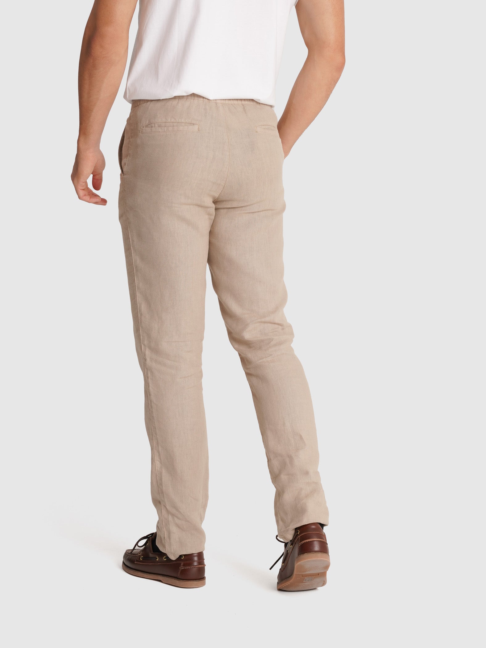 Calças Linho Beges Regular Fit Lisas