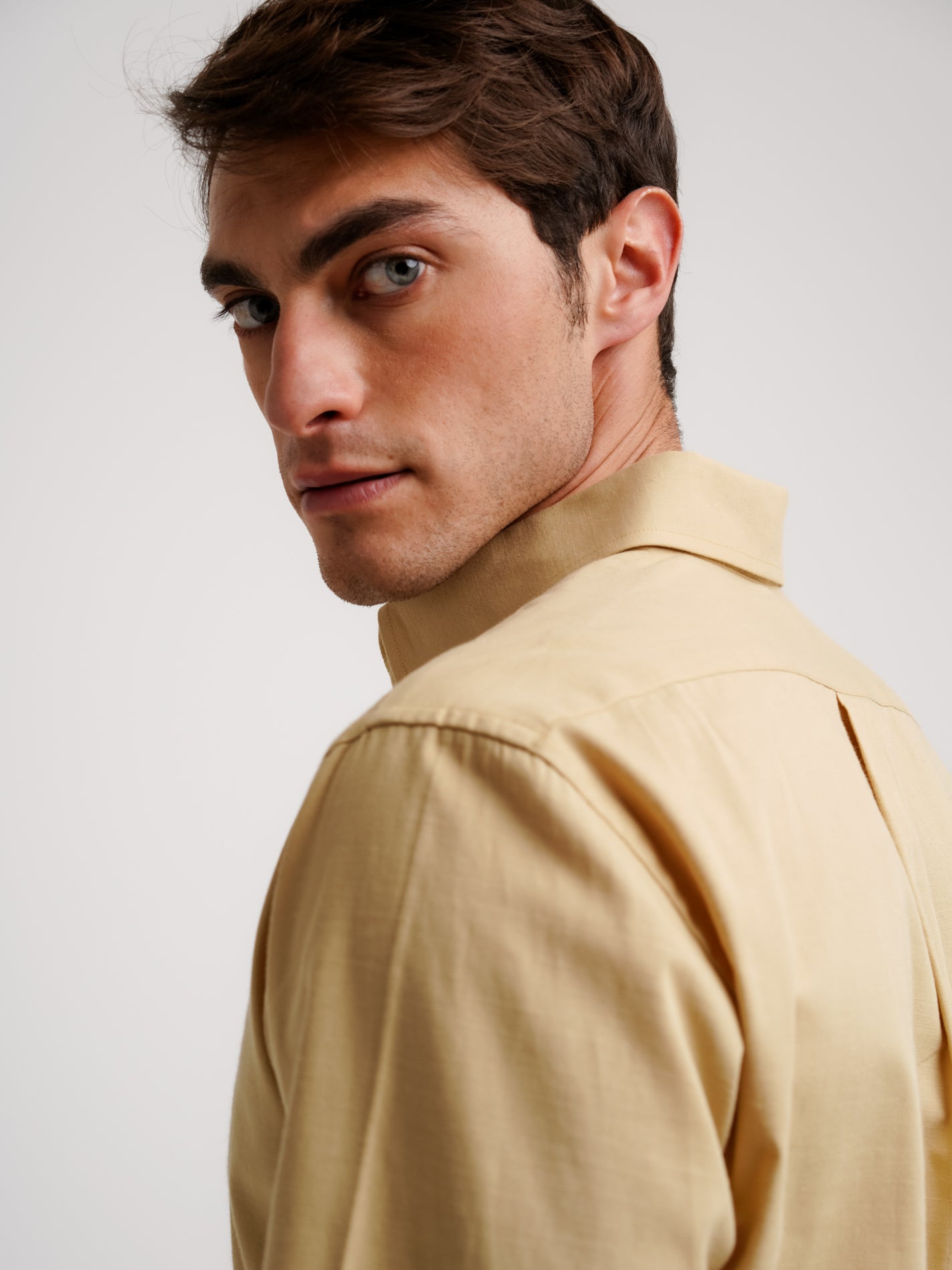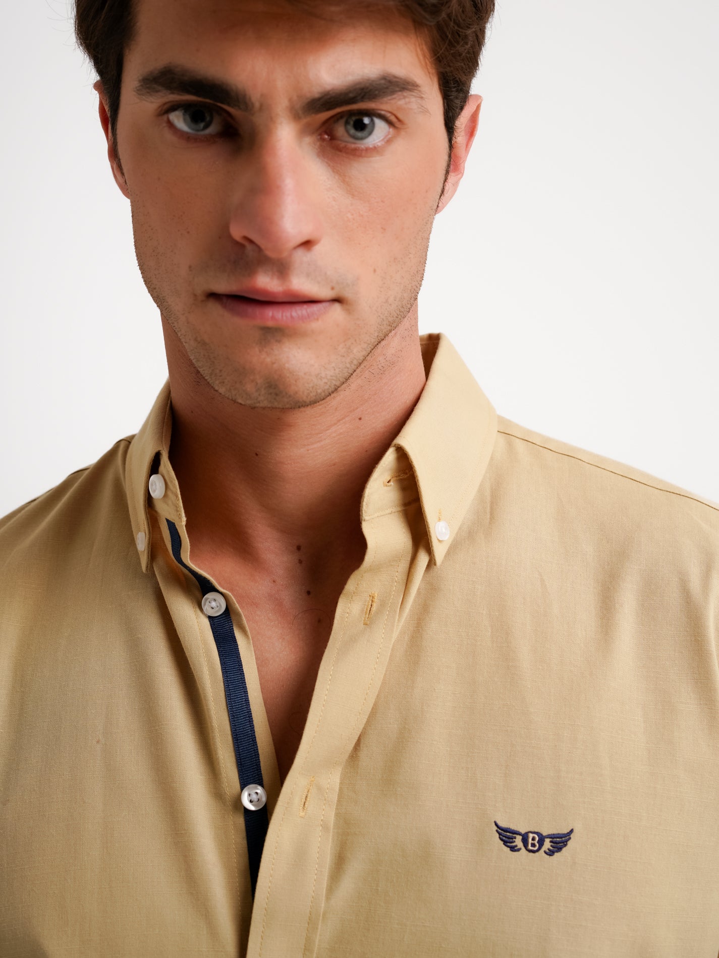 Camisa Regular Fit Oxford Amarela Algodão Lisa Com logo