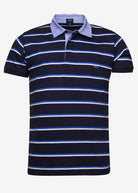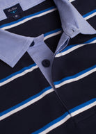Pólo Rugby manga curta riscas finas com detalhe carcela e colarinho