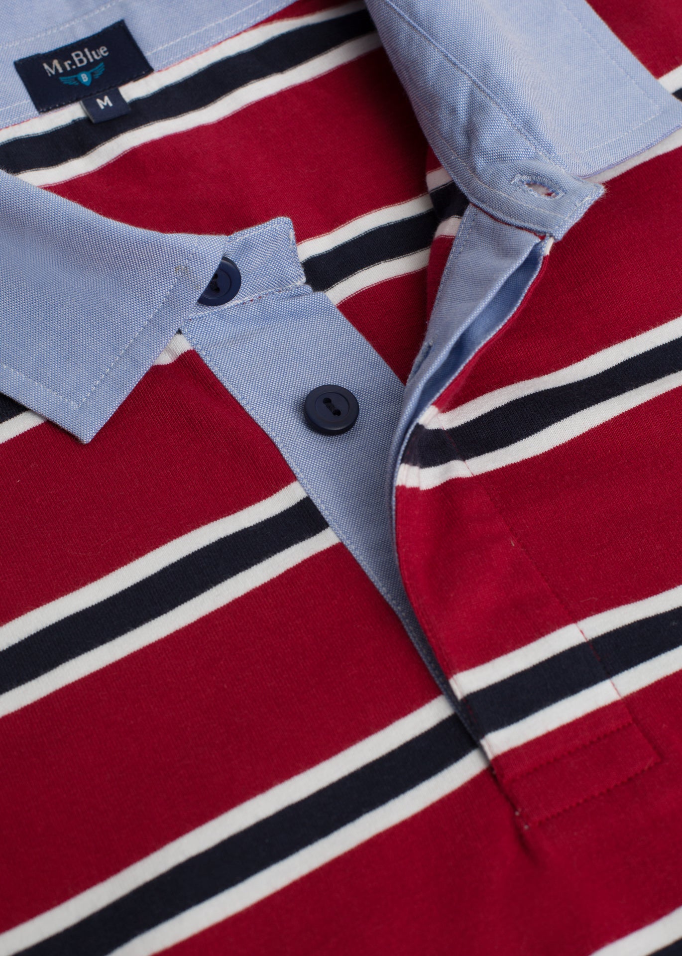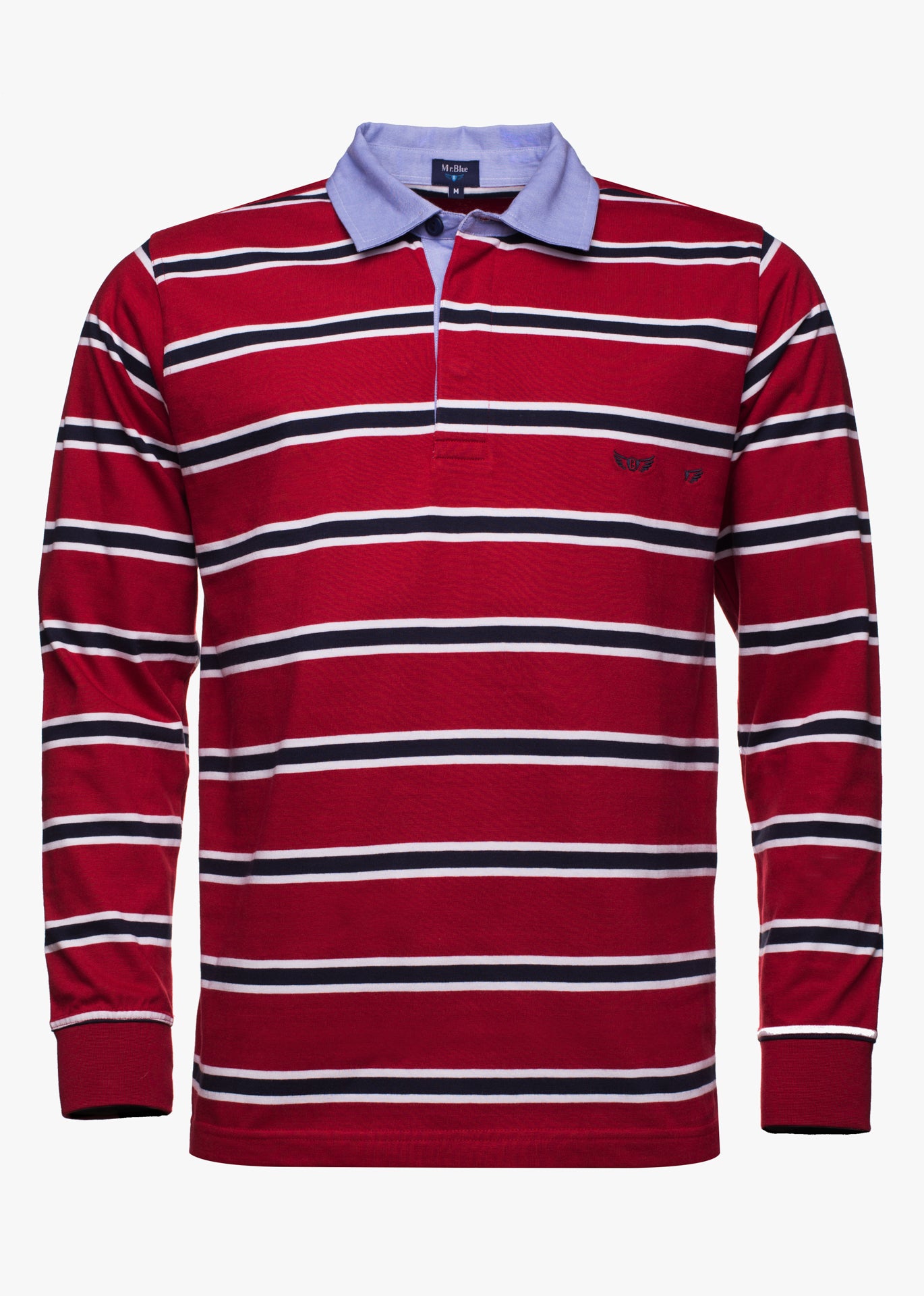Pólo Rugby manga comprida riscas largas com detalhe carcela e colarinho