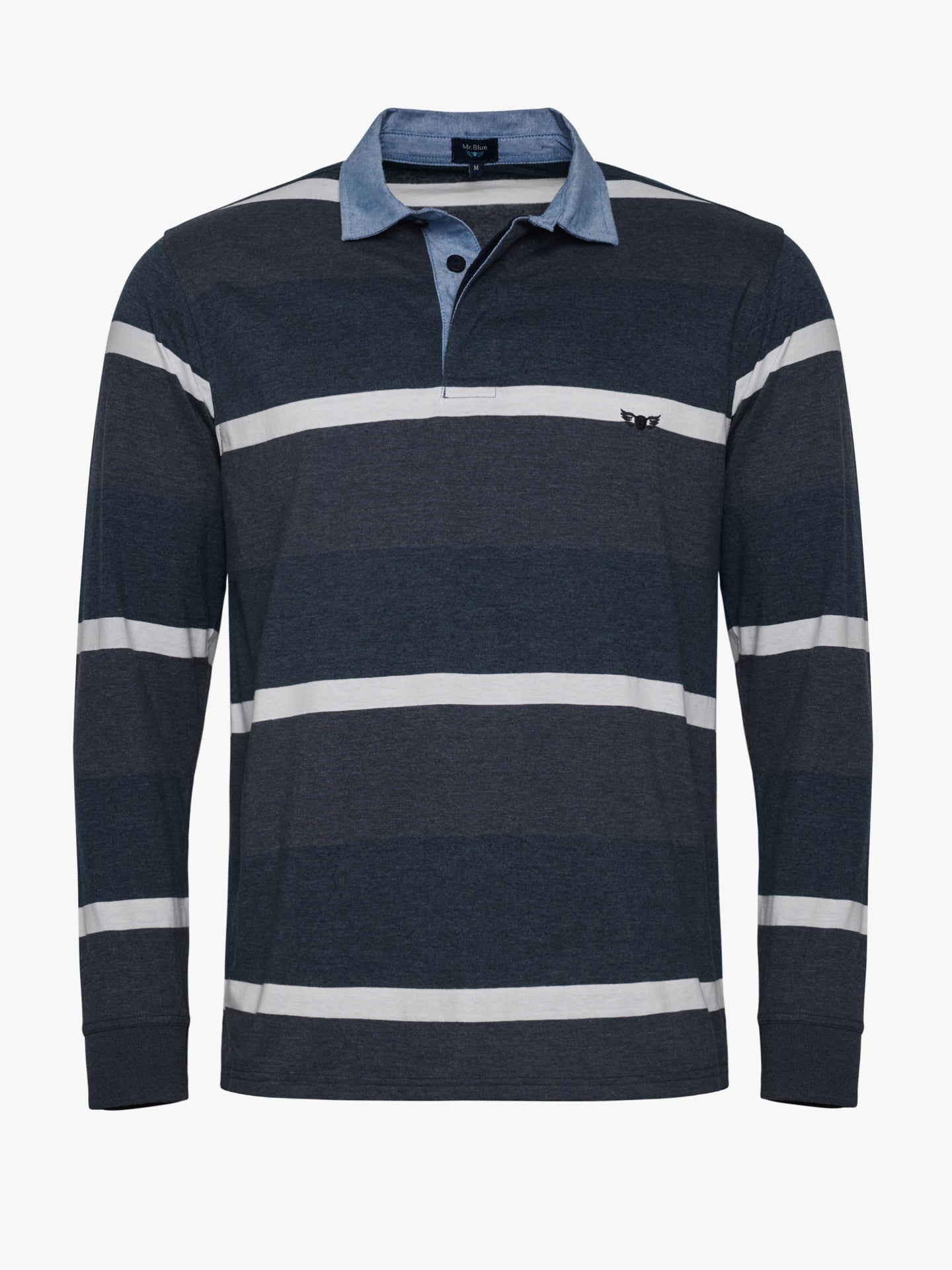 Rugbie Regular Fit Azul Algodão Riscas Com logo